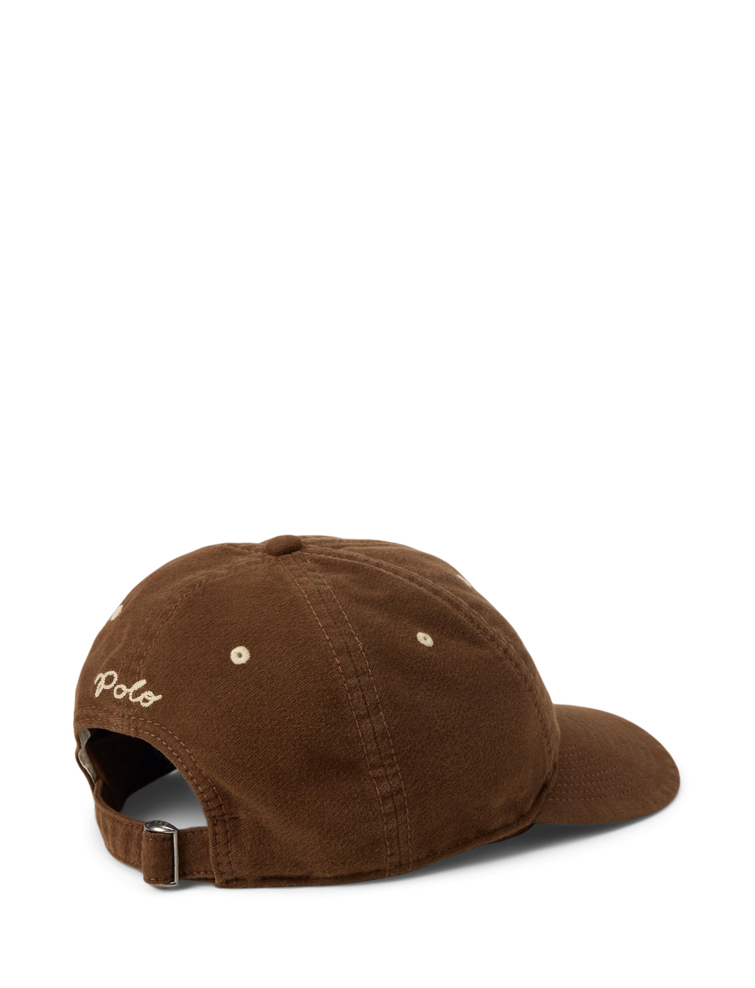 Crafted with brushed cotton chamois, this ball cap features a collegiate-inspired felt “P” patch at the front and chain-stitched “Ralph” embroidery at the back.