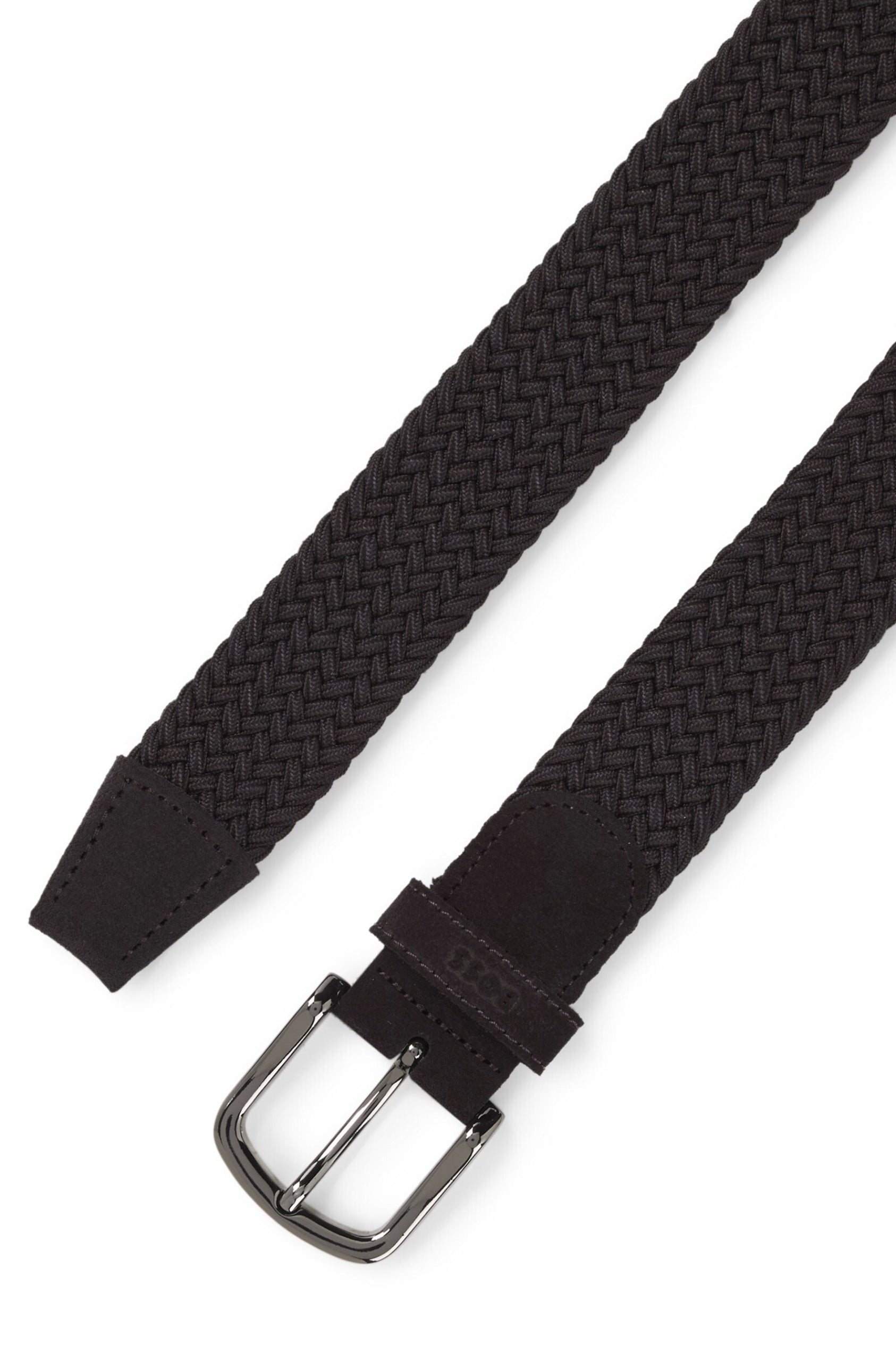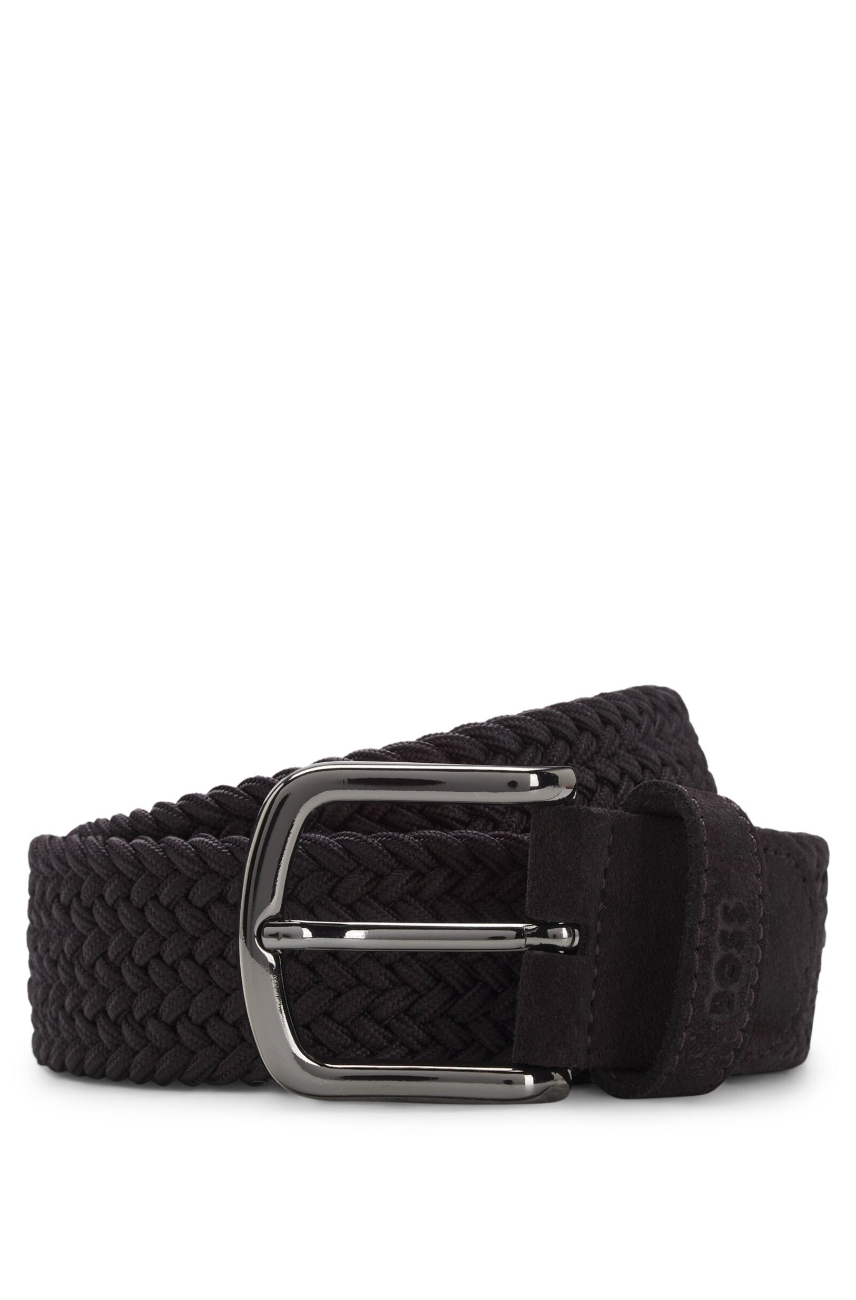 With its contrast of textures, this 3.5cm woven BOSS Menswear belt adds a distinctive touch to your look. Soft suede trims and logo-detail keeper. For the best fit, we advise ordering a belt one size larger than your waist size.