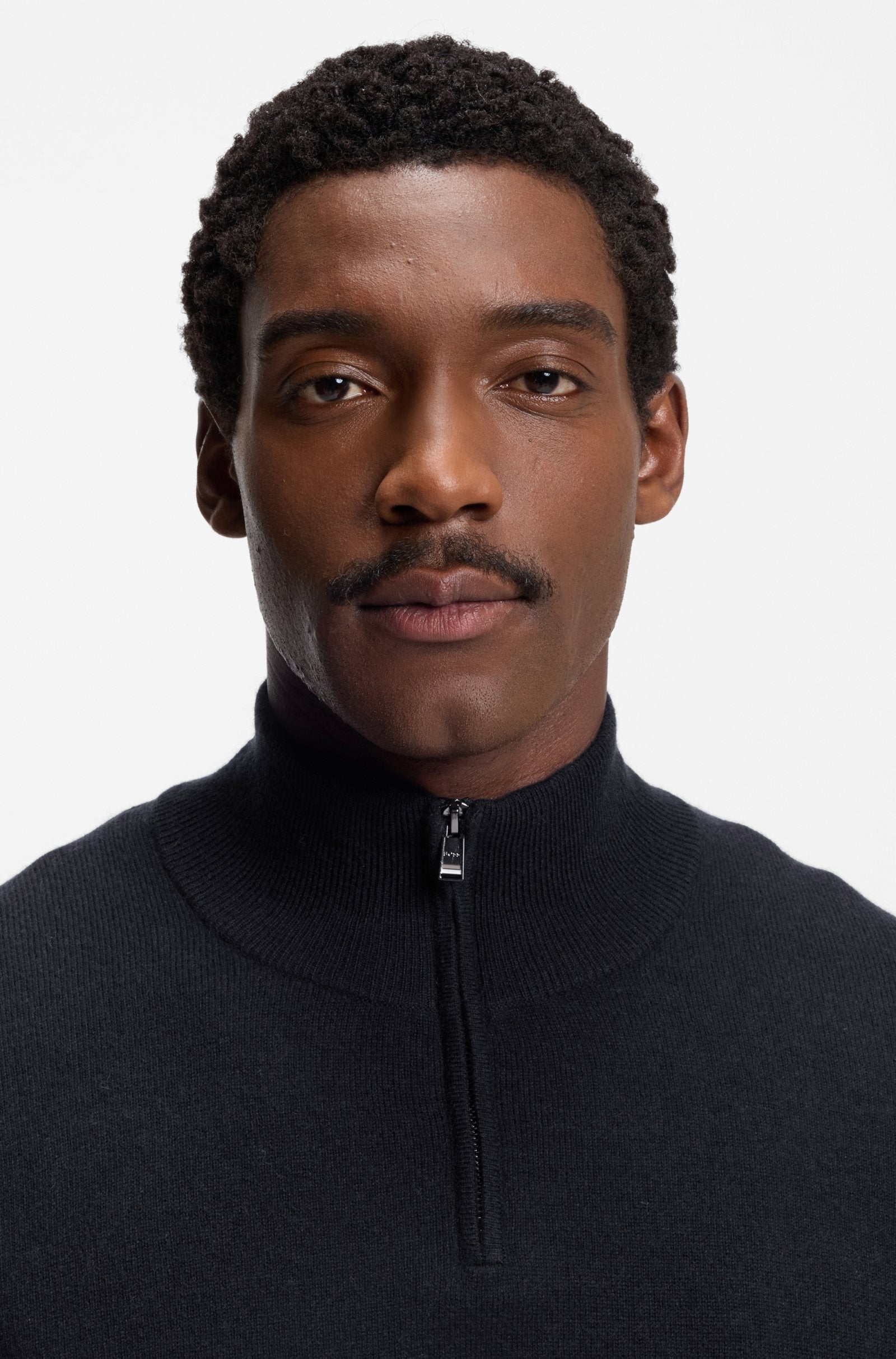 Layer up in luxury with the wool-cashmere blend of this regular-fit BOSS Menswear sweater. Zip collar with contrast inner.
