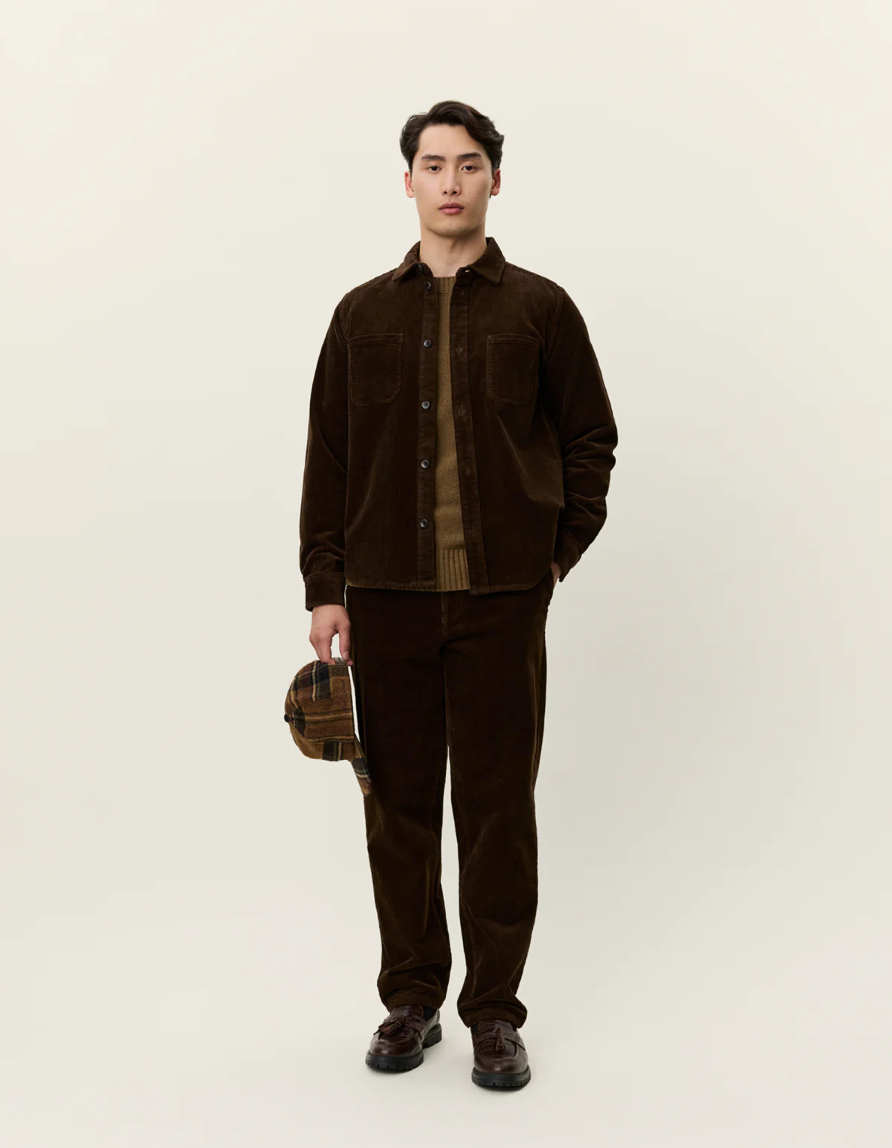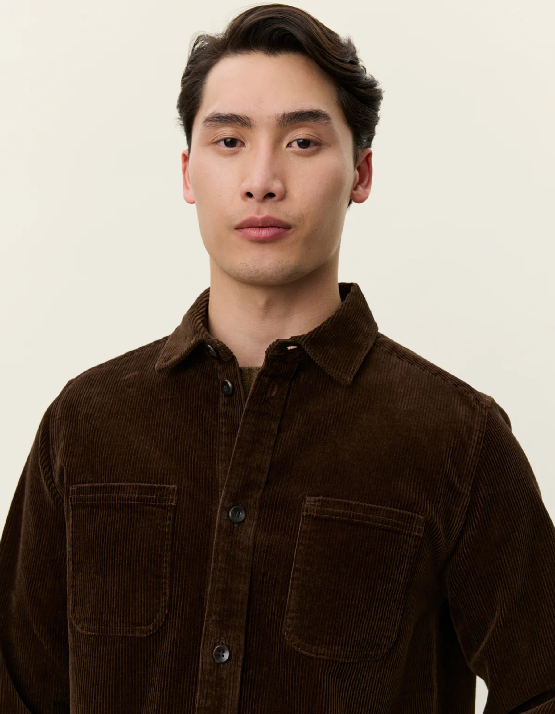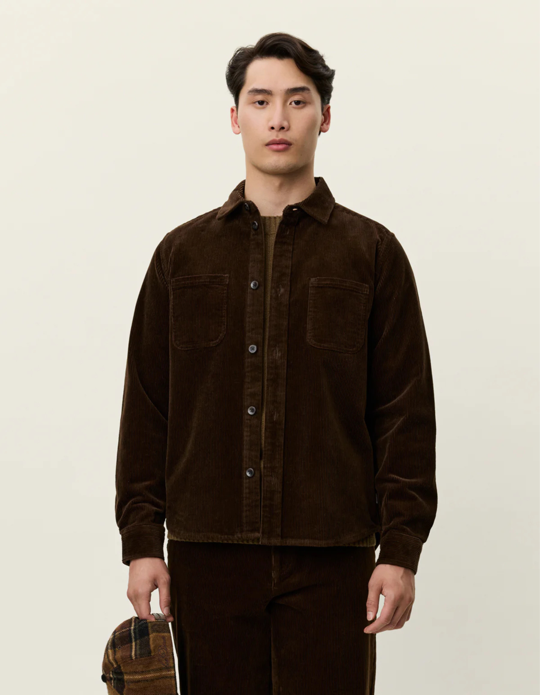 A heavyweight 8-wale cotton corduroy overshirt with patch chest pockets and bone-look buttons. The Kody features a classic collar, front placket and a rounded hem for versatile layering.
