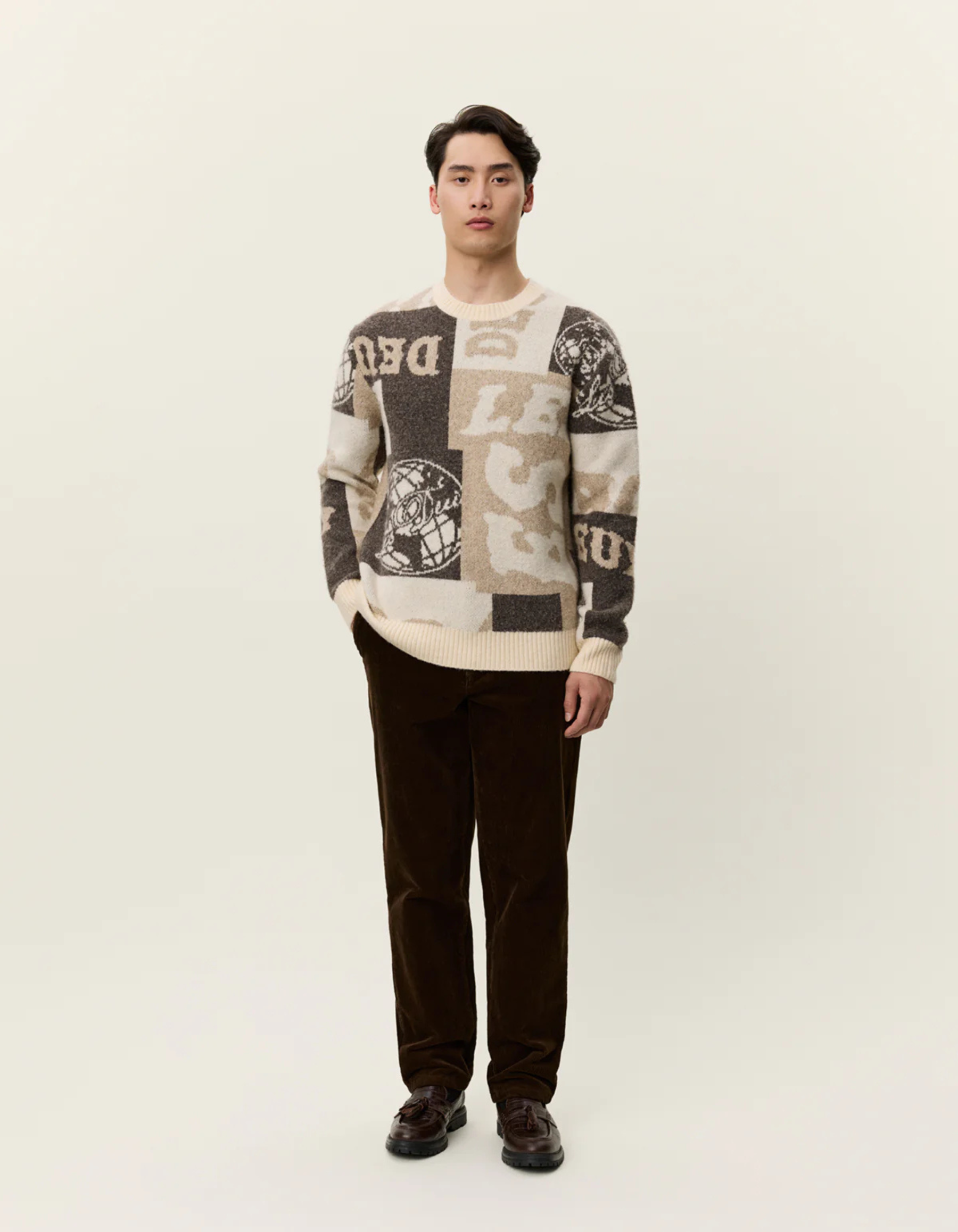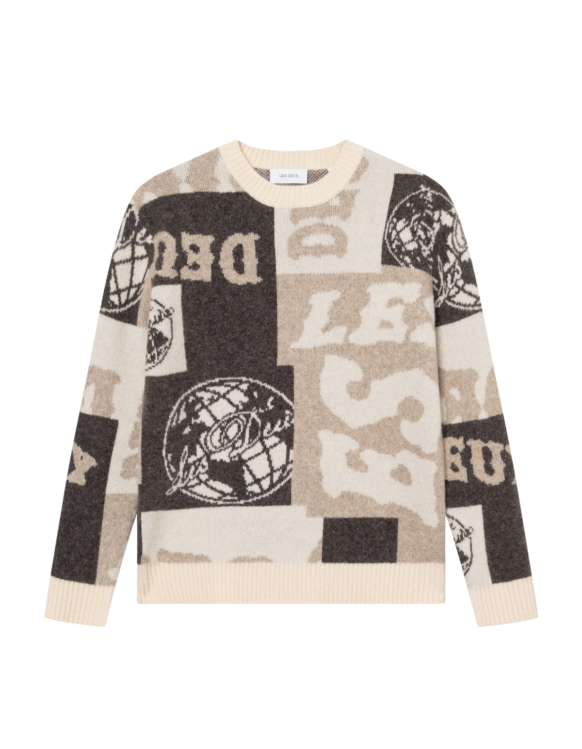 Soft feel, standout detail. The Globe Knit comes in a regular fit with a patchwork jacquard of logos and graphic motifs, cut from a warm, mid-gauge wool blend for comfort and texture.