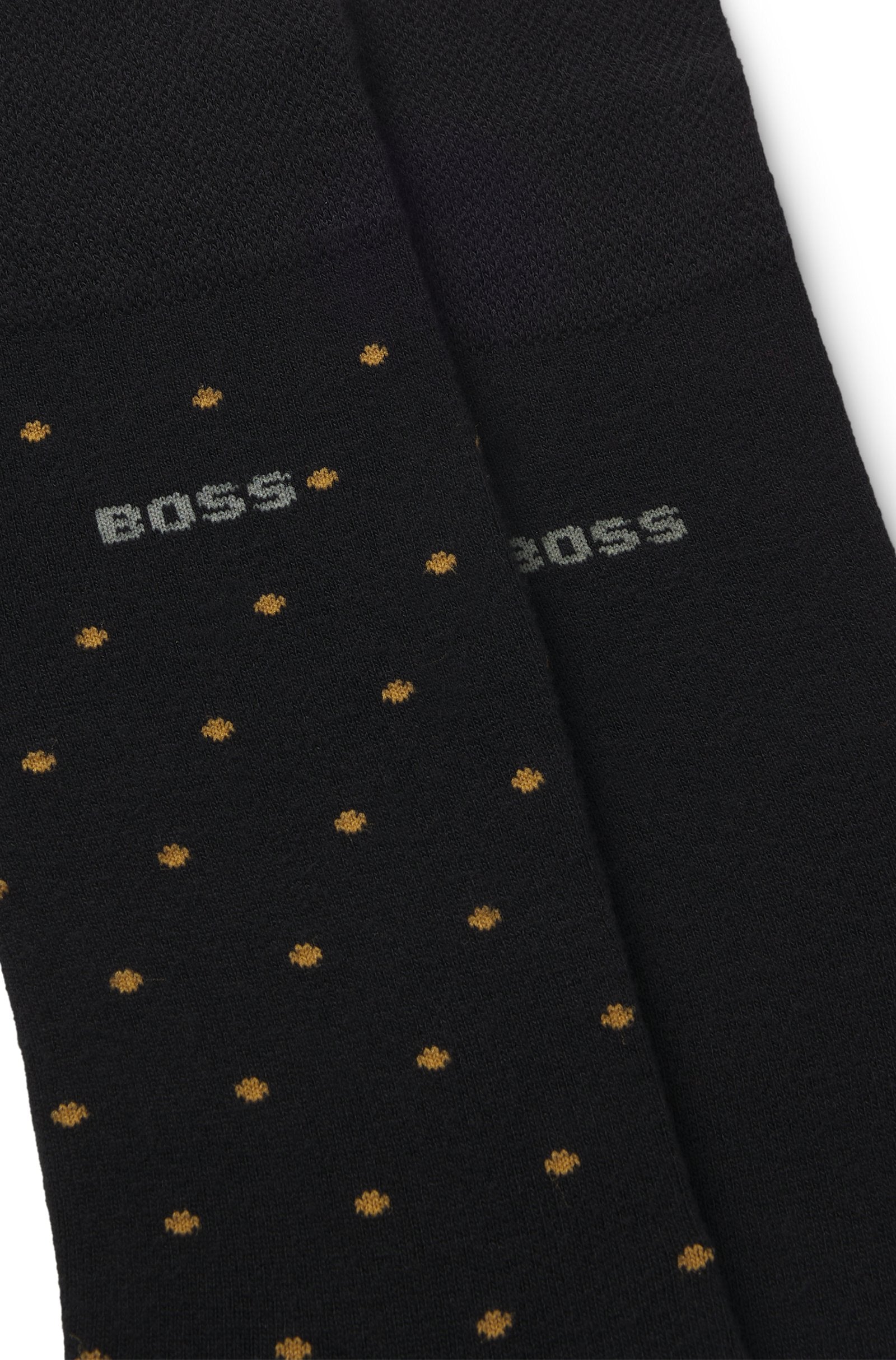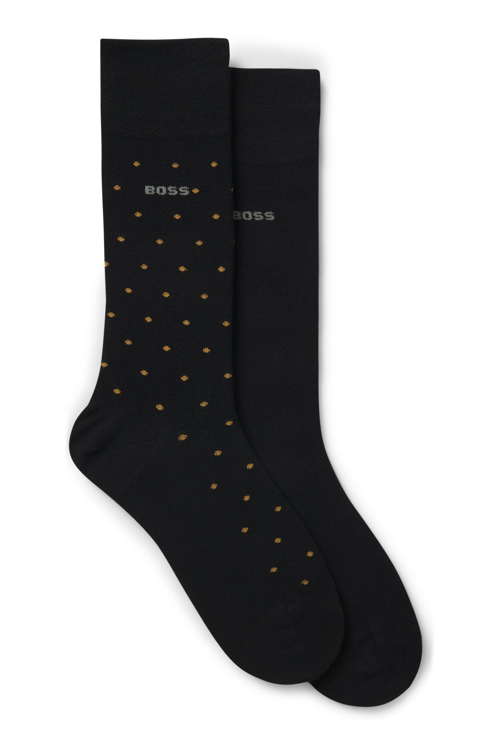In plain and dot-patterned designs, these two pairs of BOSS Menswear socks are made with bamboo for natural comfort and freshness. Regular length.
