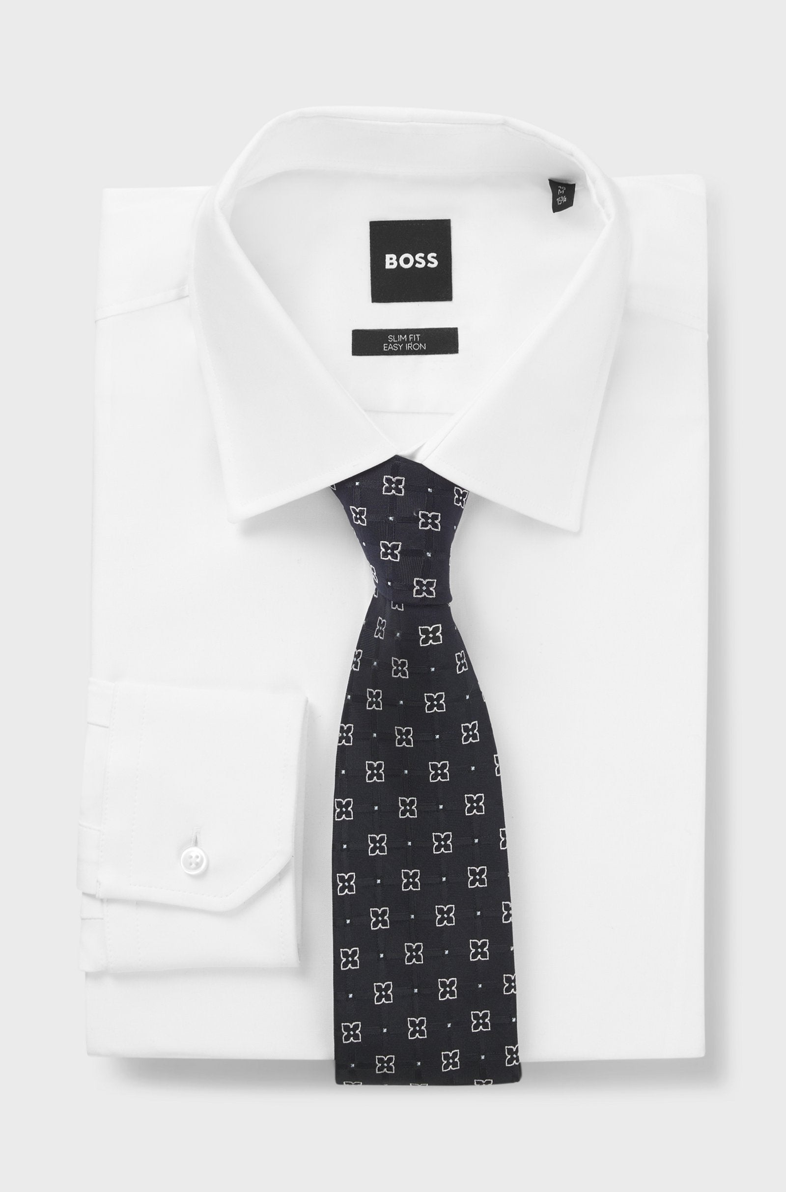 Crafted in a rich silk blend, this BOSS Menswear tie will add a fresh touch to your formal accessories. Featuring a dynamic all-over pattern.