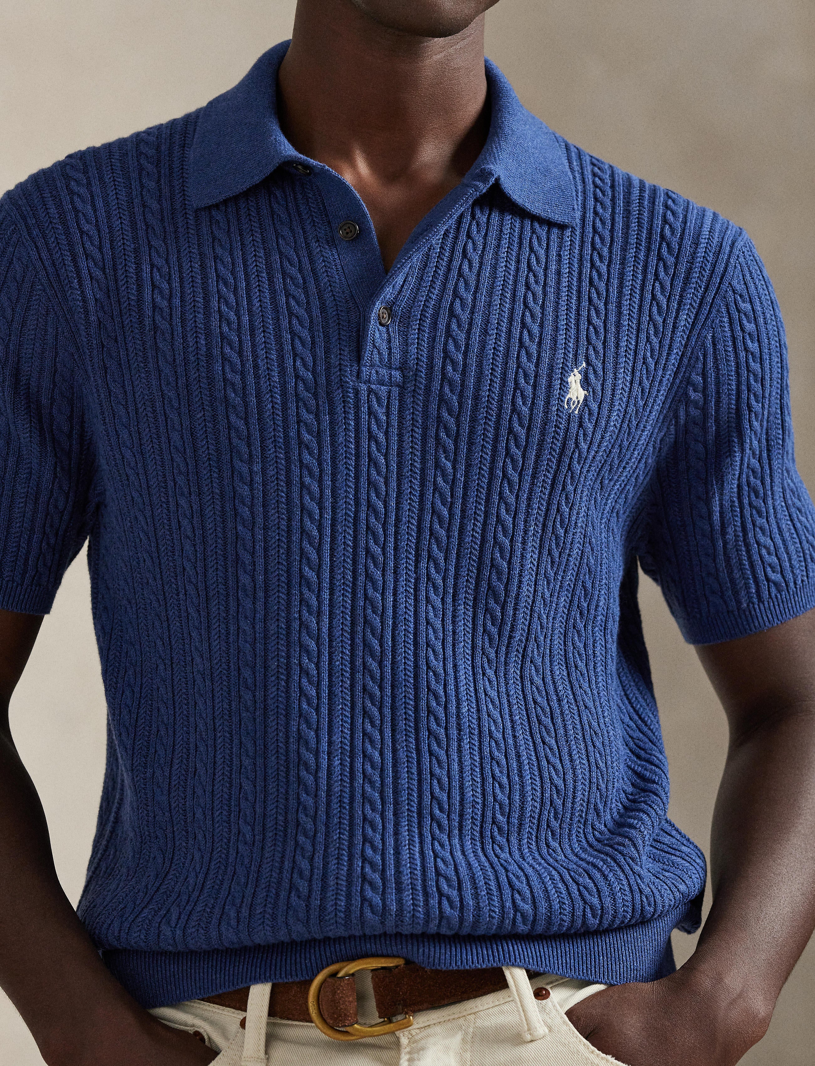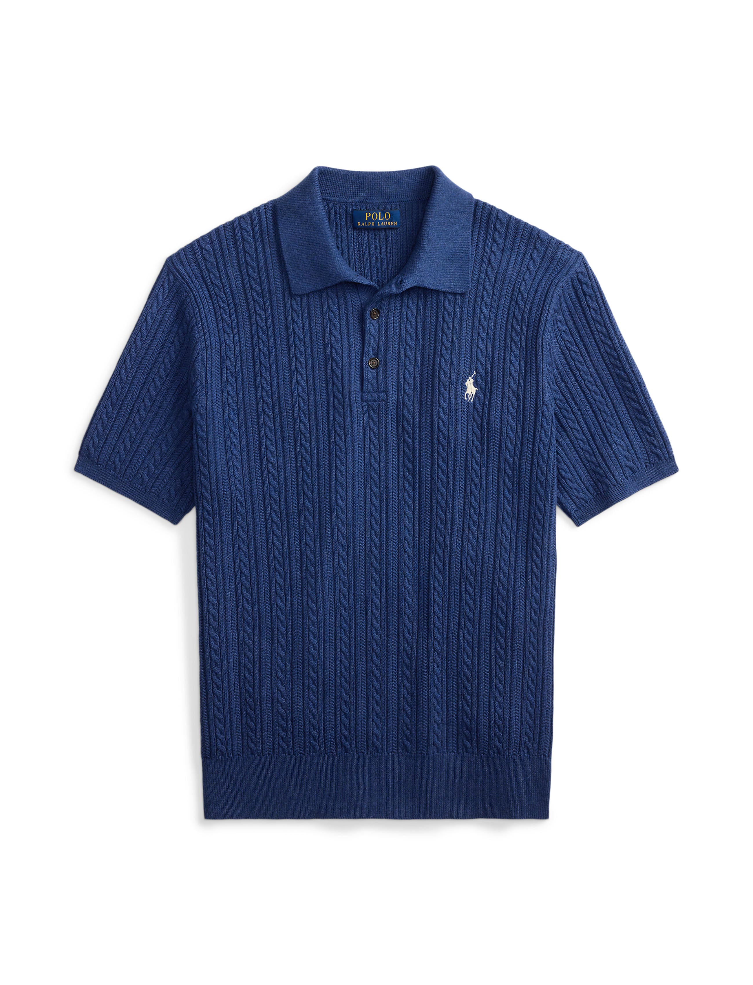 This cable-knit sweater combines a silhouette inspired by Ralph Lauren’s timeless Polo shirt with featherweight cotton yarn that is combed with fine brushes, resulting in a softer, more durable garment.