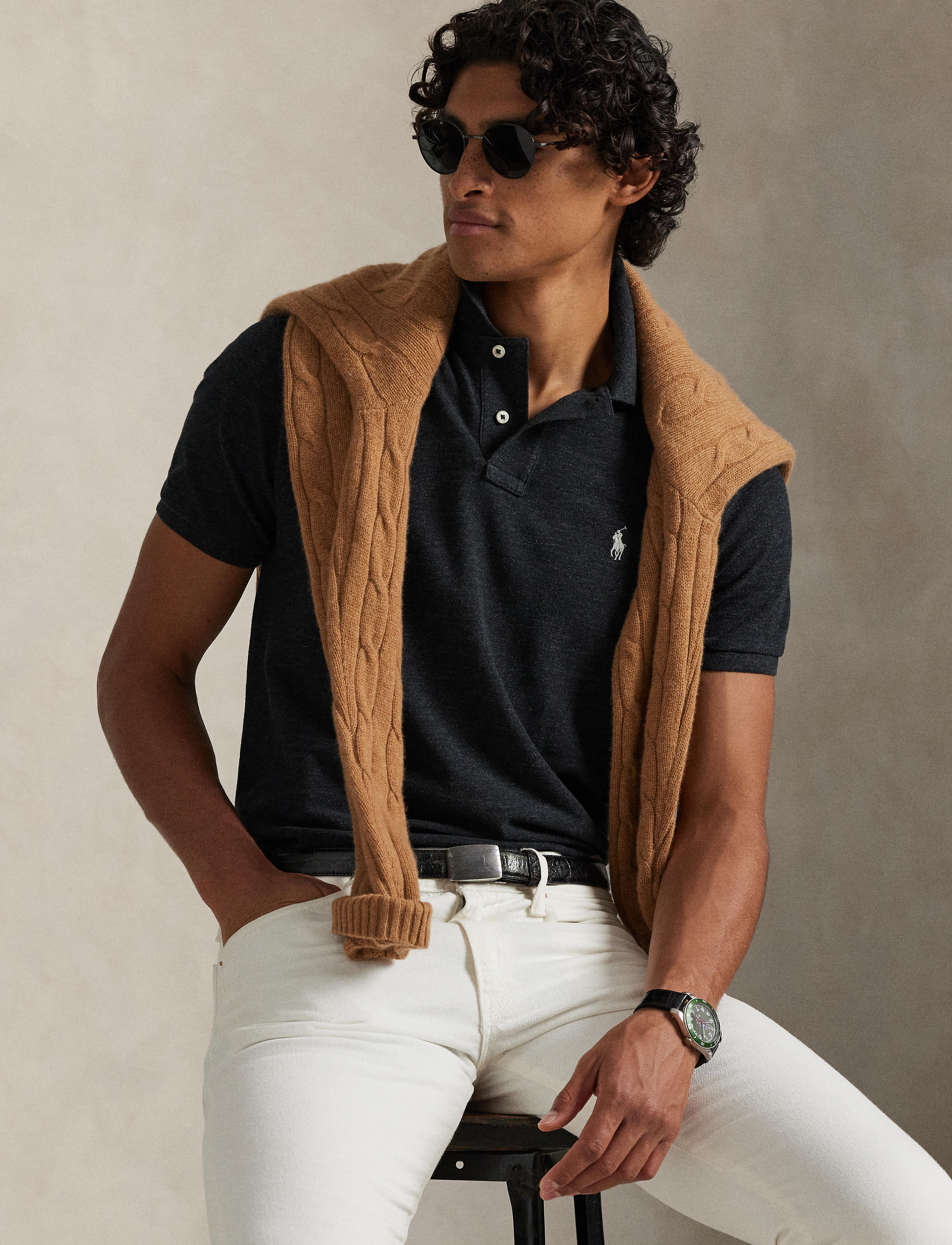 An American style standard since 1972, the Polo shirt has been imitated but never matched. Over the decades, Ralph Lauren has reimagined his signature style in a wide array of colors and fits, yet all retain the quality and attention to detail of the iconic original. This trim version is made from our highly breathable cotton mesh, which offers a textured look and a soft feel.