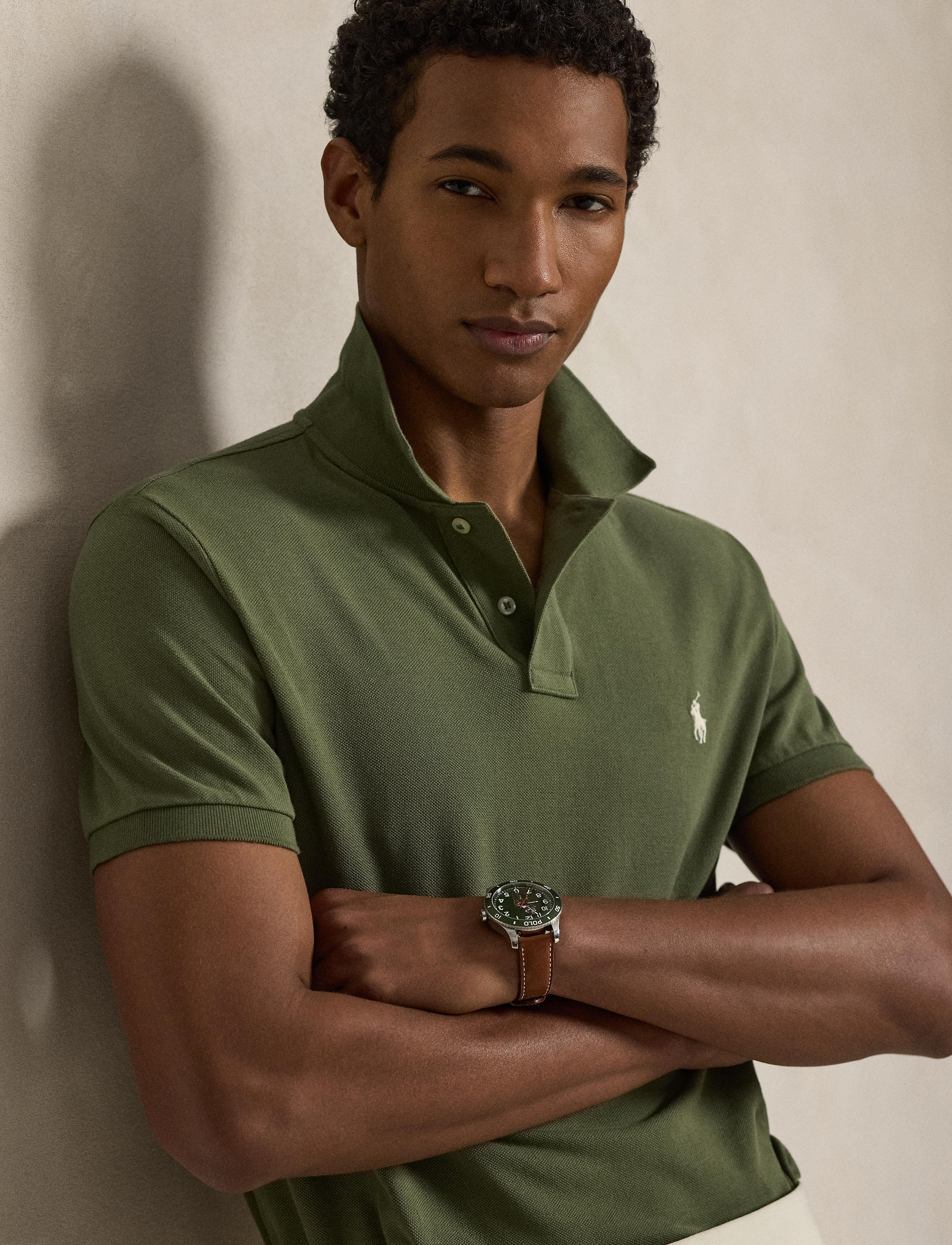 An American style standard since 1972, the Polo shirt has been imitated but never matched. Over the decades, Ralph Lauren has reimagined his signature style in a wide array of colors and fits, yet all retain the quality and attention to detail of the iconic original. This trim version is made with our highly breathable cotton mesh, which offers a textured look and a soft feel.