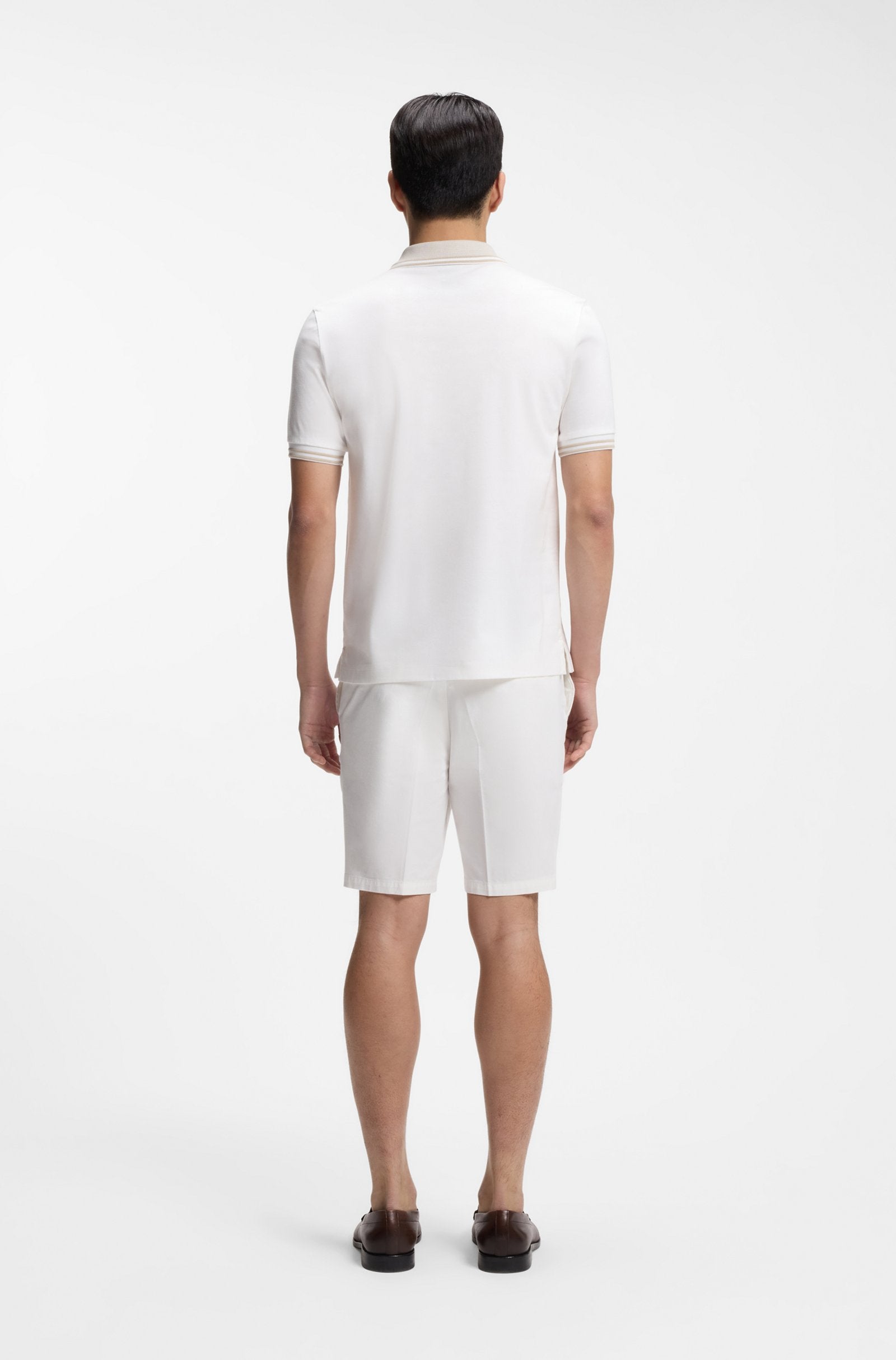 With sporty striped trims, this slim-fit BOSS Menswear polo shirt is a refined way to do casuals. Cotton with a softening mercerized finish.