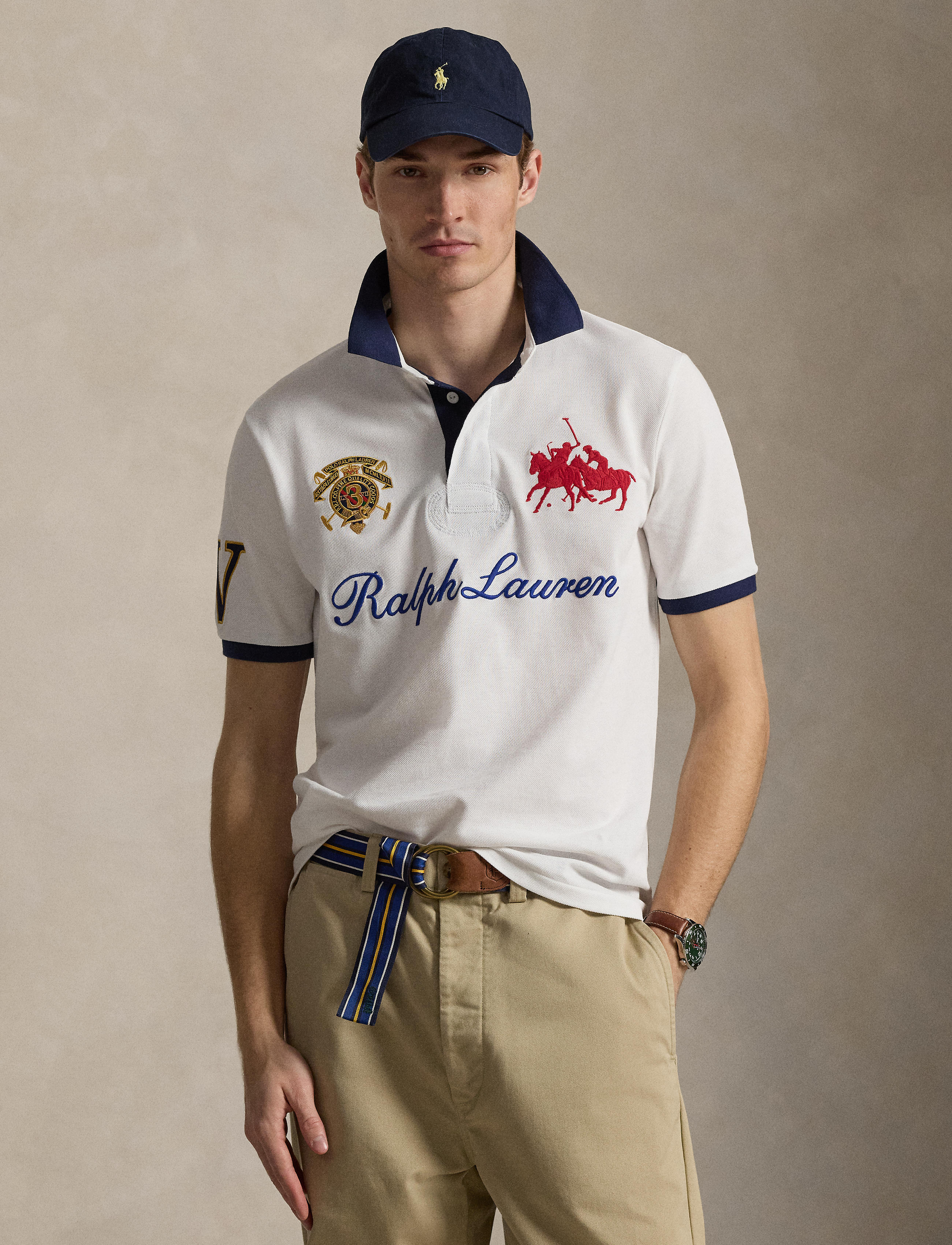 An American style standard since 1972, the Polo shirt has been imitated but never matched. Over the decades, Ralph Lauren has reimagined his signature style in a wide array of colors and fits, yet all retain the quality and attention to detail of the iconic original. Part of the season’s collection celebrating the rich and diverse heritage of the sport of Polo, this cotton mesh version is embroidered with signature graphics, including our iconic Double-Pony logo.