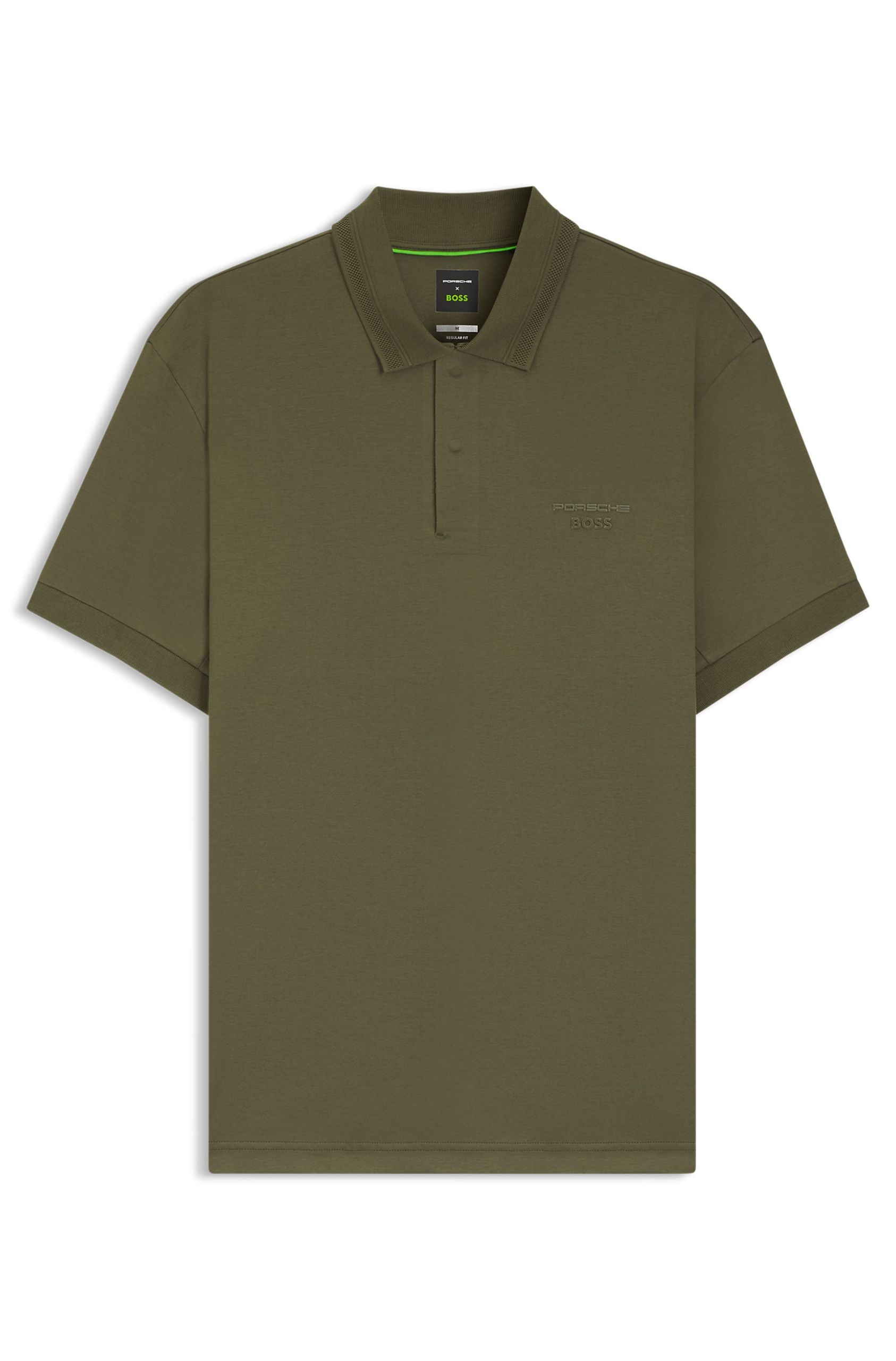 In soft cotton with comfortable bonded seams, this men's Porsche x BOSS polo shirt features decorative reflective branding. Straight fit. Armholes cut for free movement. HeiQ Mint is a plant-based deodoriser providing long-lasting odour control to ensure fabrics stay fresh all day, using botanical technology that regenerates at every wash. Style meets function in the Porsche x BOSS collaboration: sporty designs with a clean, modern aesthetic.