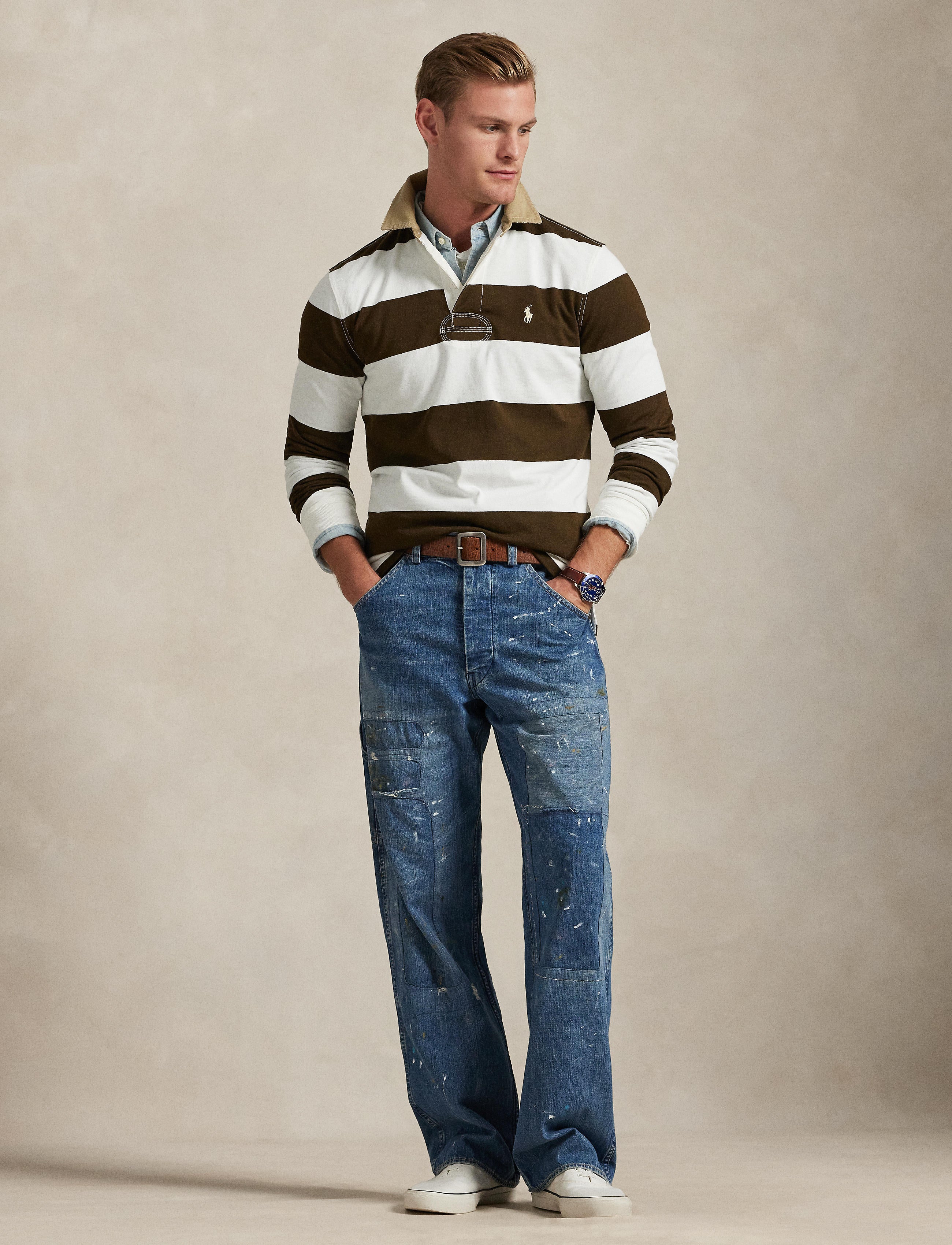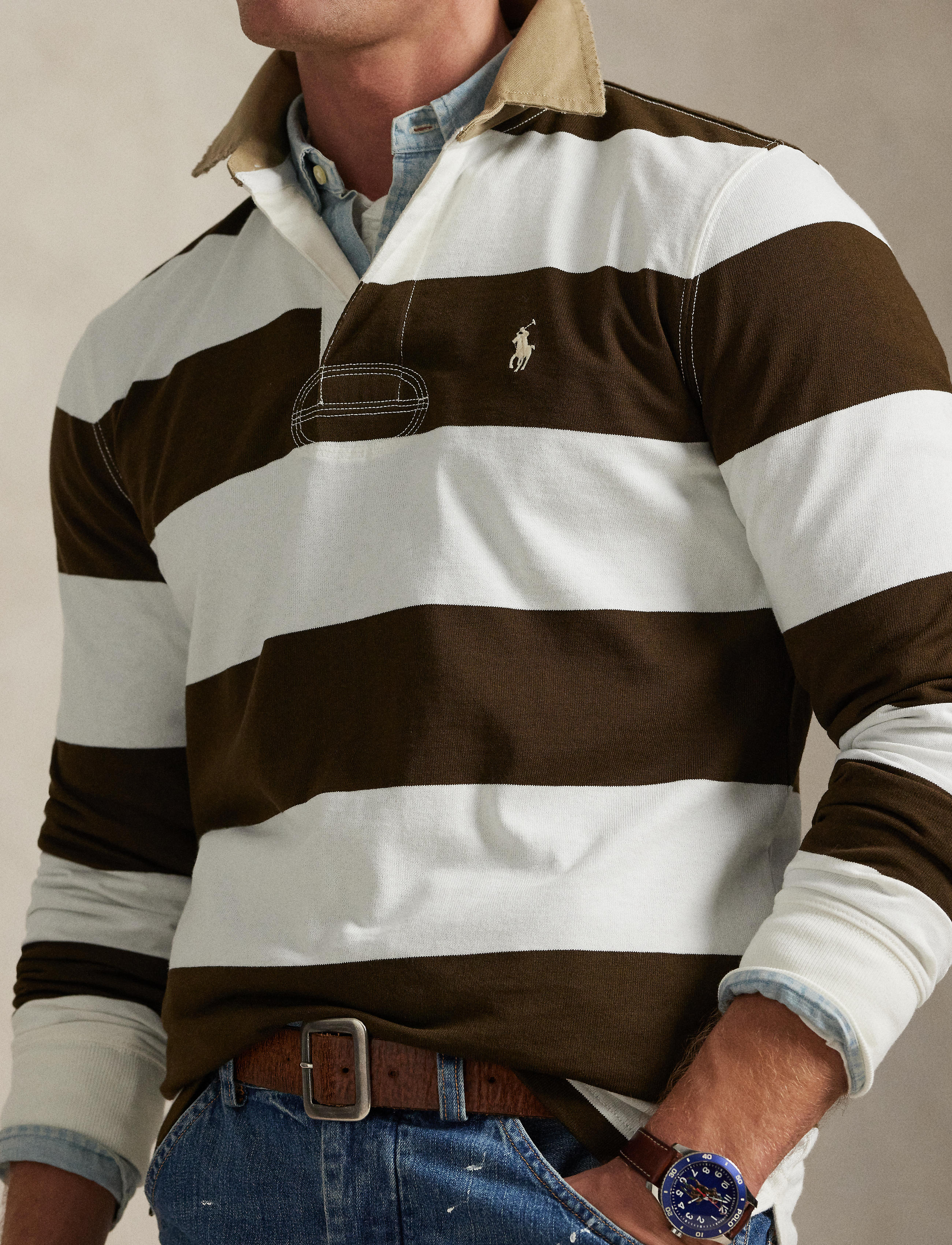 This version of our iconic rugby shirt is updated with blazer stripes in a fresh color palette and a distressed khaki collar.