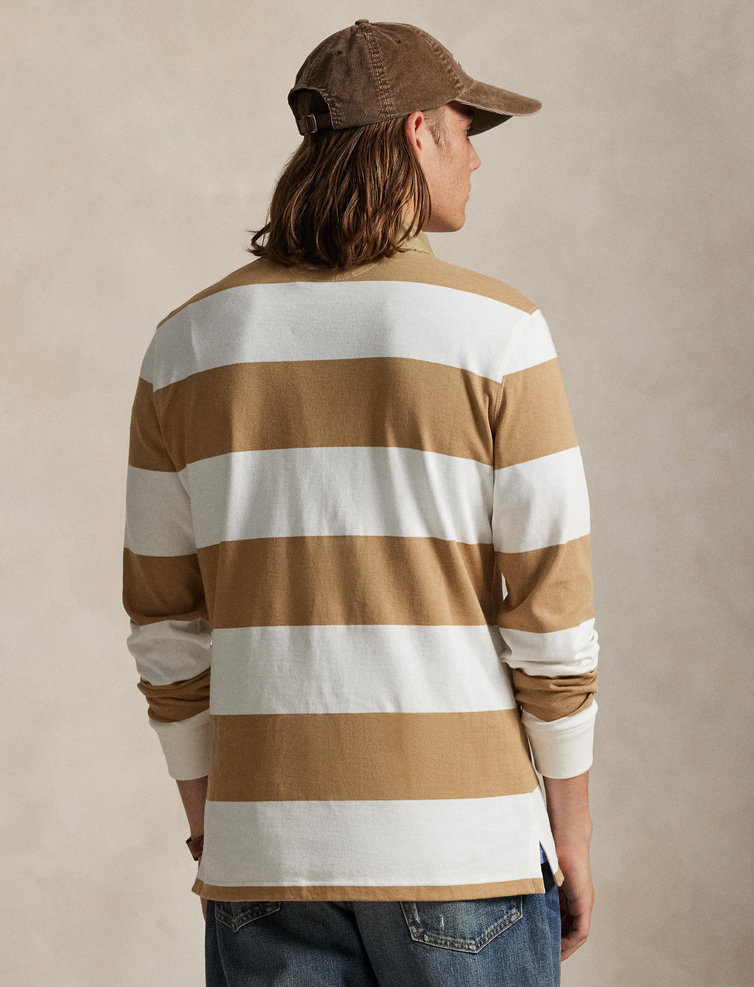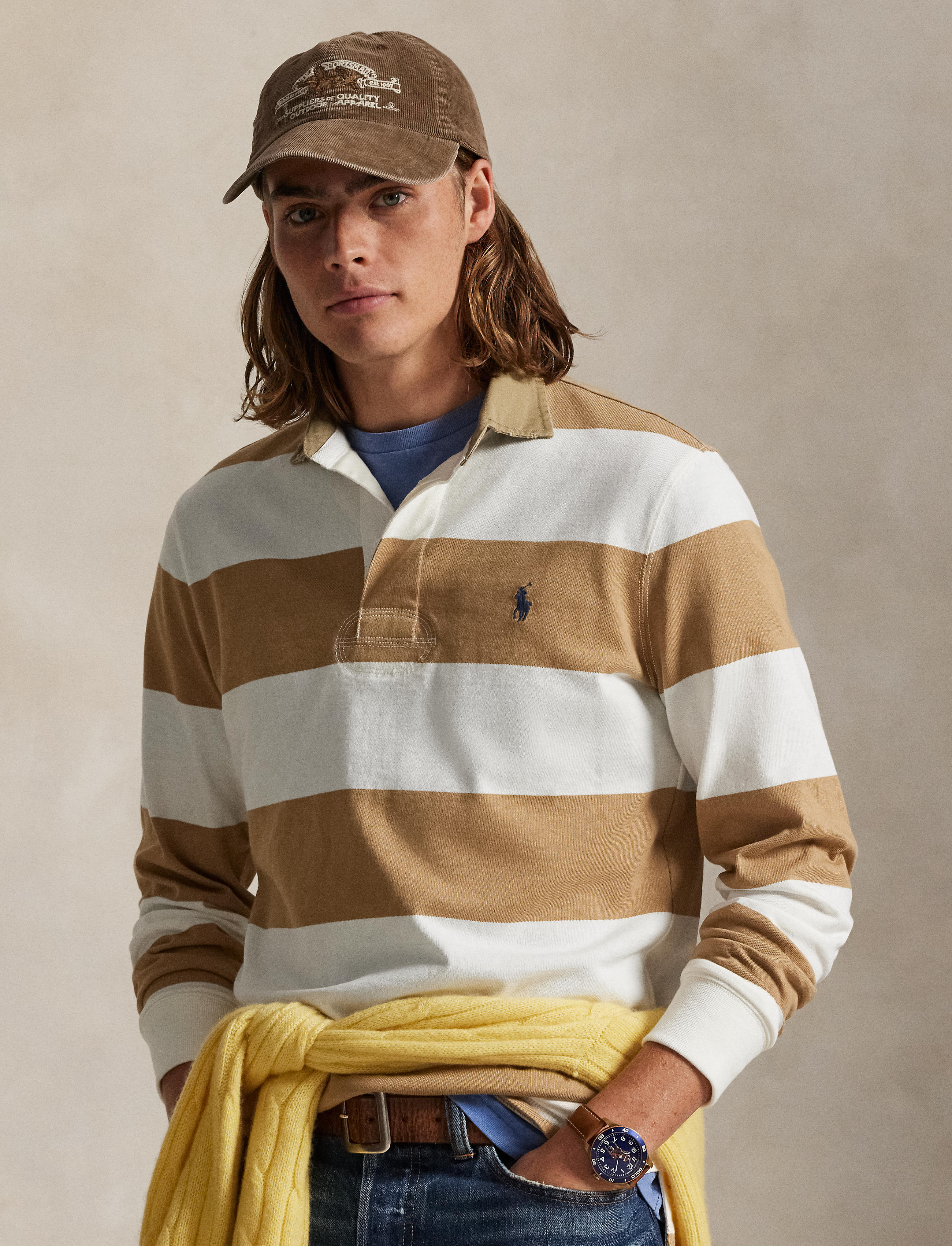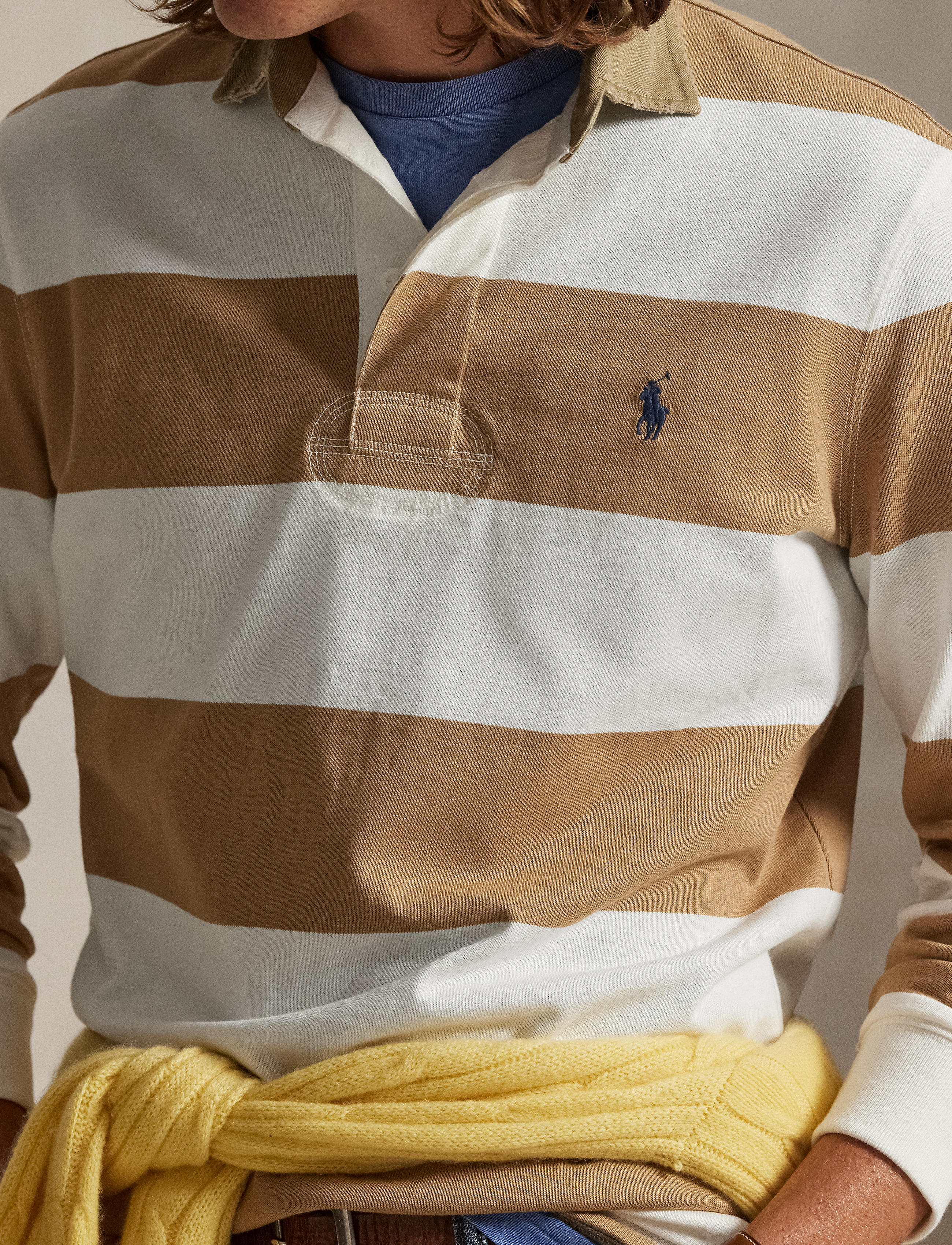 This version of our iconic rugby shirt is updated with blazer stripes in a fresh color palette and a distressed khaki collar.