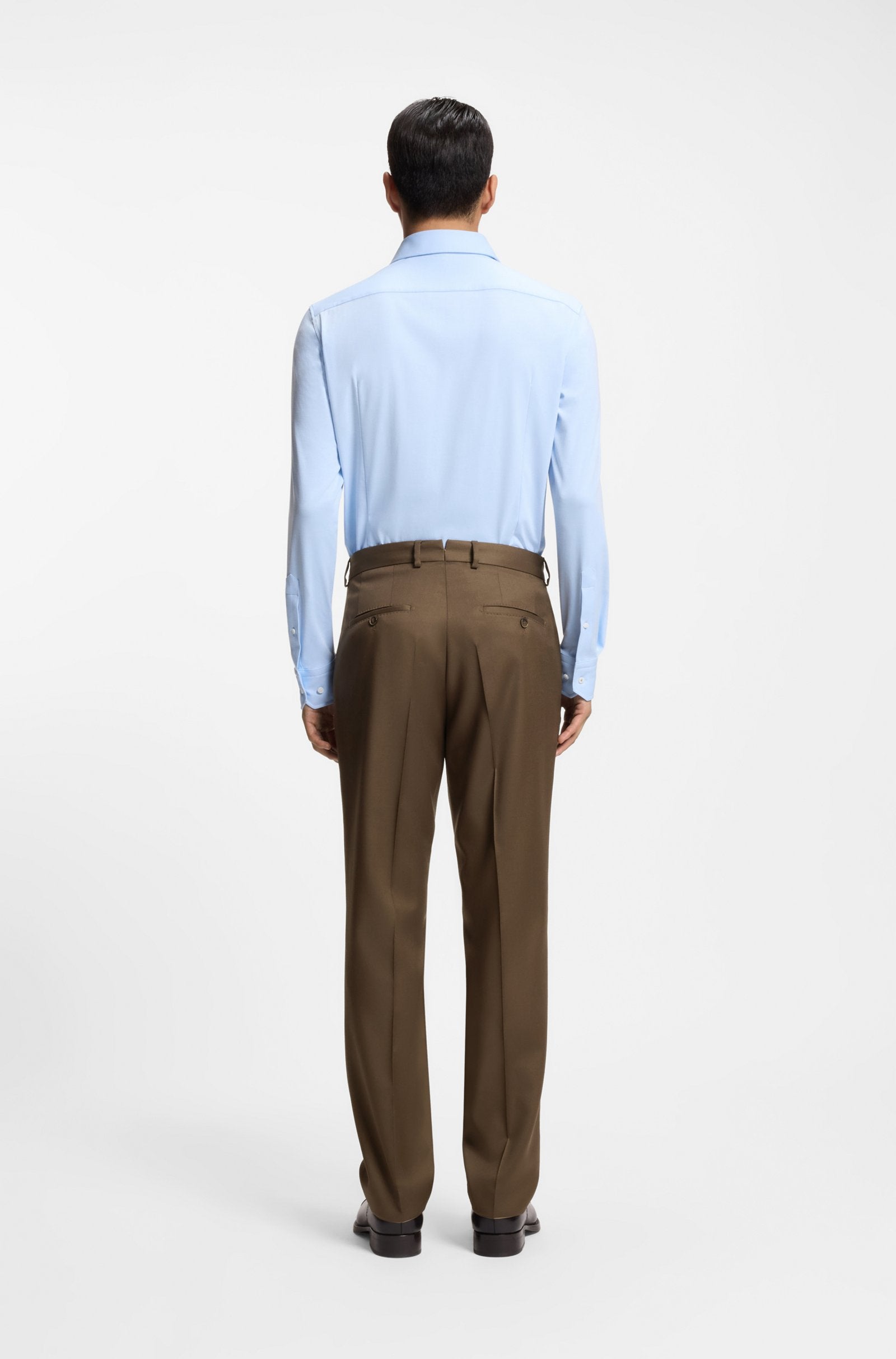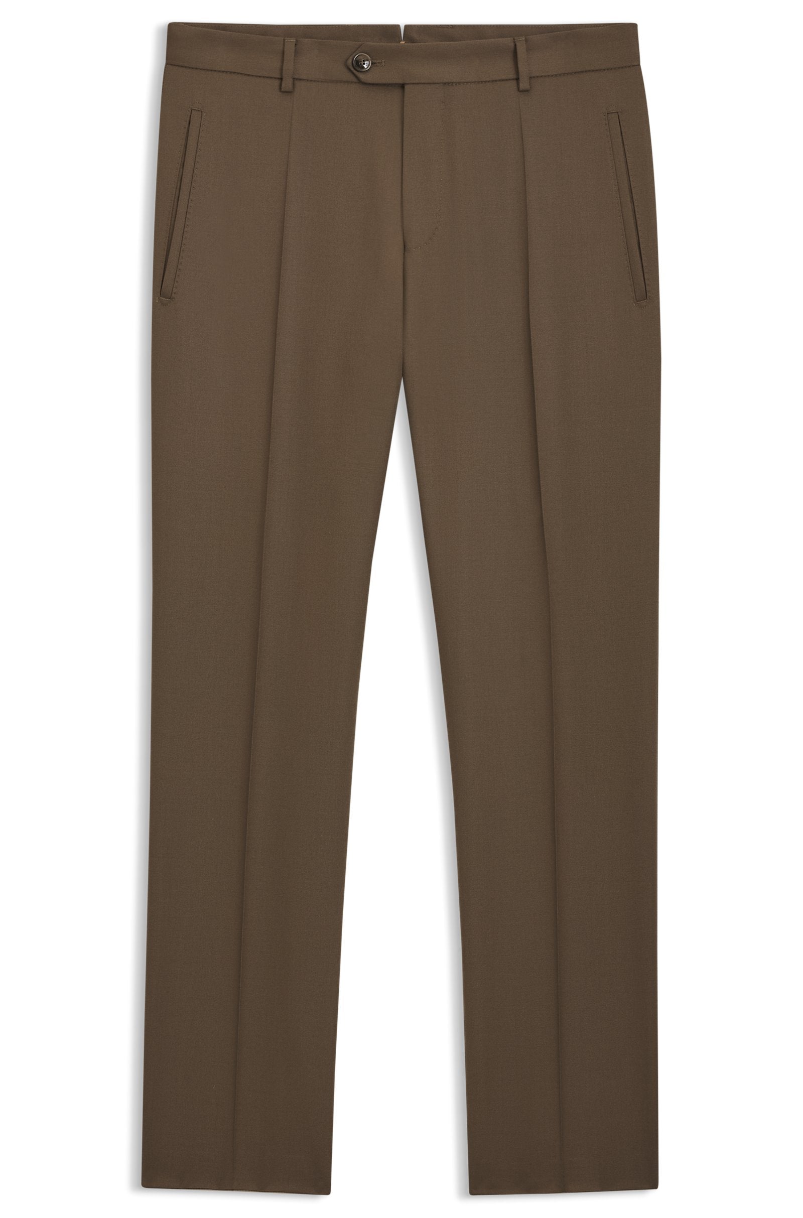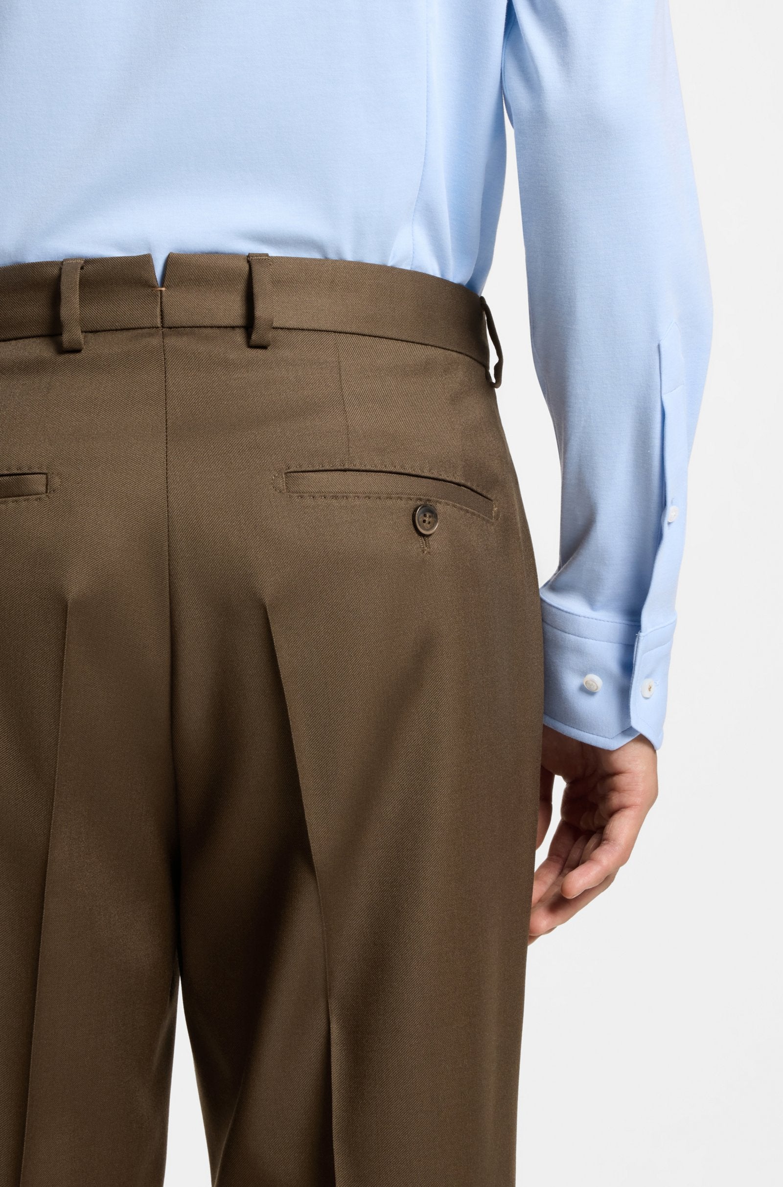 Create a variety of formal looks with the straight, flat-fronted fit of these BOSS Menswear trousers. Virgin and textured wool with a subtle pattern.