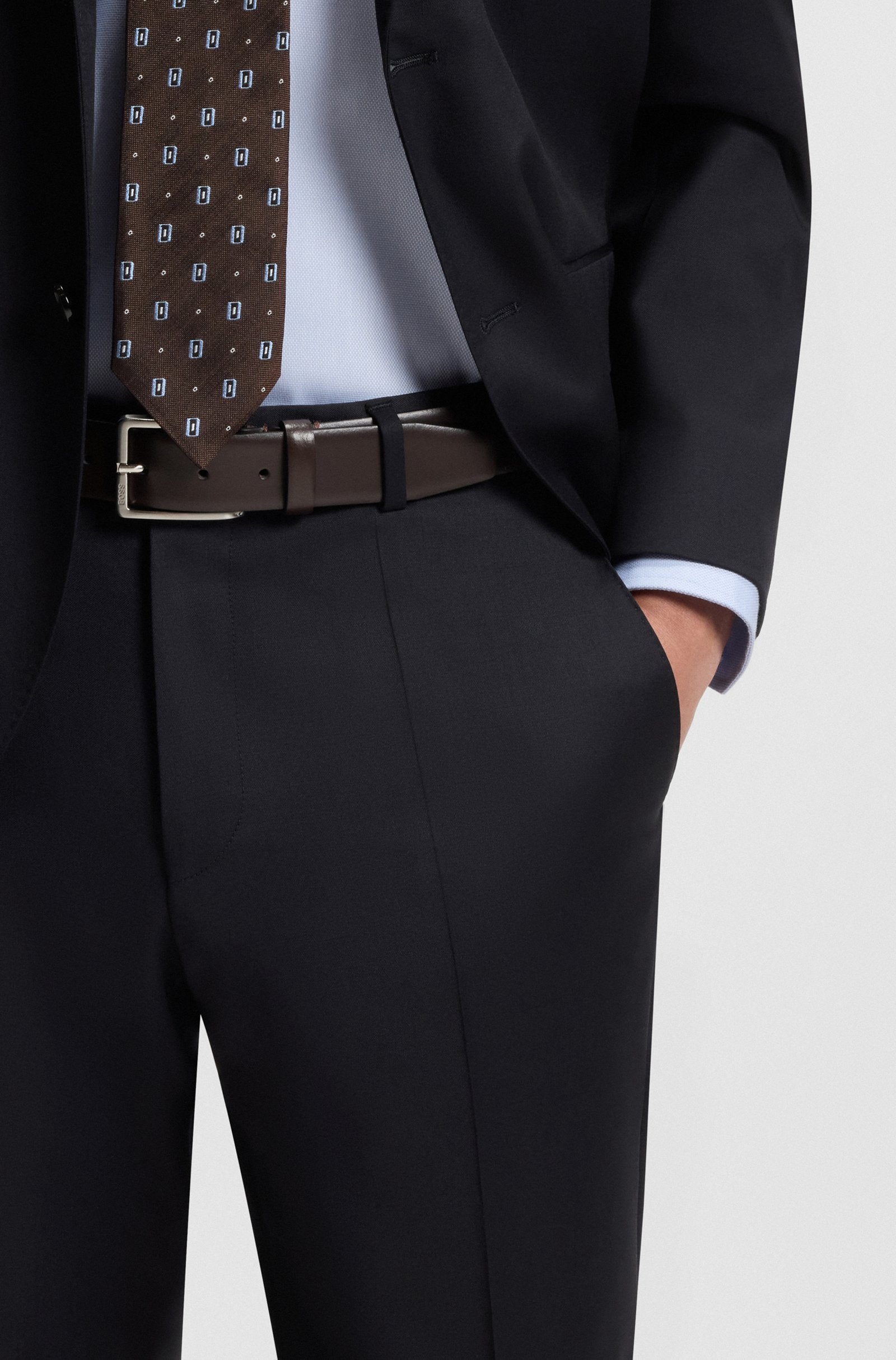 Pair these regular-fit trousers by BOSS Menswear with the matching suit jacket, or with casuals for a laid-back look. Finest virgin-wool serge.