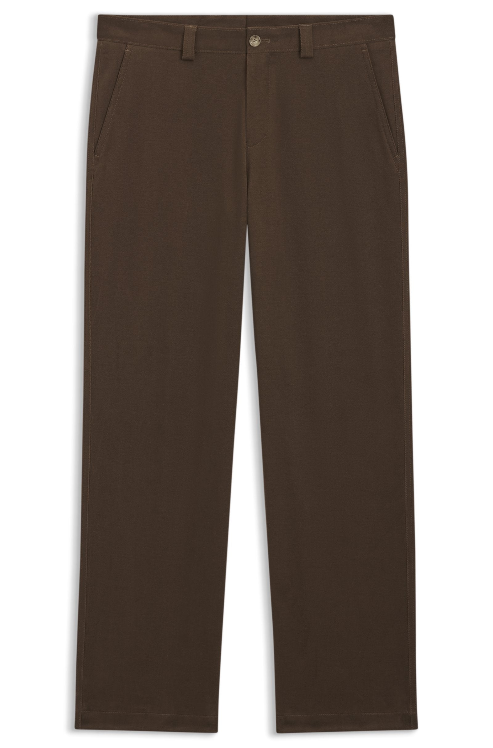 With their tapered fit and subtle twill weave, these BOSS Menswear trousers are so easy to style. Cotton with added stretch. Brushed finish.
