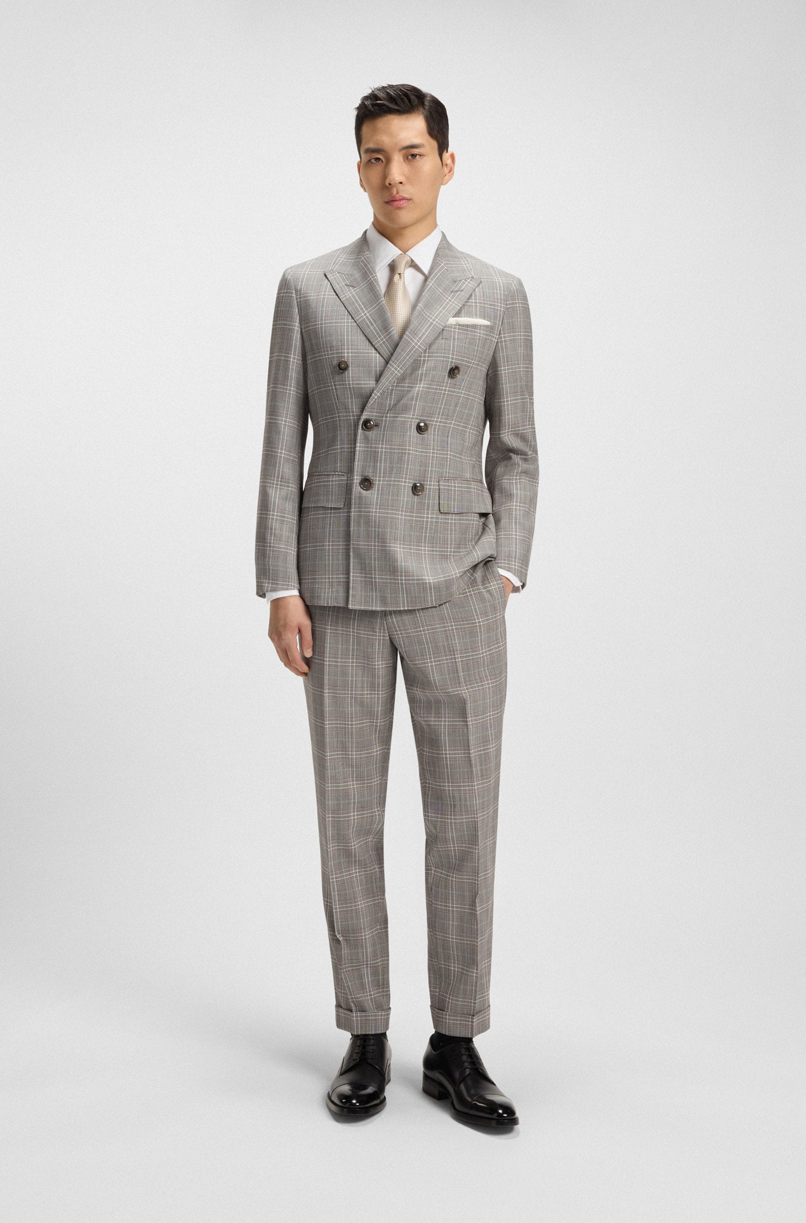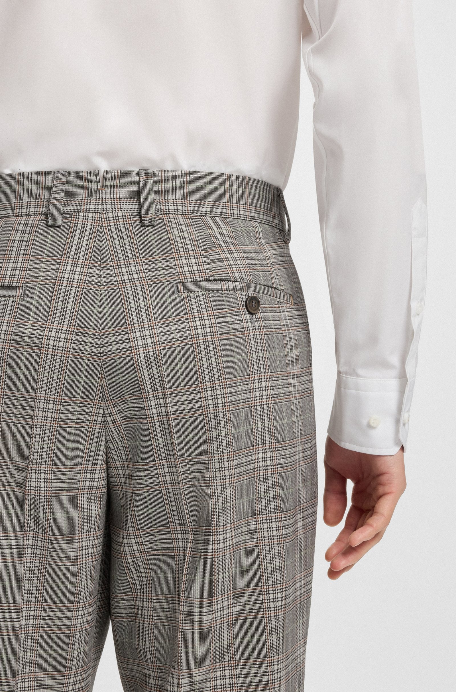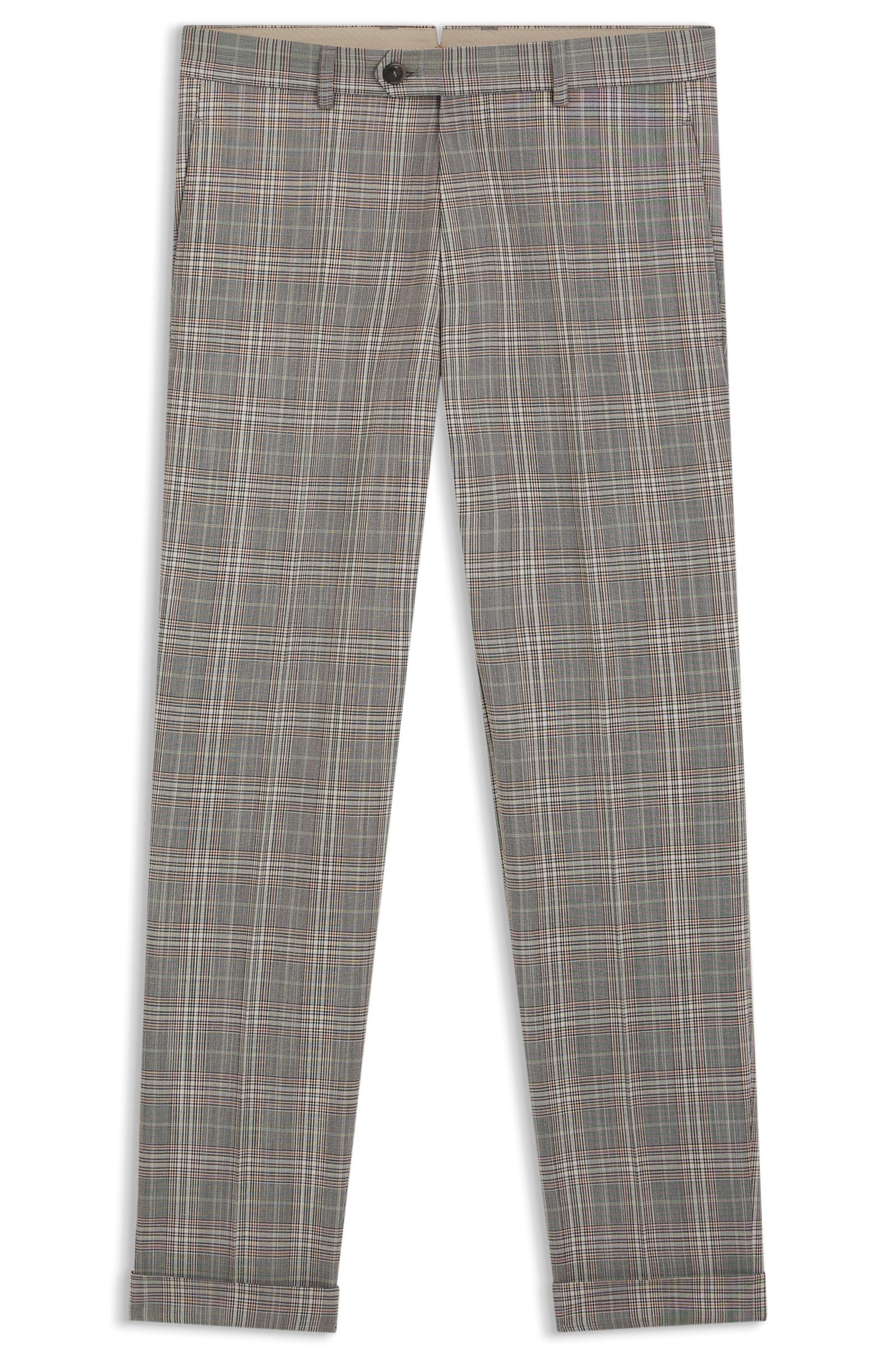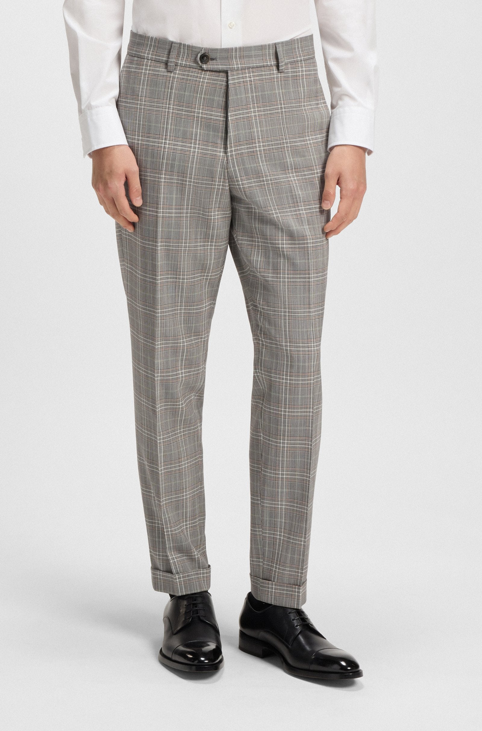 Patterned with a Prince of Wales check, these BOSS Menswear trousers blend virgin wool with silk for a refined feel. Tailored to a tapered fit.