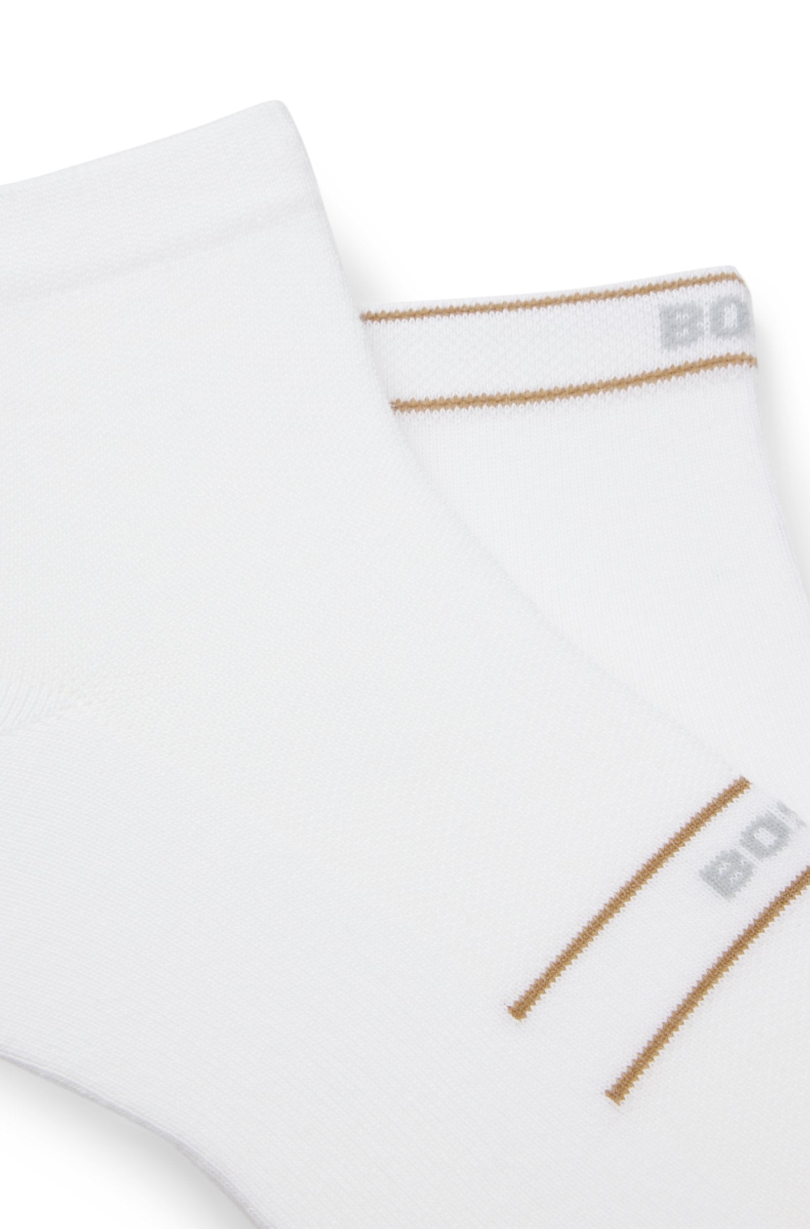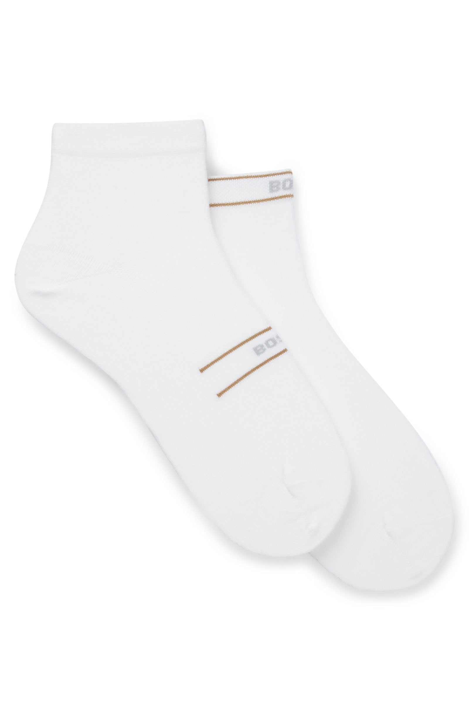 With their sporty quarter length and cotton-rich yarn, these two pairs of BOSS Menswear socks are great for active days. Stripe and logo detailing.