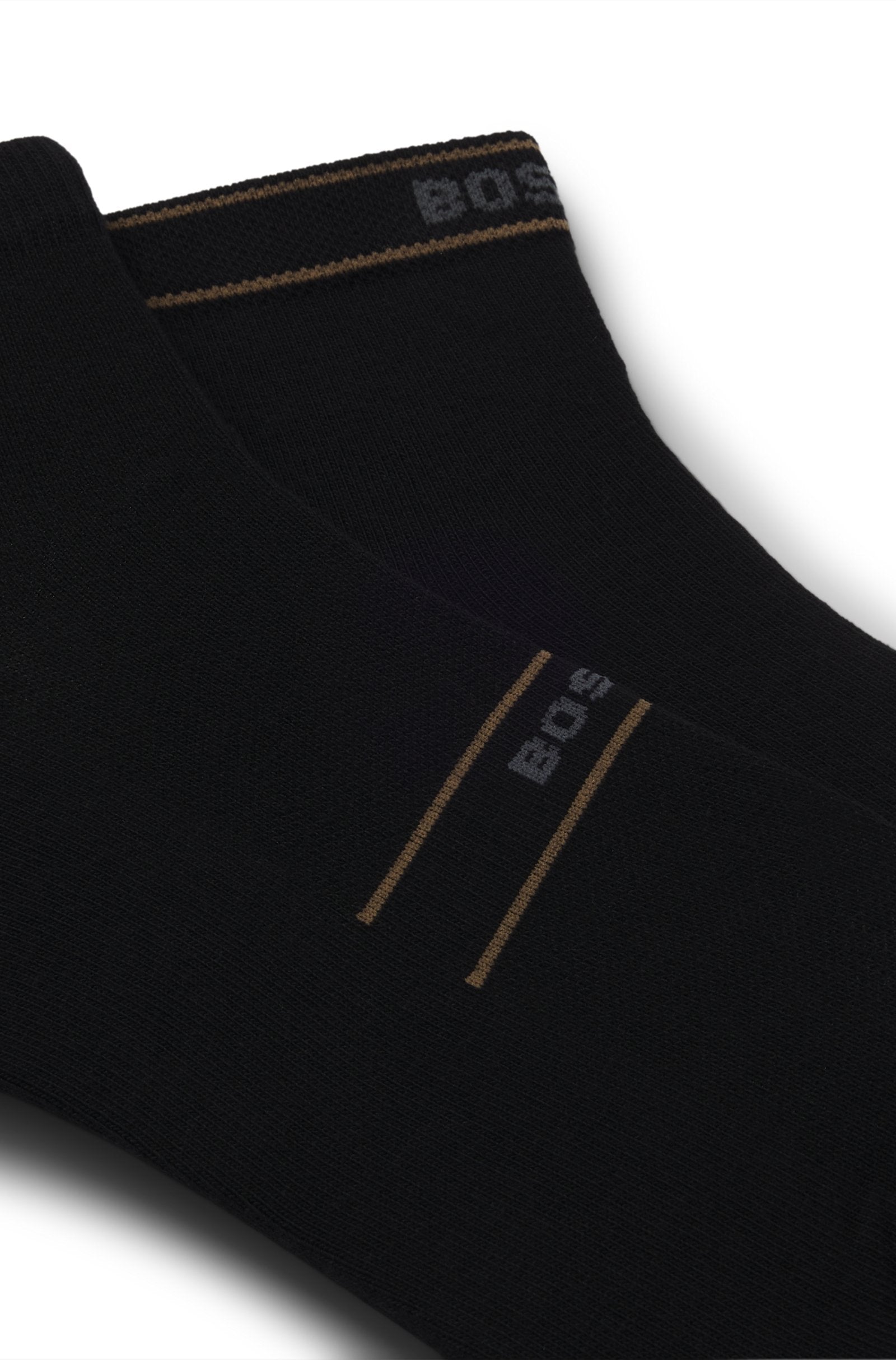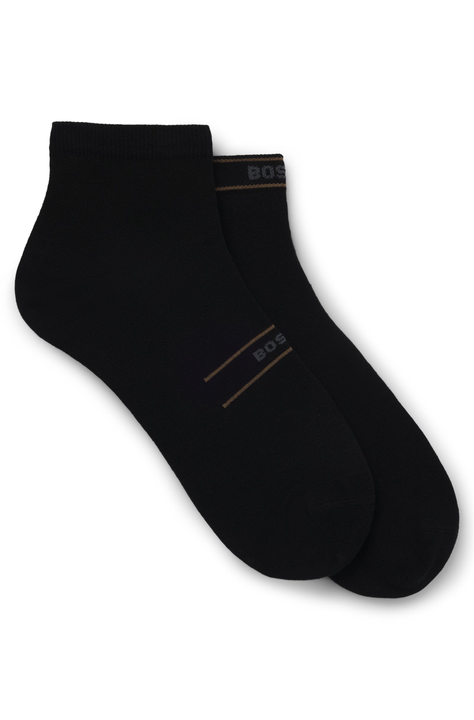 With their sporty quarter length and cotton-rich yarn, these two pairs of BOSS Menswear socks are great for active days. Stripe and logo detailing.