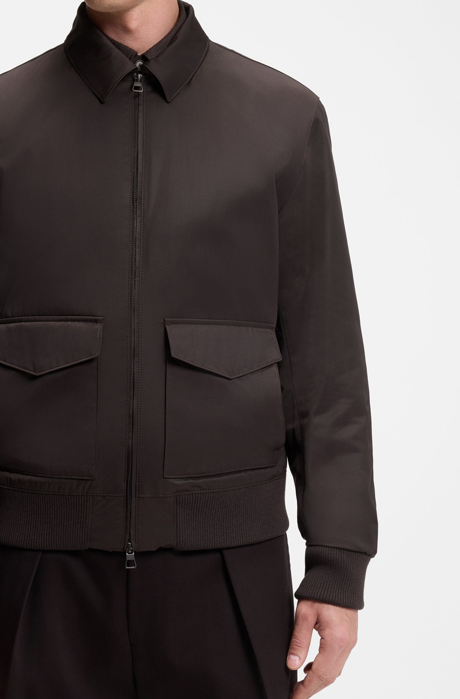 Elevate casual looks with the water-repellent twill of this BECKHAM x BOSS men's jacket. Stretch-wool knitted trims. BECKHAM x BOSS brings effortless style with timeless and elevated statement pieces, inspired by David’s wardrobe.