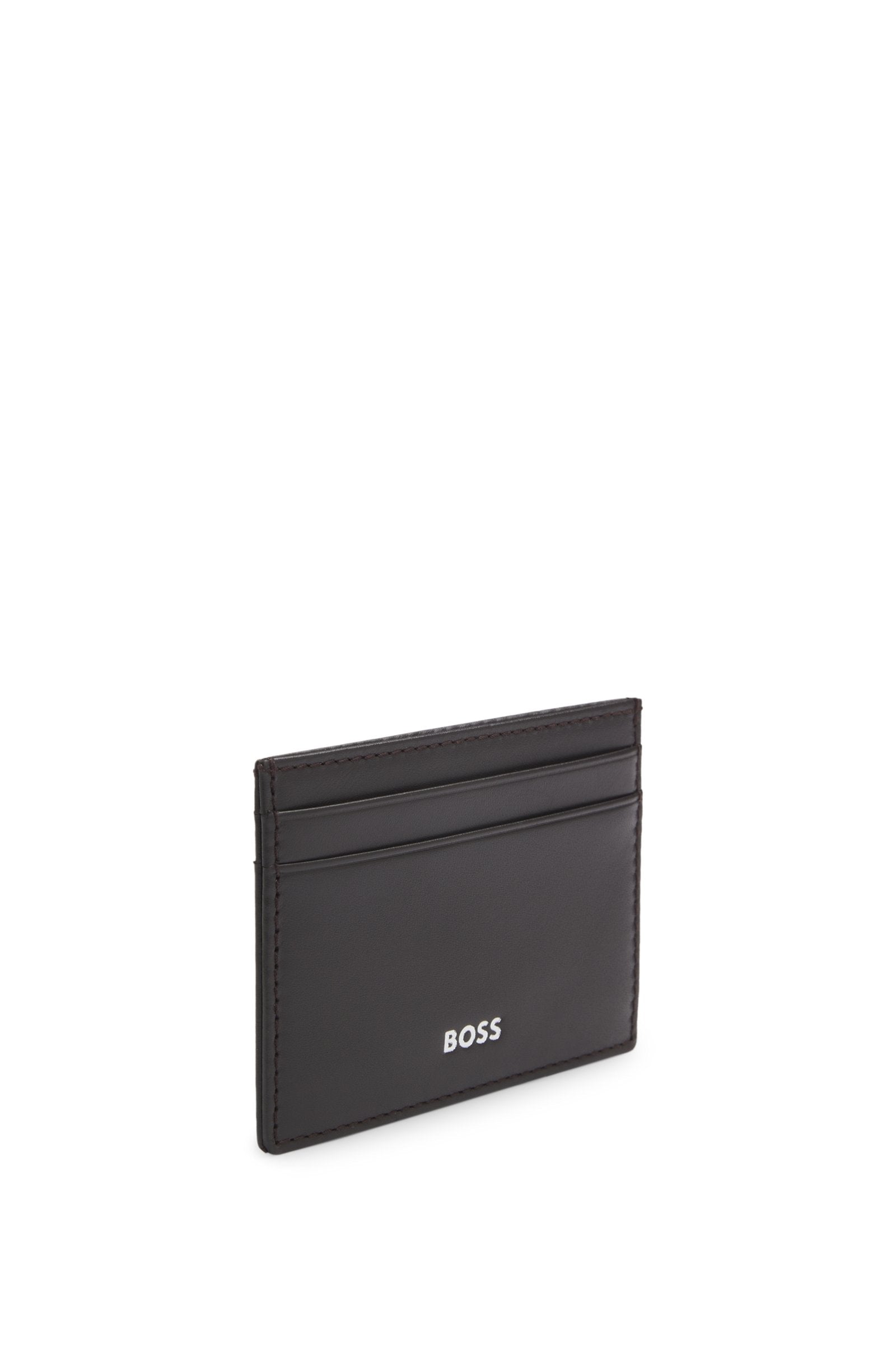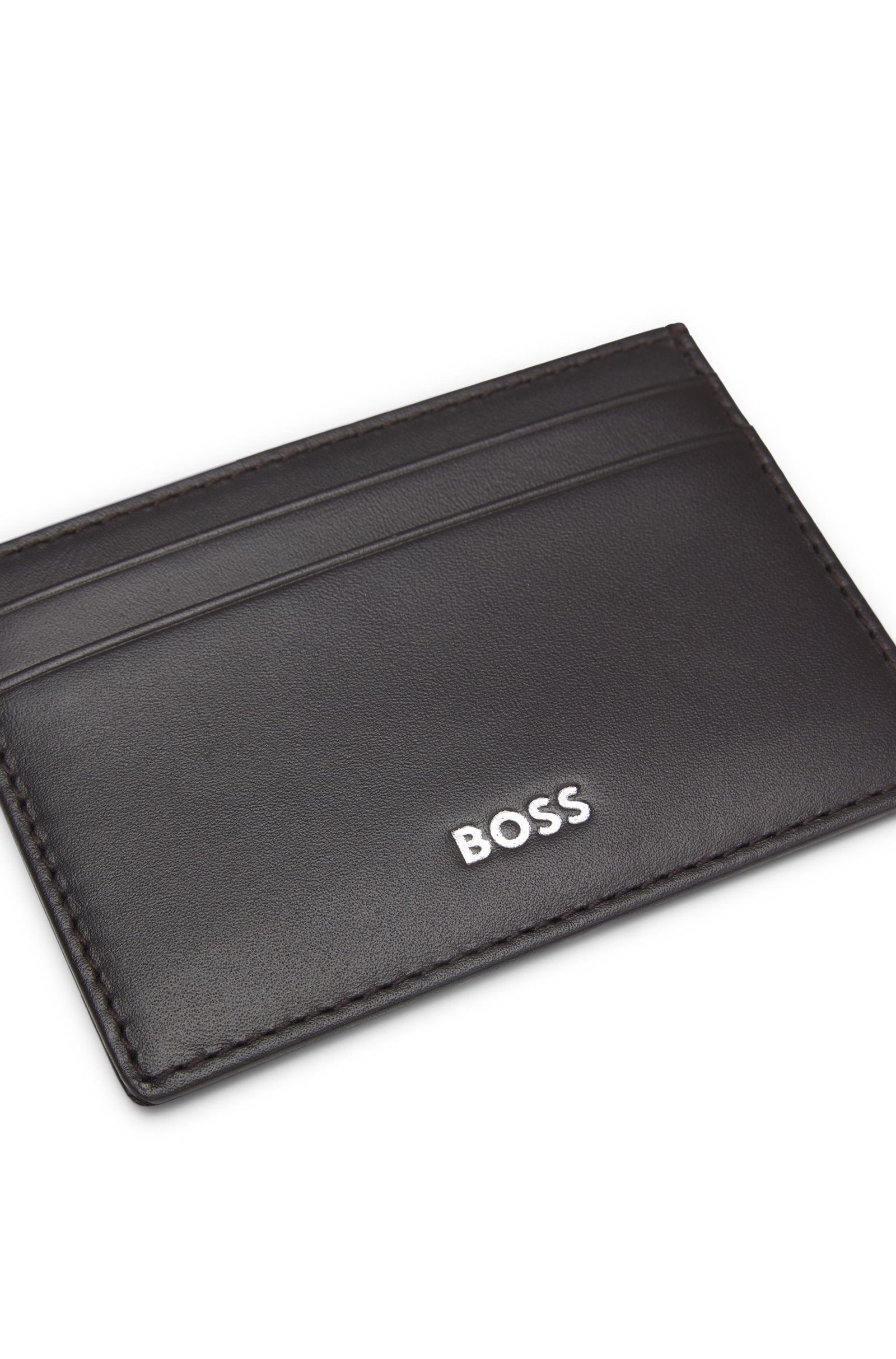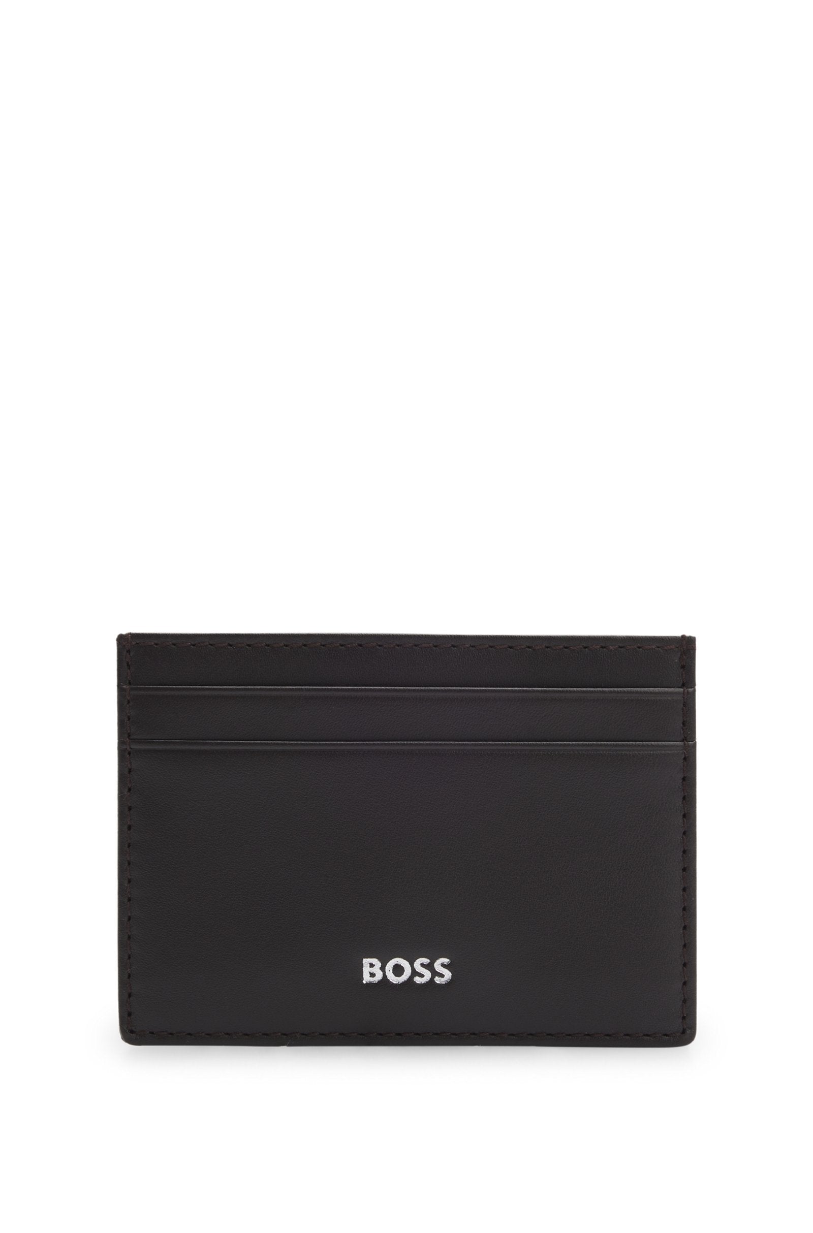 Trimmed with a logo print in a silver effect, this BOSS Menswear card holder offers refined organization. Crafted in smooth leather.