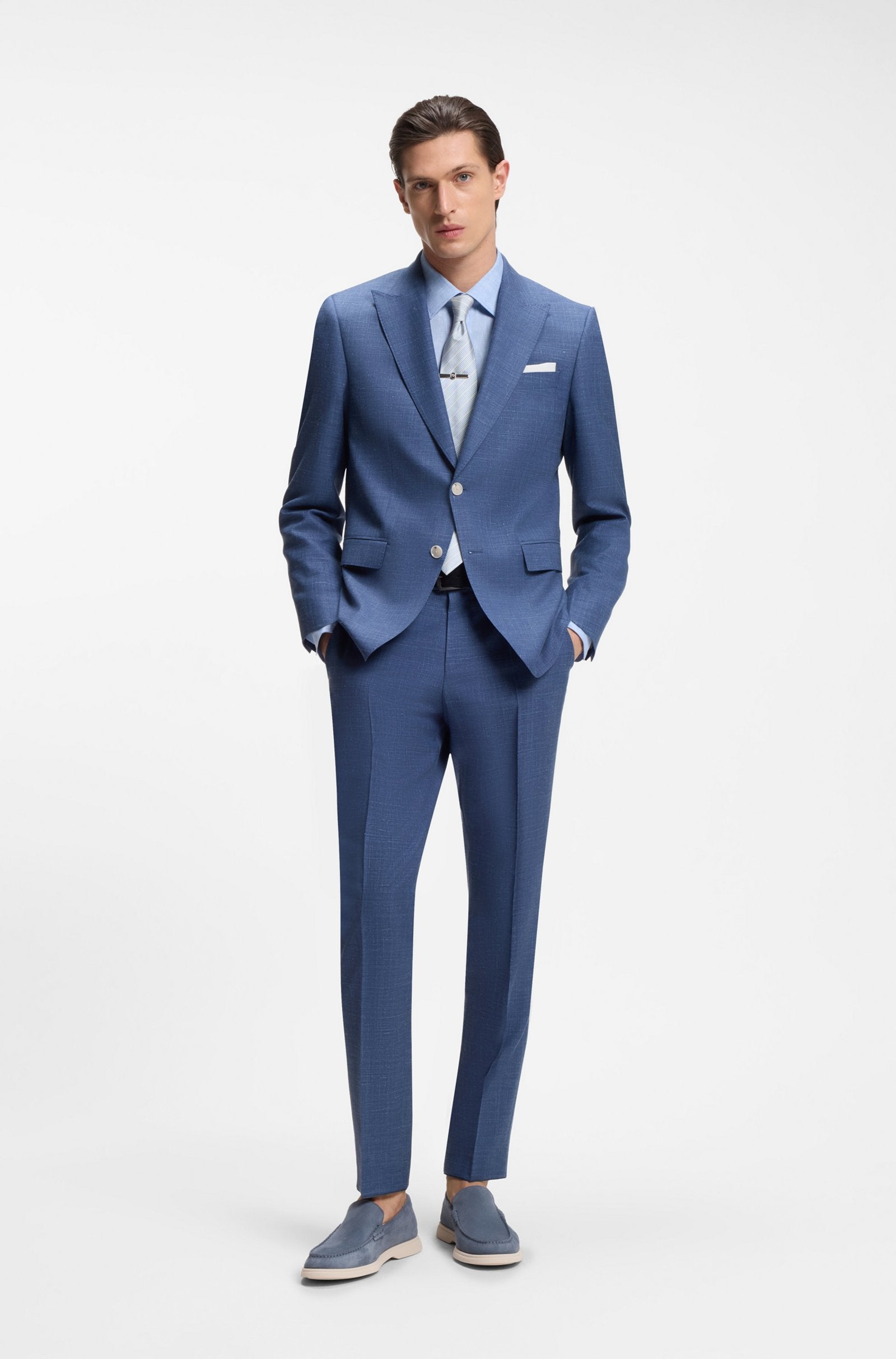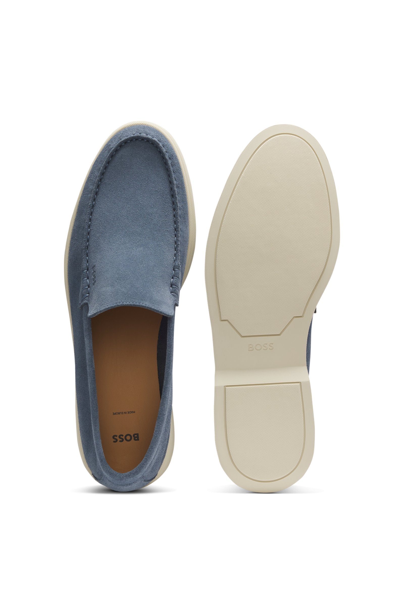 With clean styling in rich suede, these BOSS Menswear loafers are built on a flexible, durable outsole. Subtle debossed logo. Made in Portugal.
