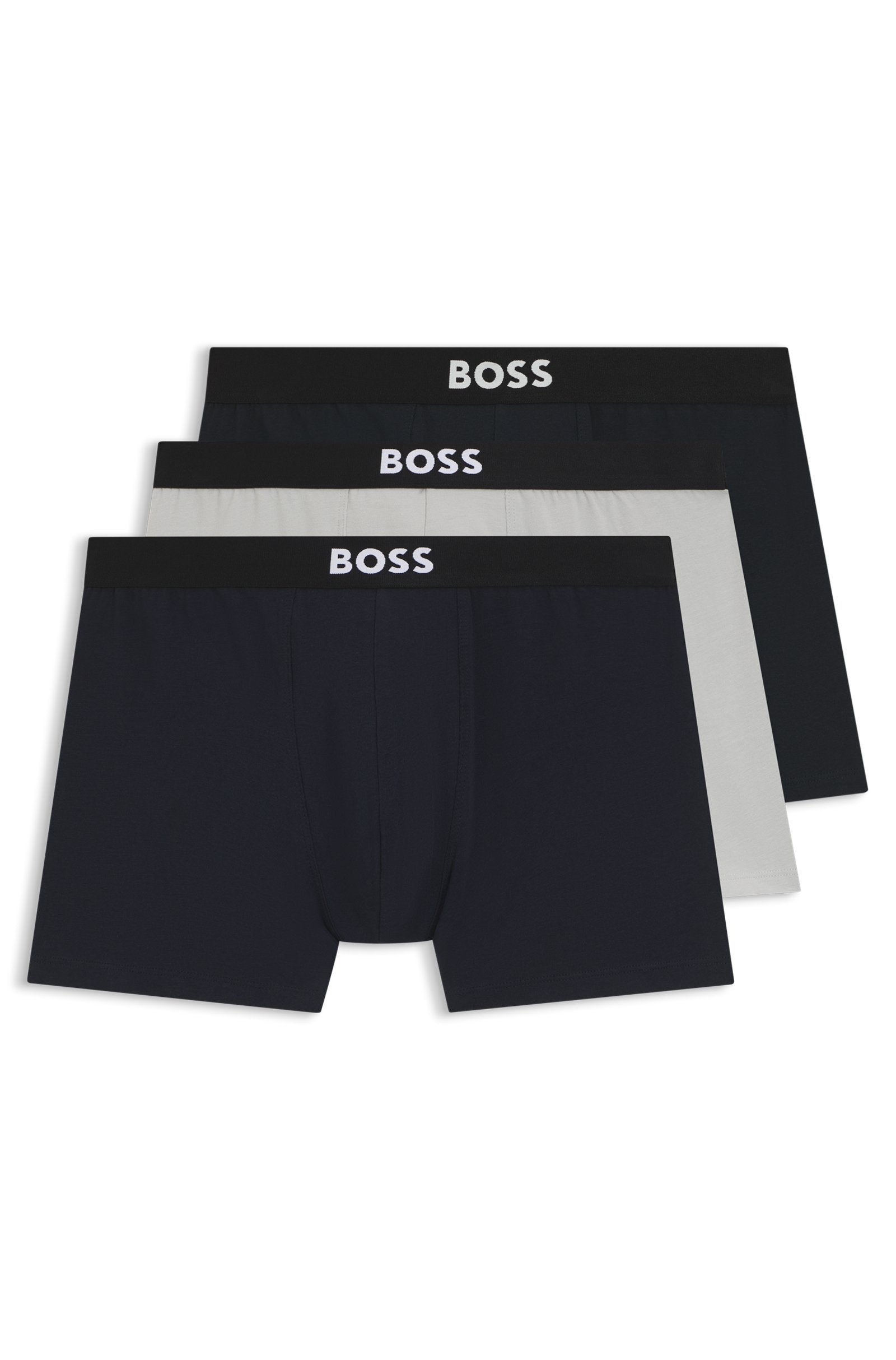 With a comfort fit in breathable stretch cotton, this trio of BOSS Menswear boxer briefs offers refined foundations. Contrast logo at center waistband.