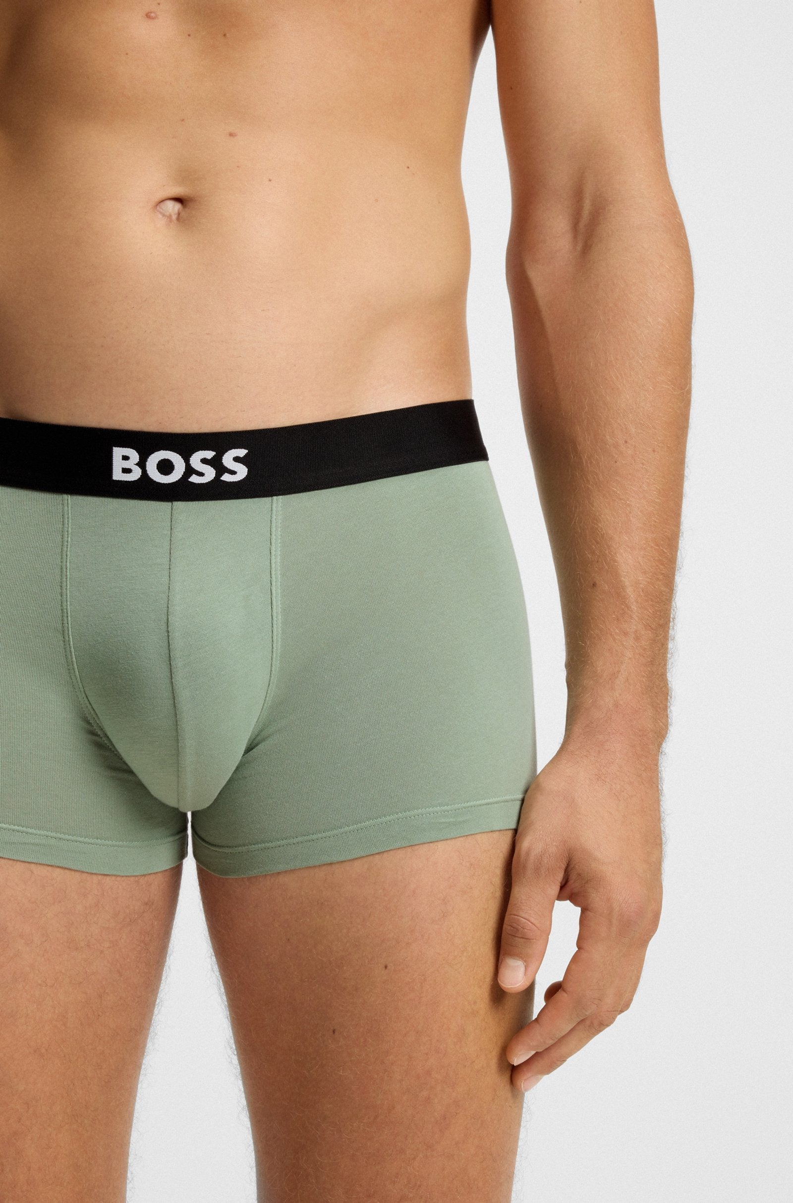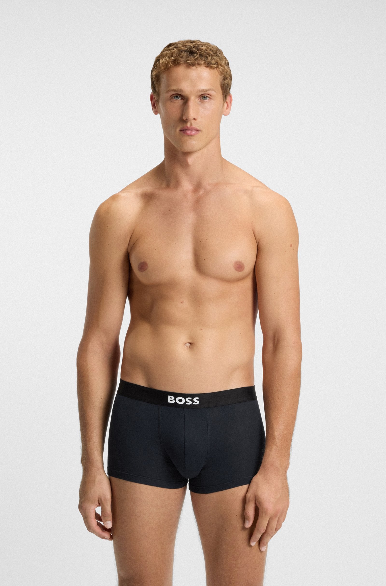 With their ergonomic fit and soft stretch-cotton jersey, these three pairs of BOSS Menswear trunks offer refined comfort. Contrast logo on waistband.