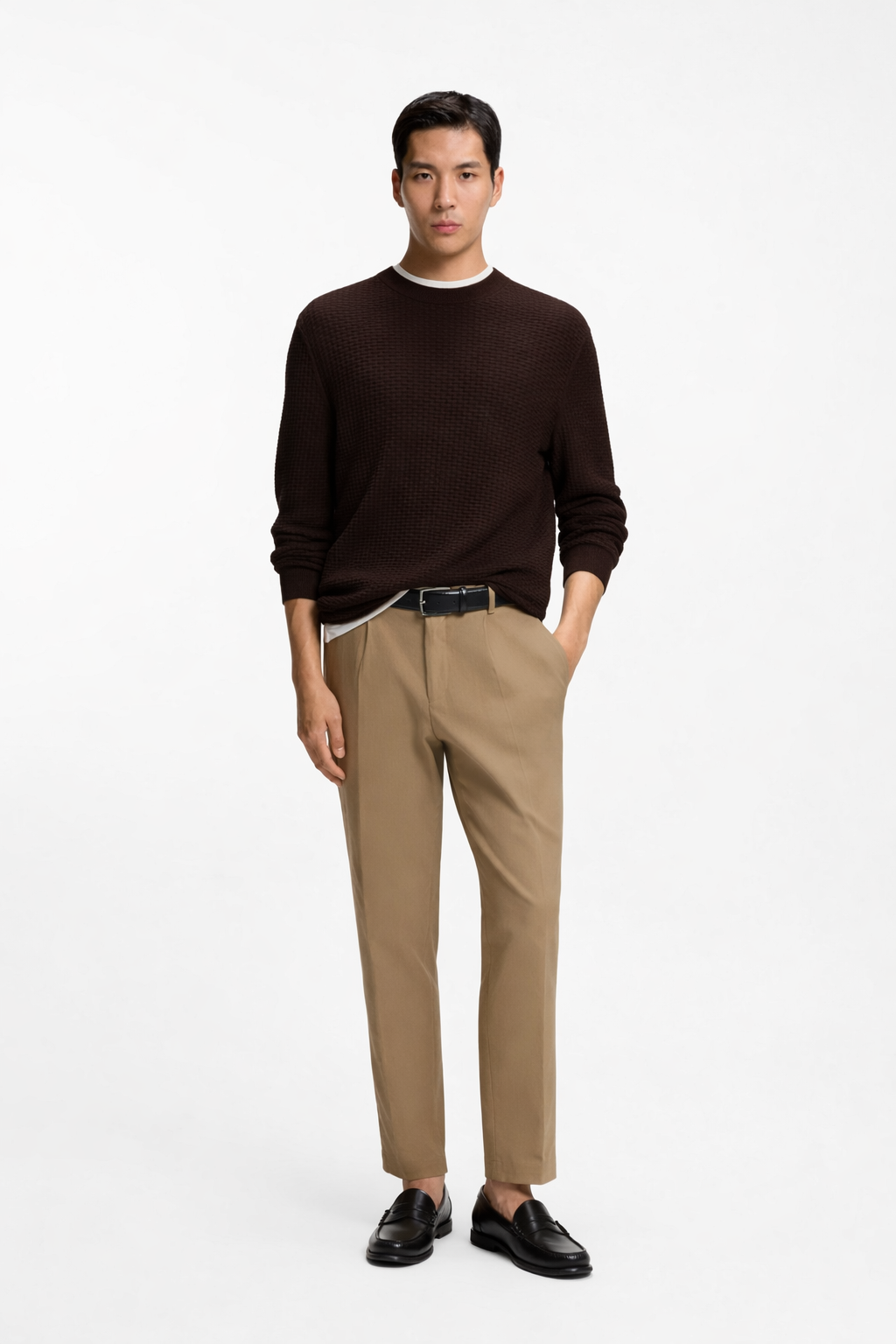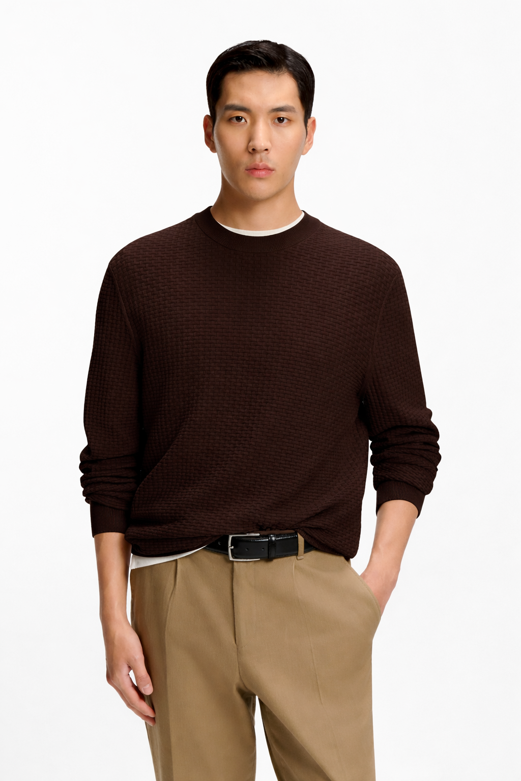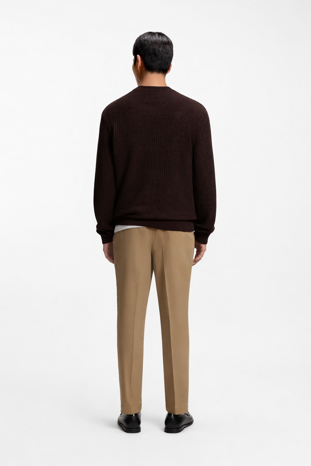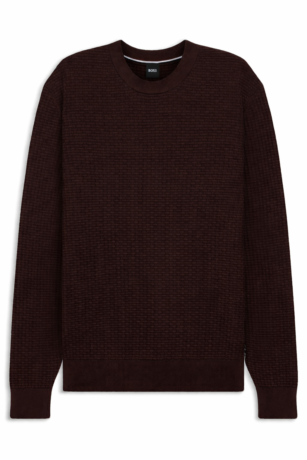 Knitted with a combination of rich structures, this BOSS Menswear sweater is an essential layer for the season. Soft cotton. Straight fit.