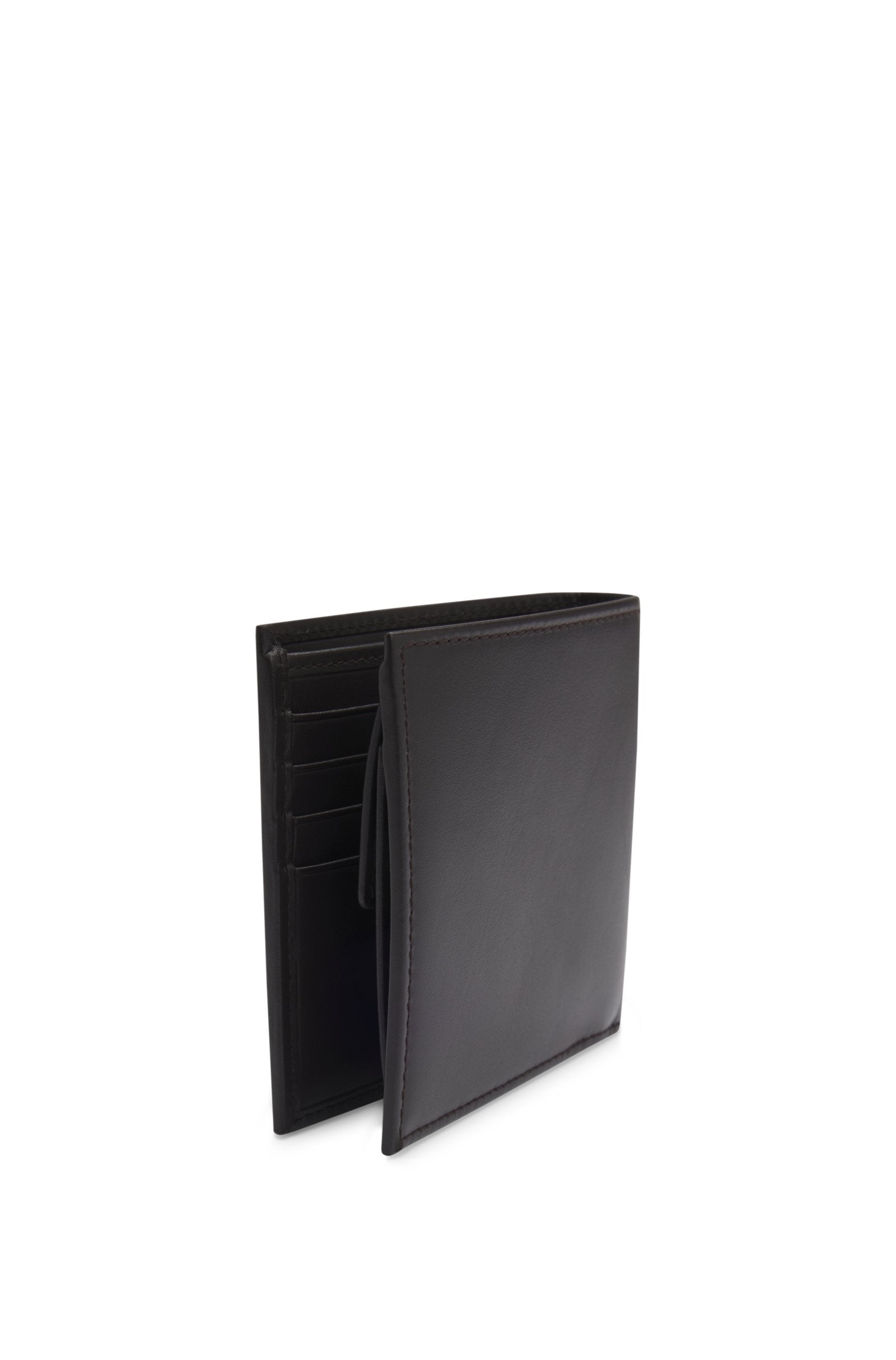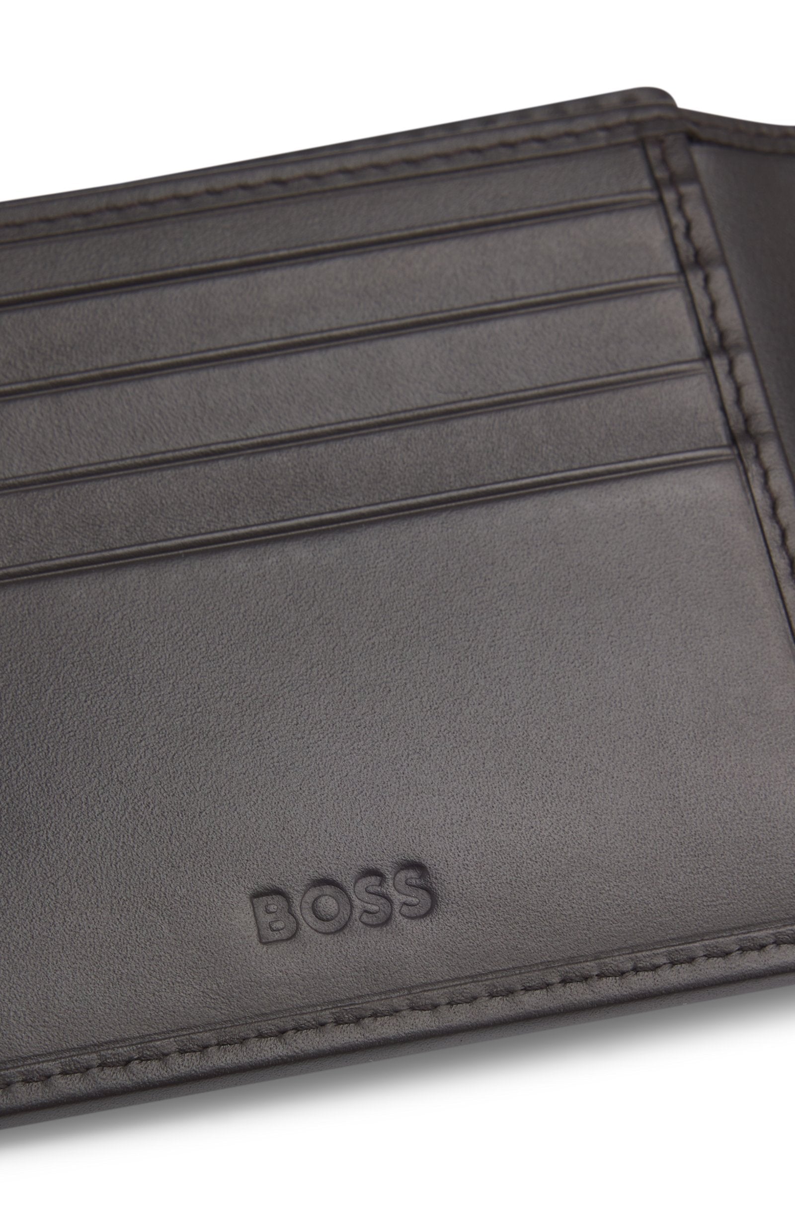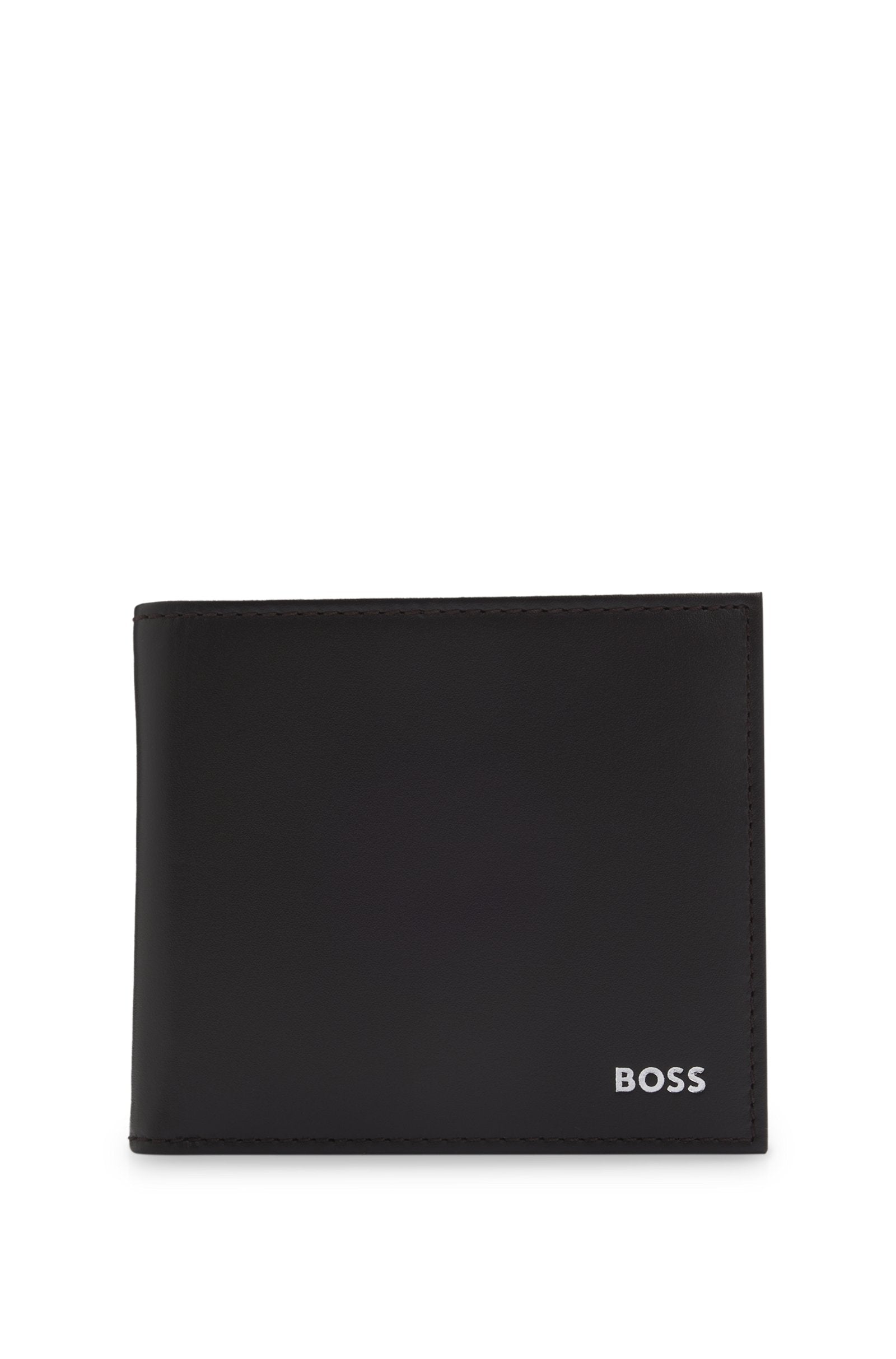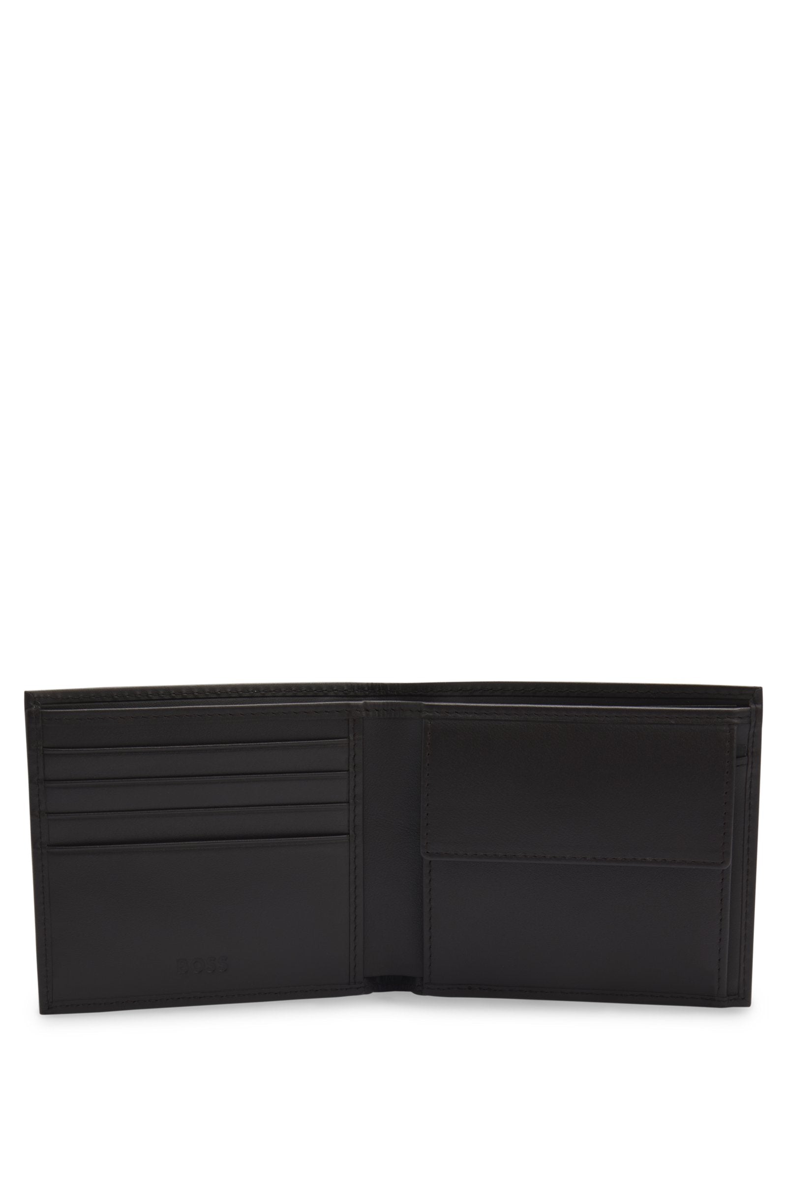 A refined folding wallet from BOSS Menswear, crafted in smooth leather with a coin pocket. Detailed with a silver-tone printed logo.