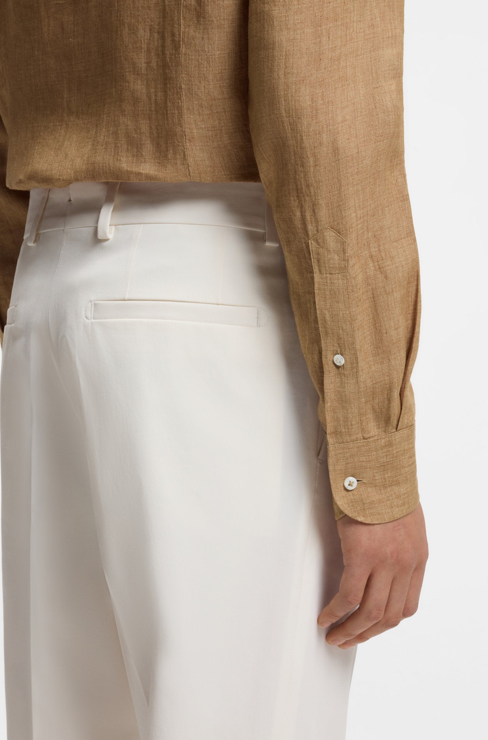 Tailored to a streamlined fit, this BOSS Menswear shirt is designed in summery Italian-crafted linen. Trimmed with polished mother-of-pearl buttons.