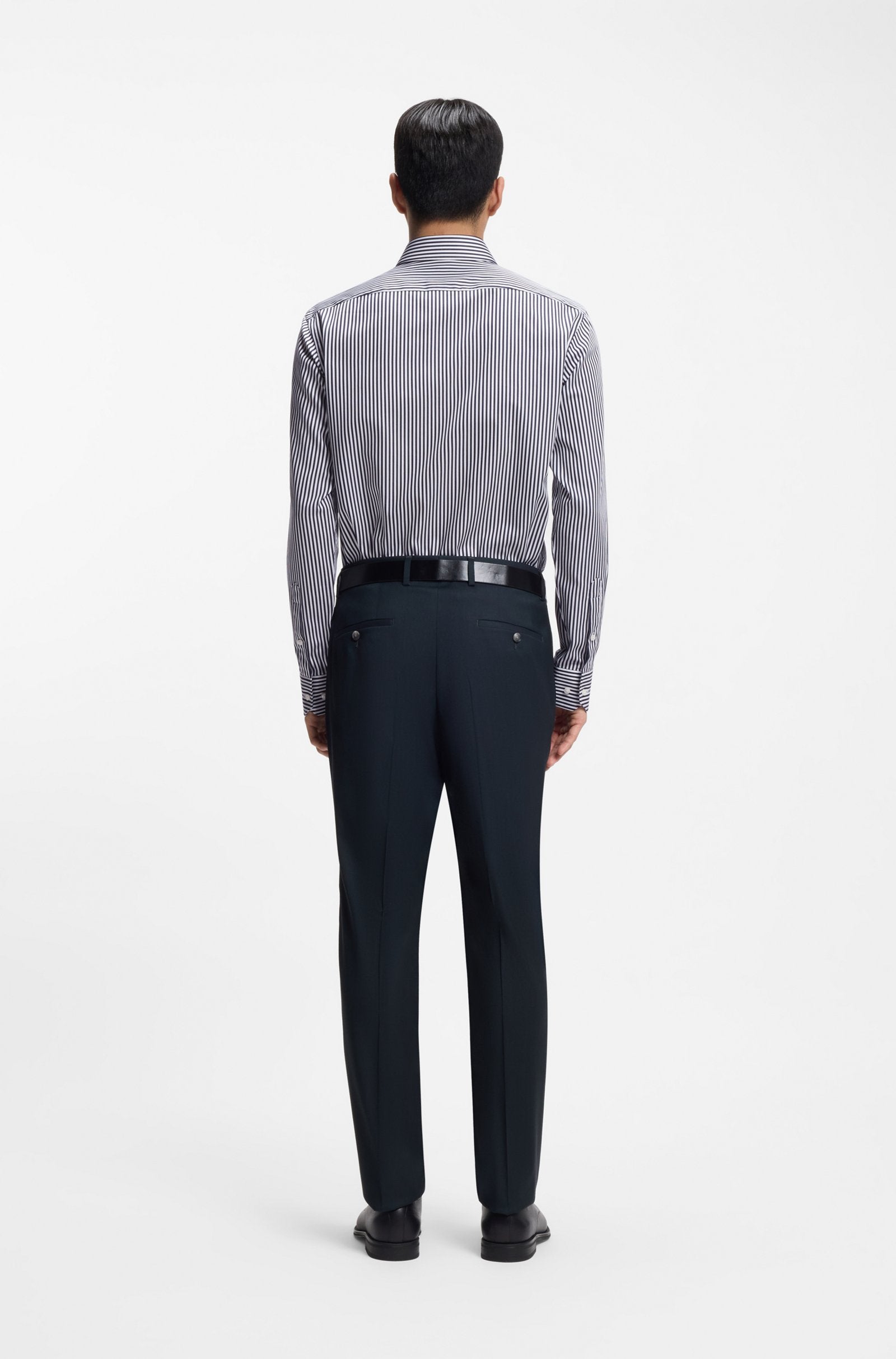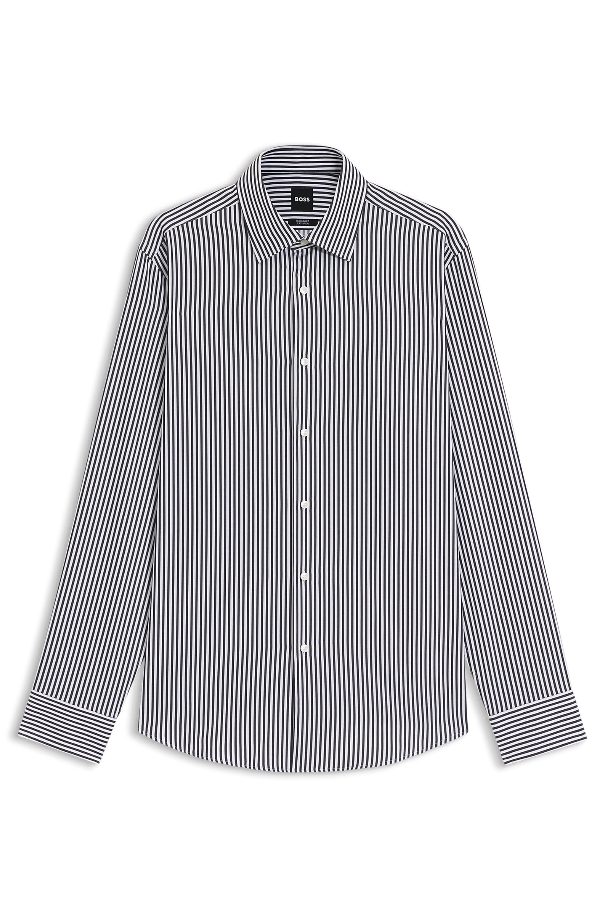 With its classic stripe and softening easy-iron finish, this BOSS Menswear shirt is an elevated business option. Breathable cotton satin.