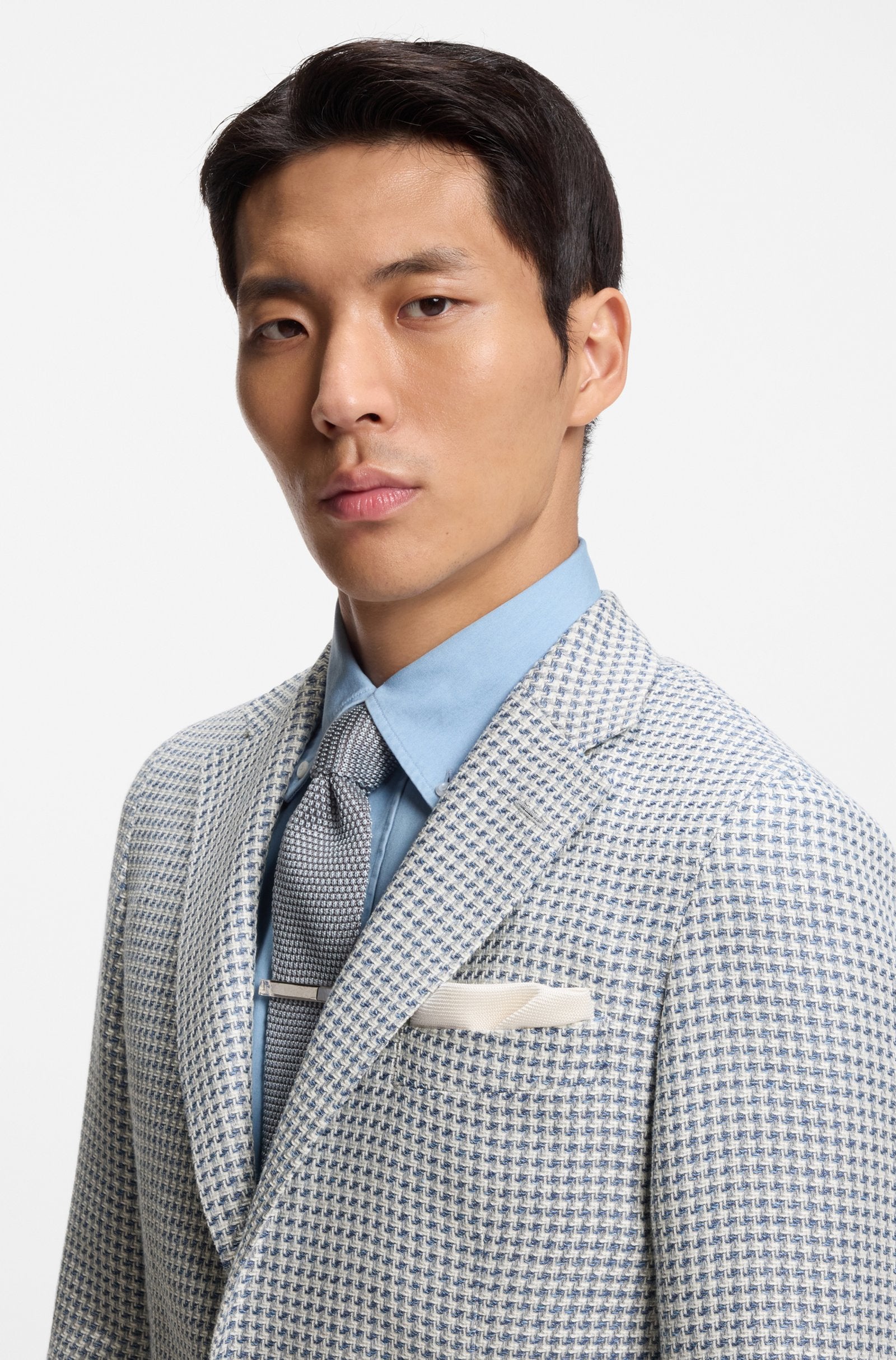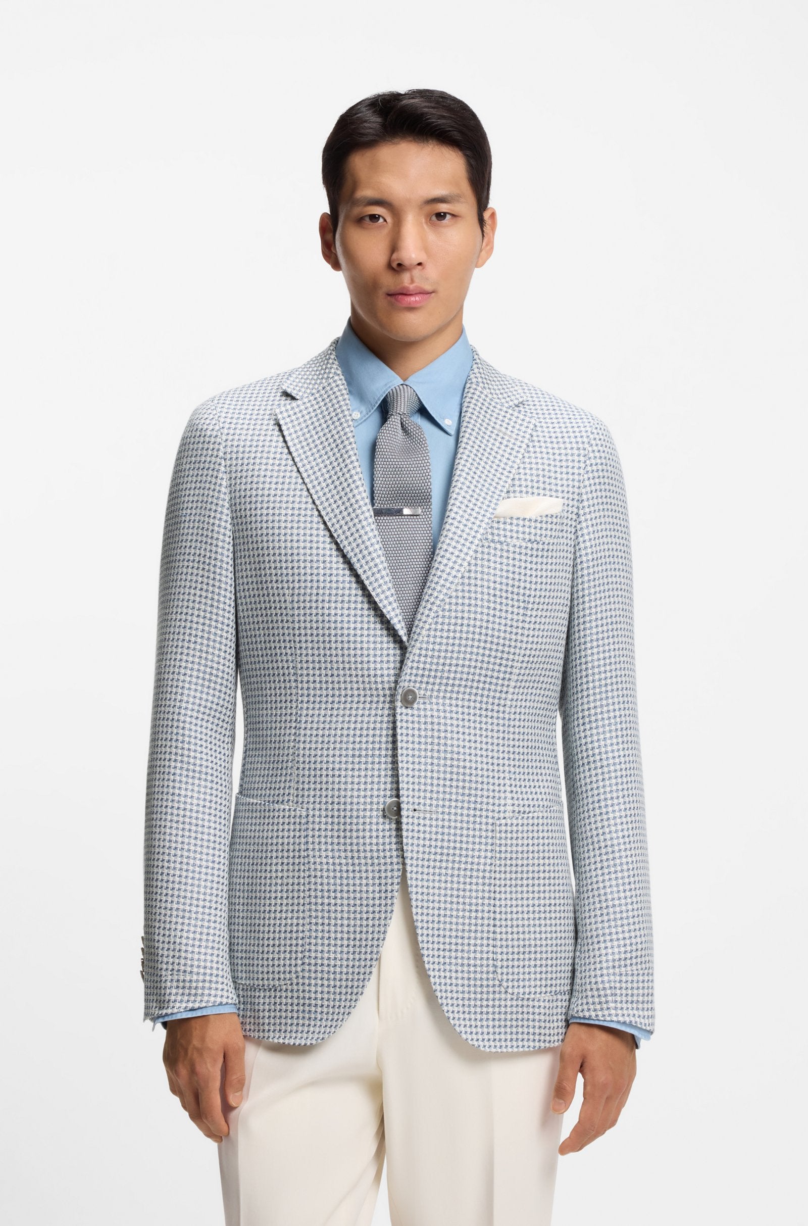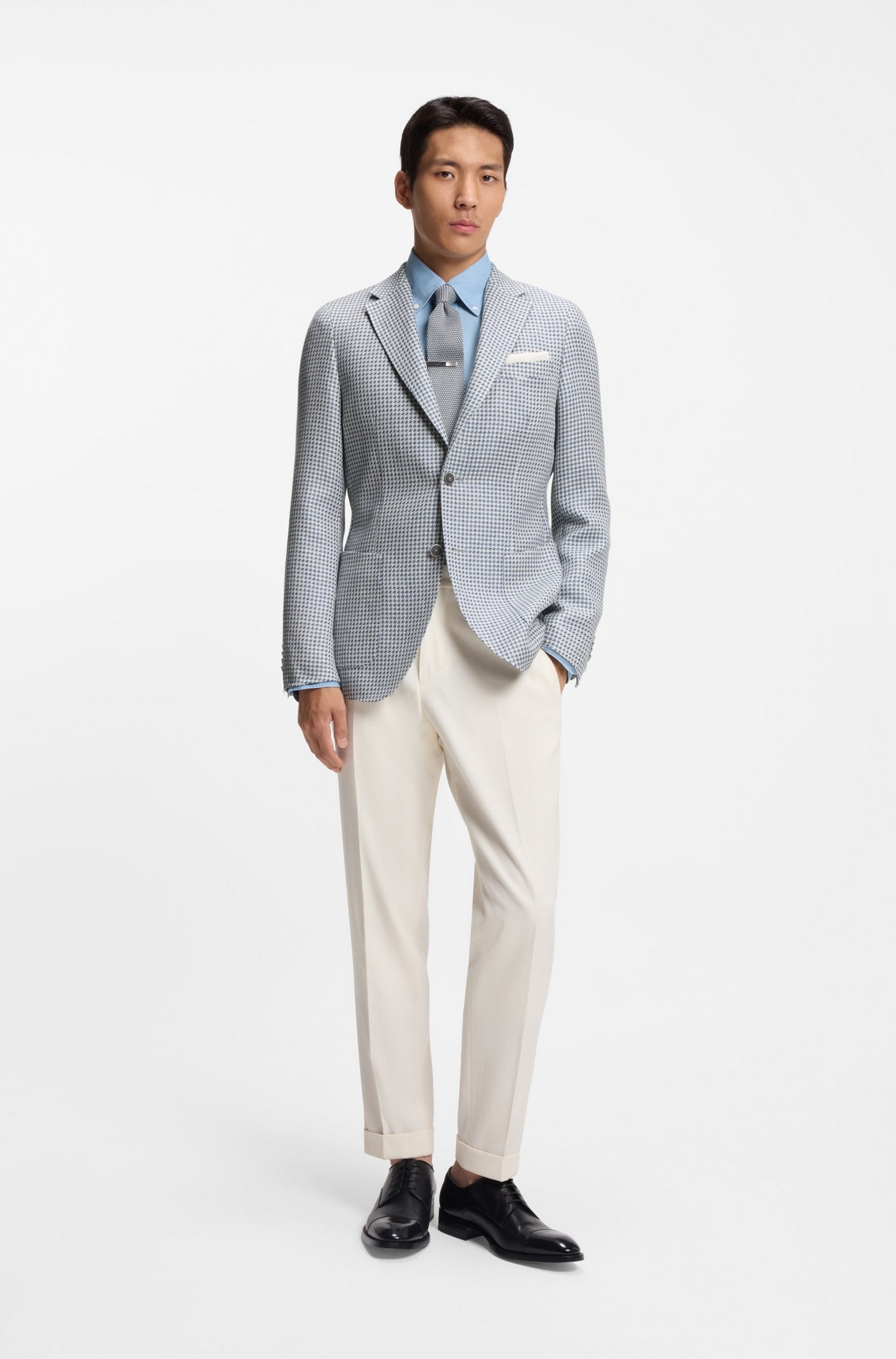 Create effortless formal looks with natural comfort in this BOSS Menswear suit jacket. Slim-fit suit in cotton, linen and silk