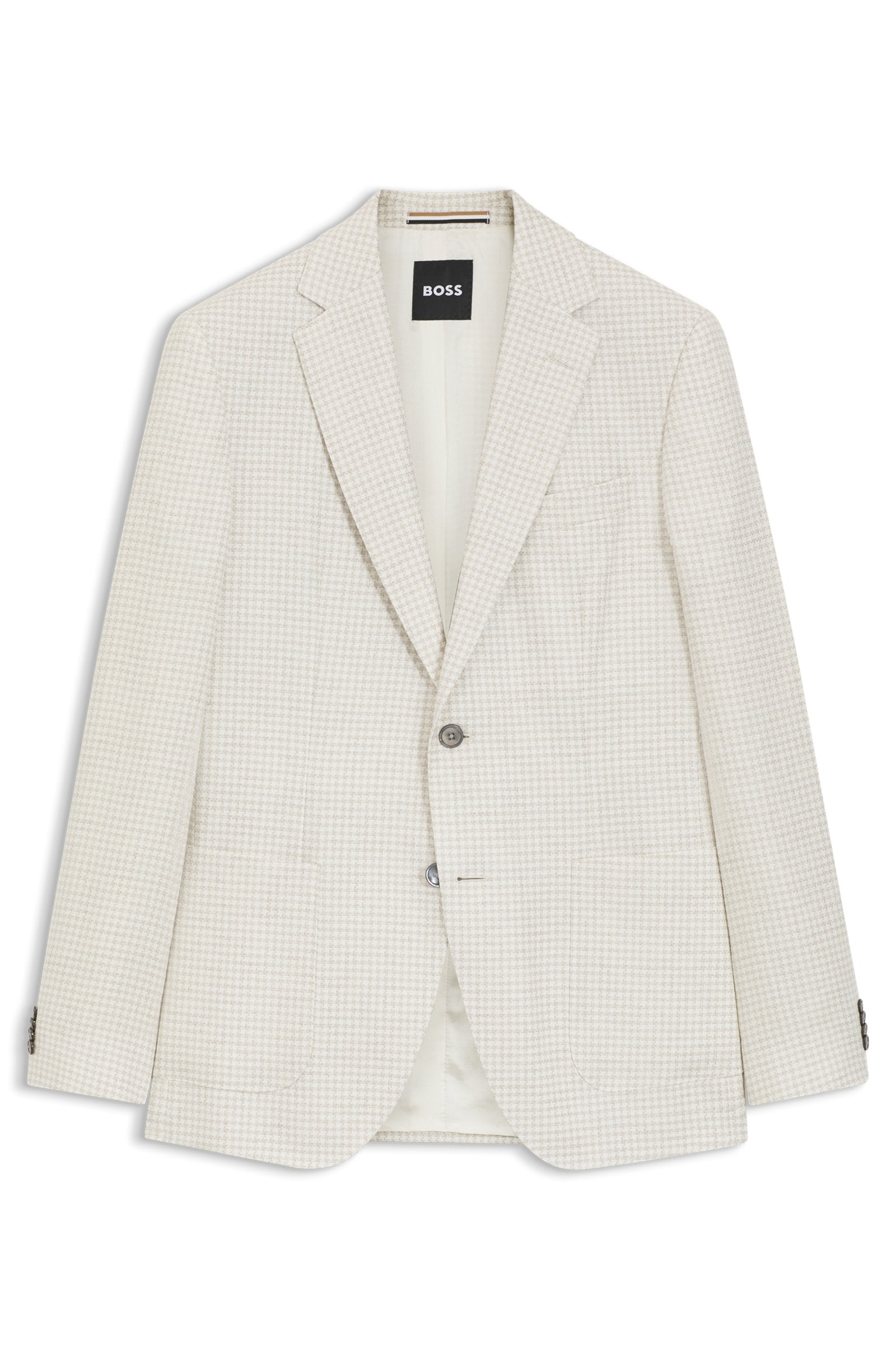 Cut to a streamlined fit, this BOSS Menswear blazer is crafted in a blend of linen, cotton and silk. Woven with a subtle check pattern.