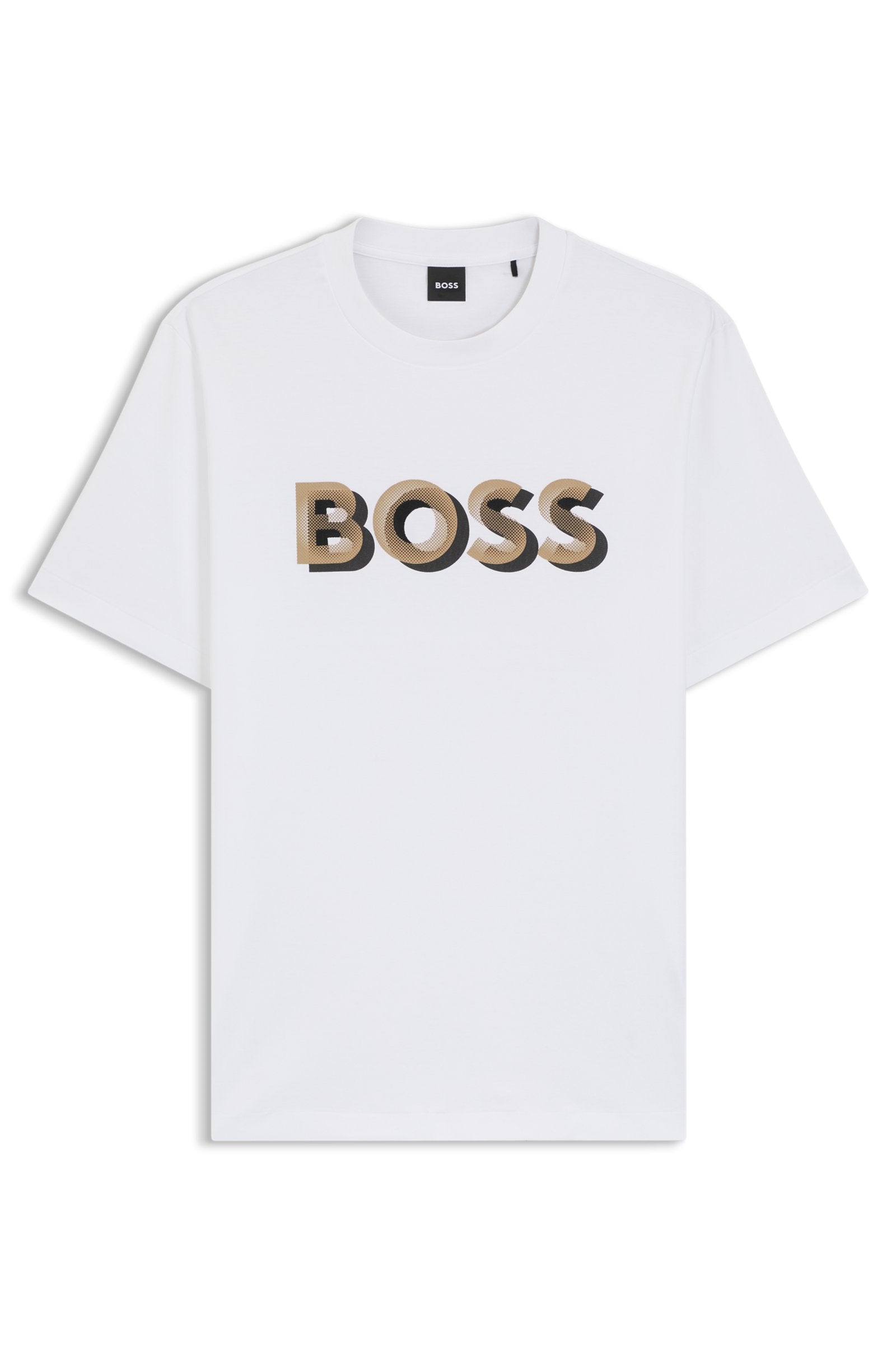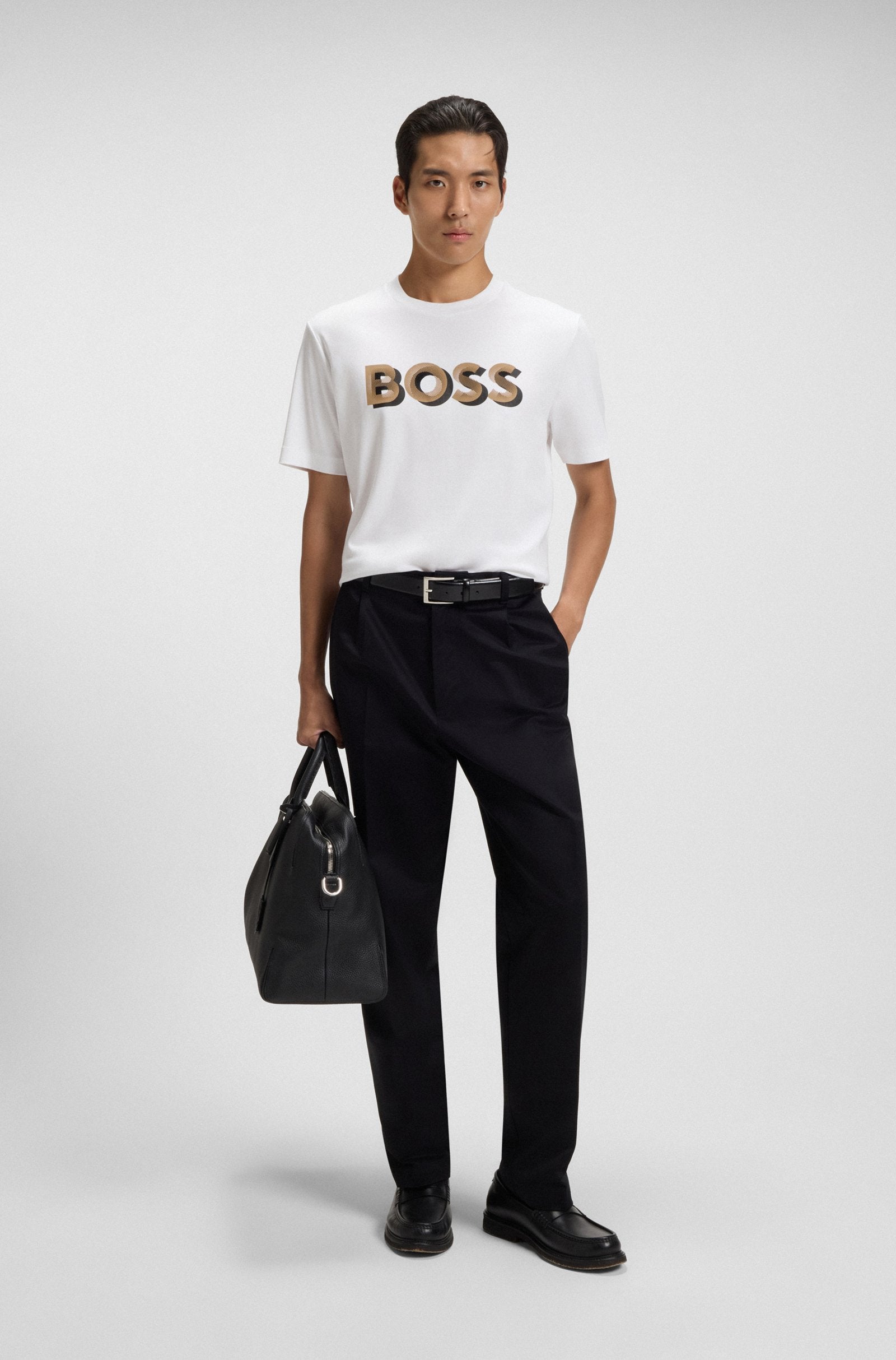 In mercerized cotton for elevated softness, this BOSS Menswear T-shirt has high-impact logo artwork to update your casual options. Timeless regular fit.