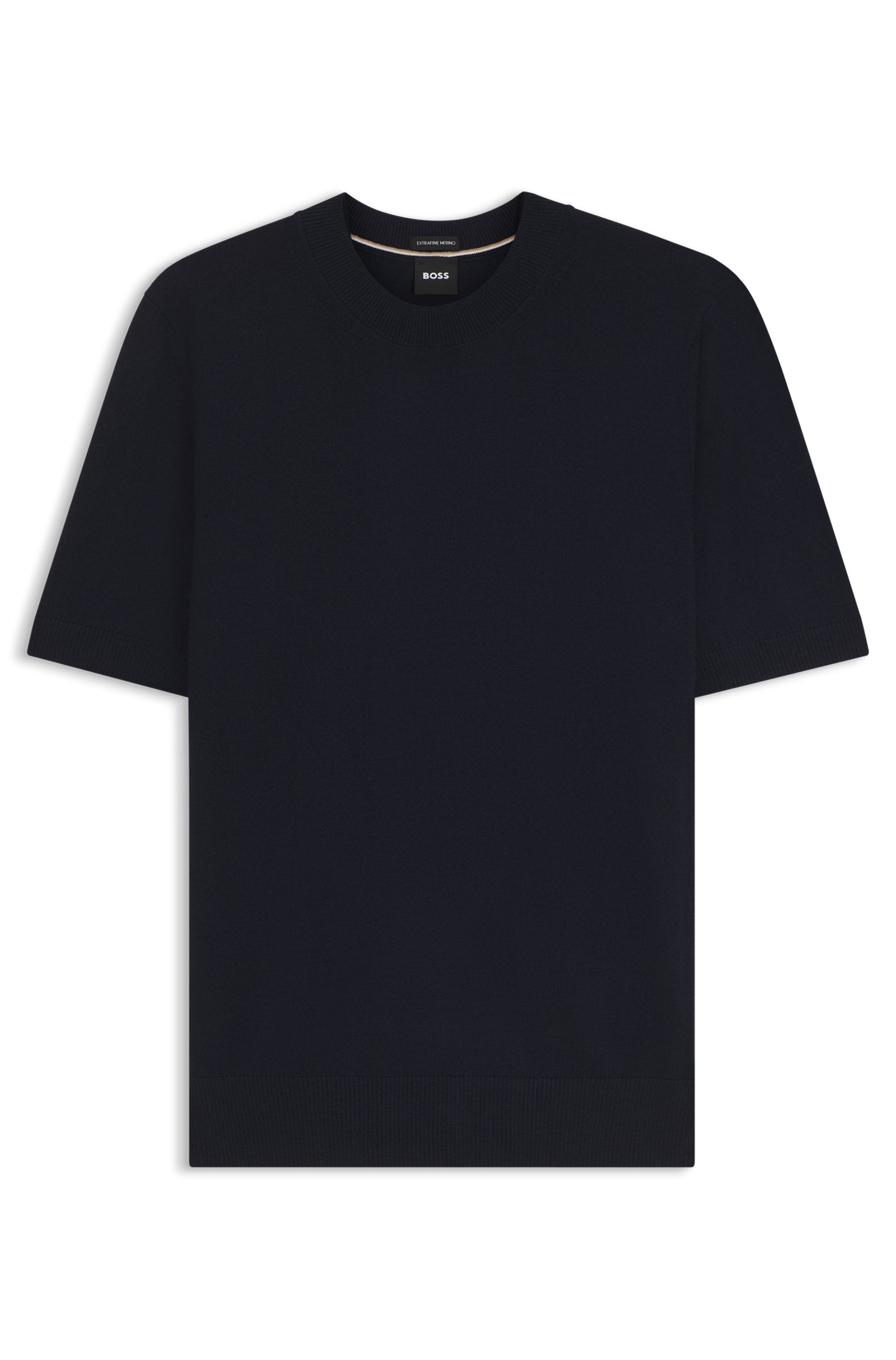 Knitted in super-fine merino wool, this BOSS Menswear sweater is the perfect foundation for any occasion. Natural temperature control. Short sleeves. Regular fit.