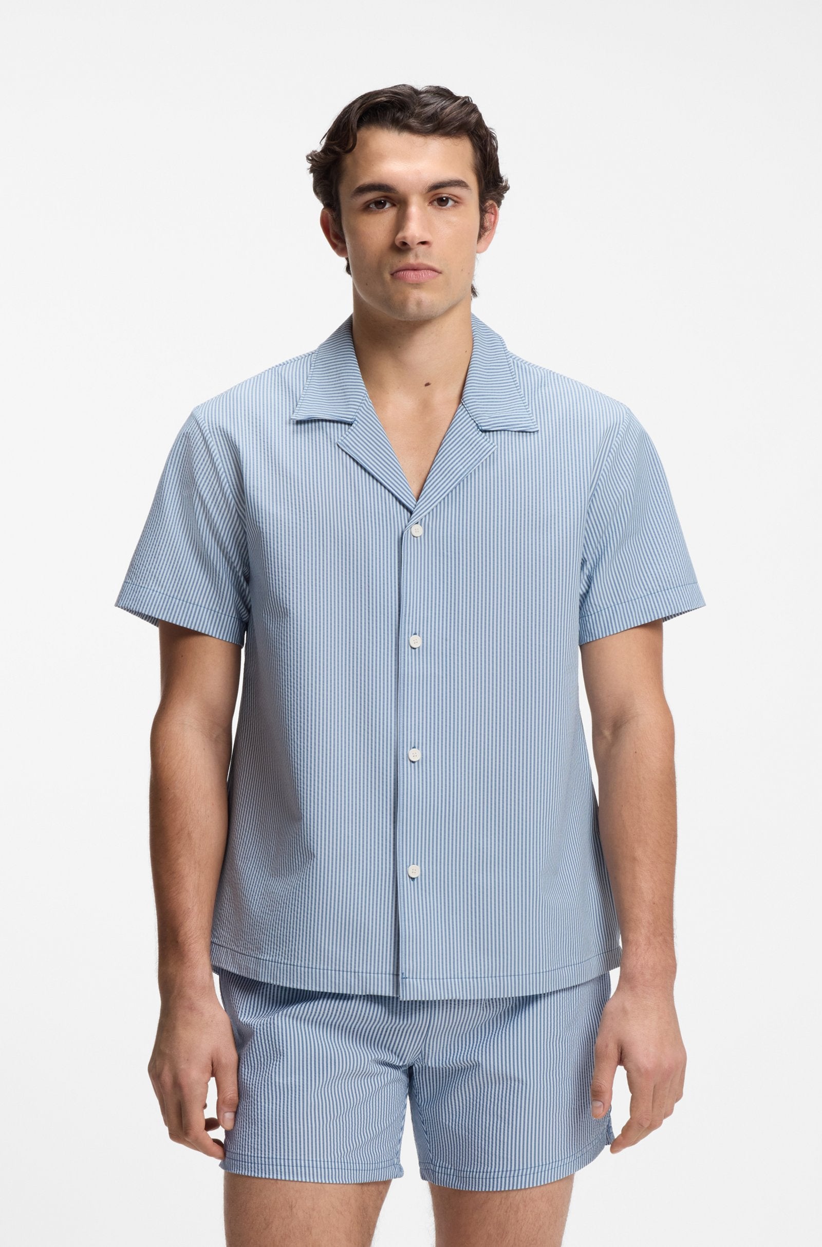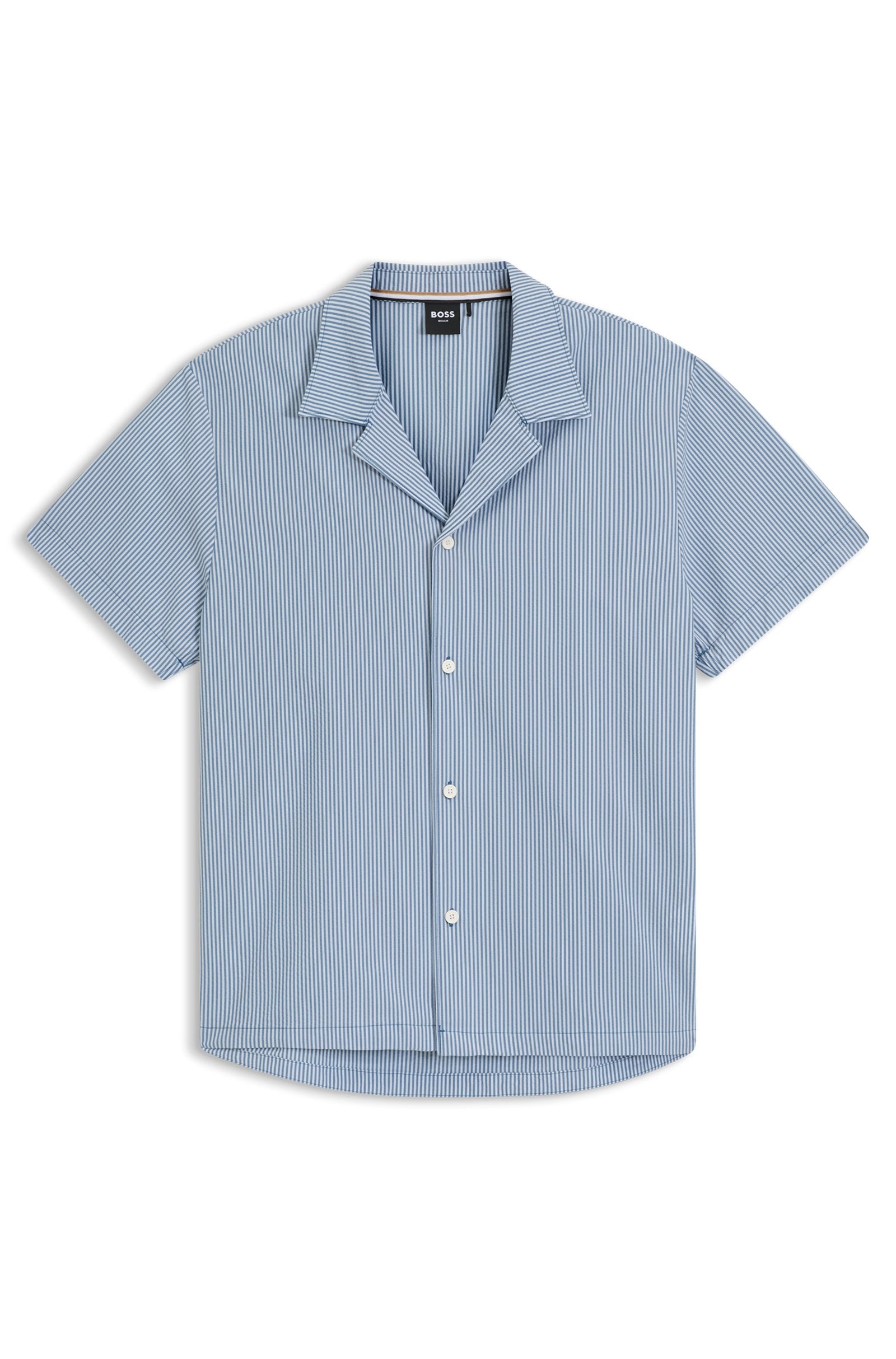 Ideal for beachwear, this BOSS Menswear shirt is crafted in summery seersucker fabric.