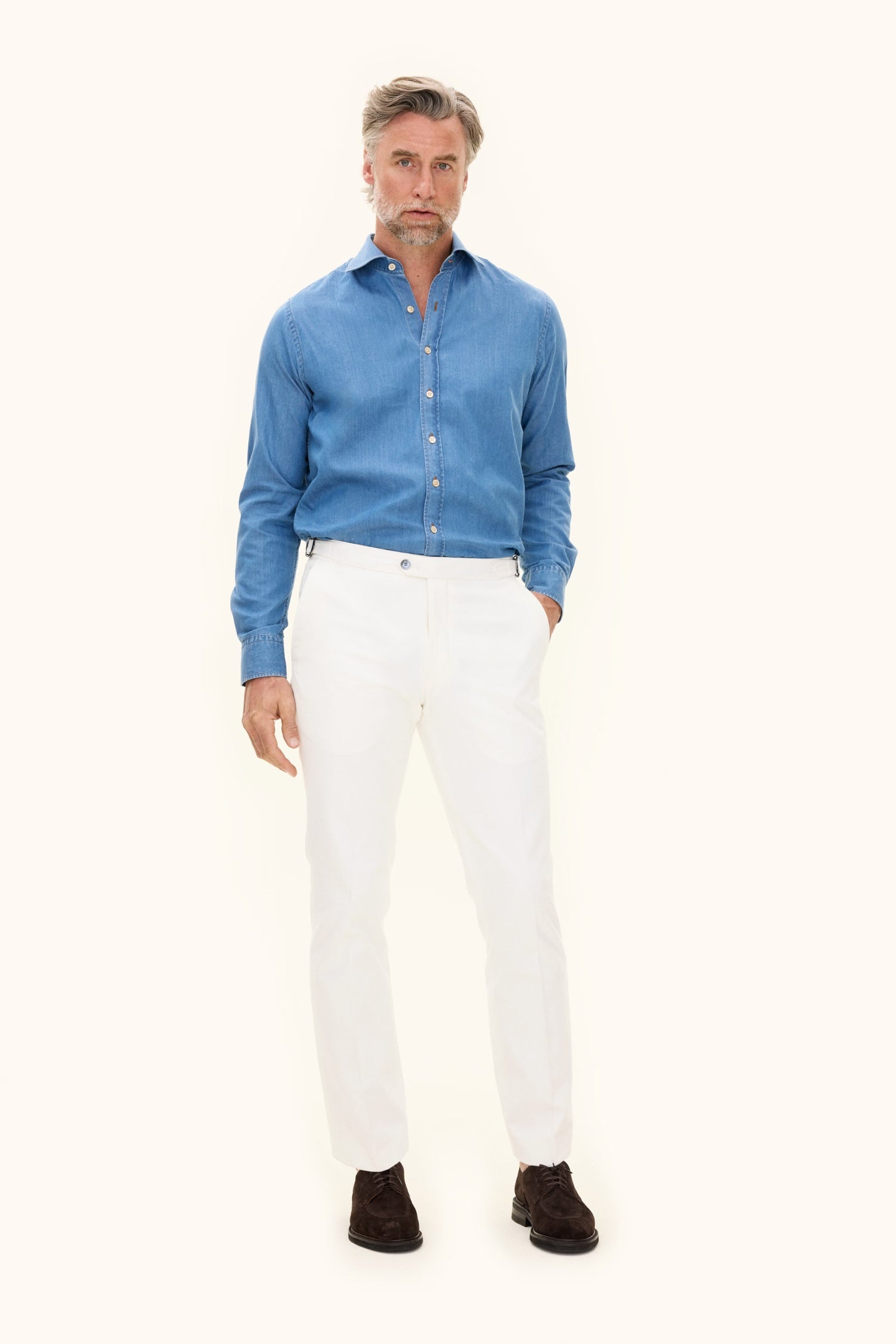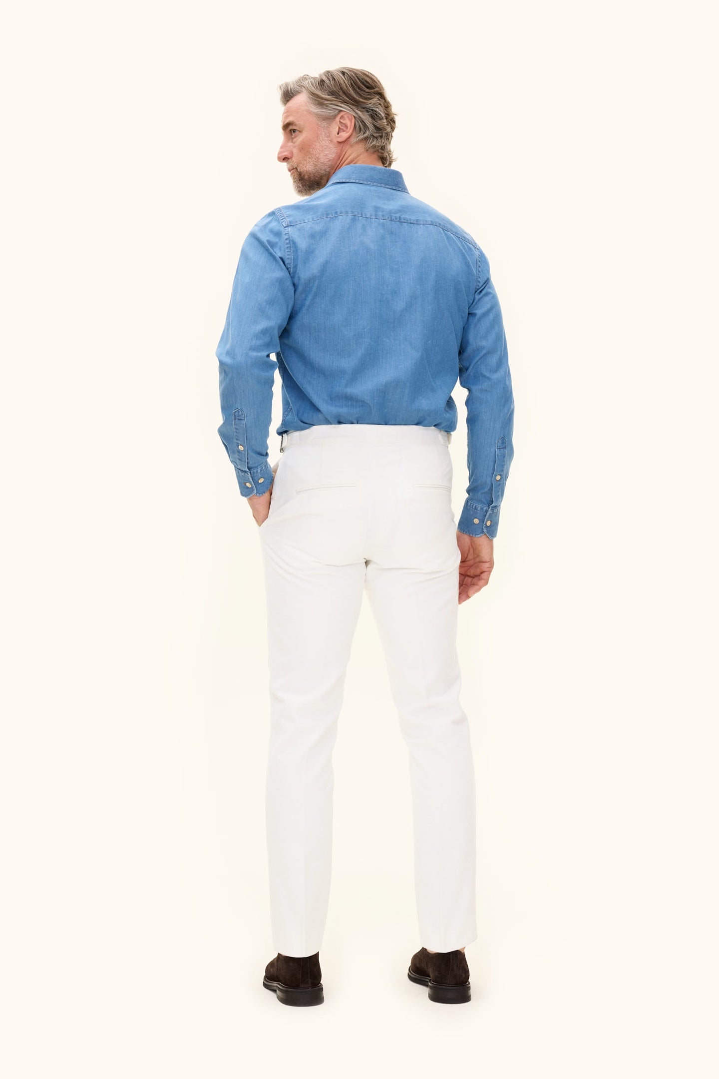 These 100% cotton trousers are woven in twill with a brushed finish for a soft feel. With a regular fit and high waist, they're a versatile wardrobe staple – just as stylish with a blazer as they are with a more casual top.