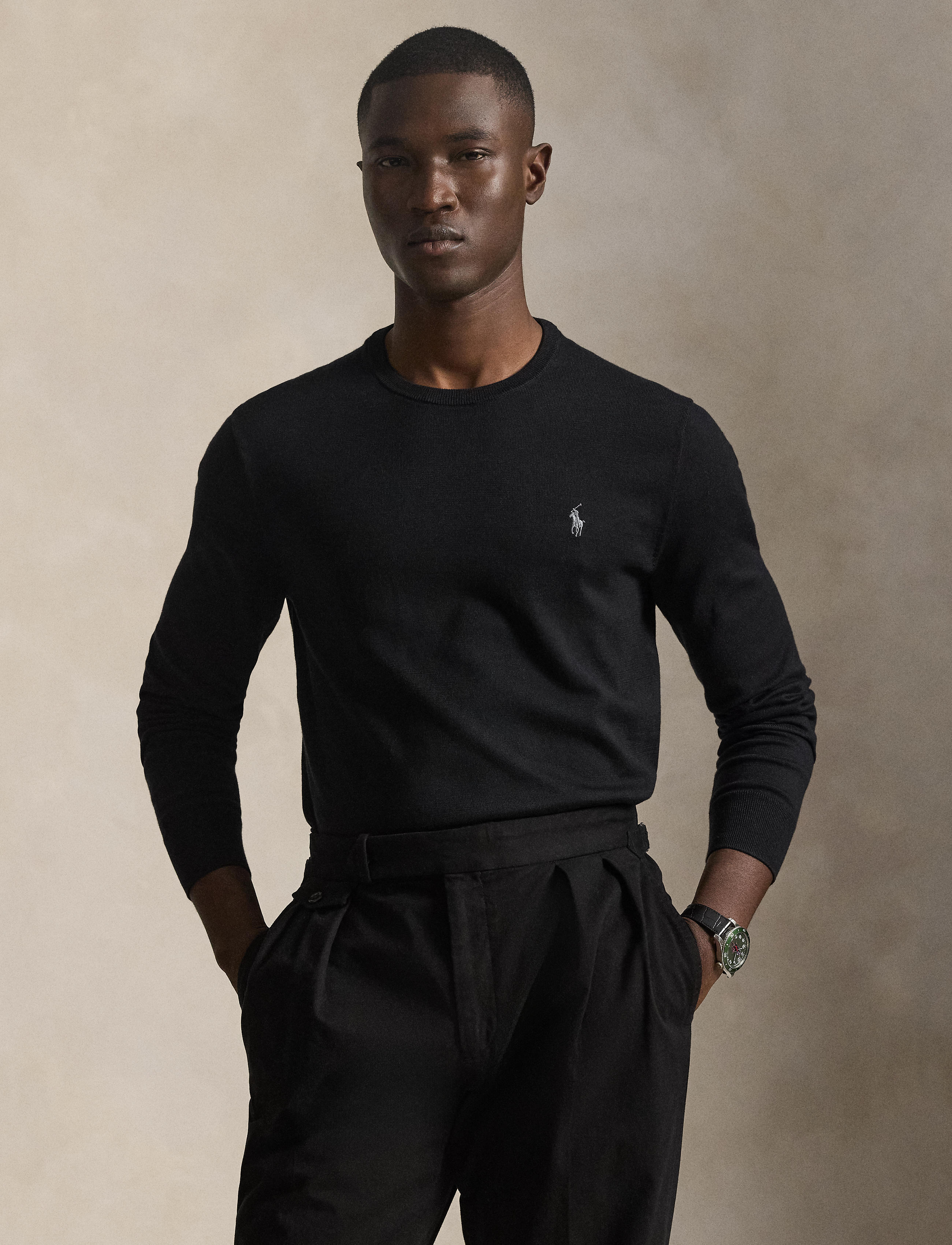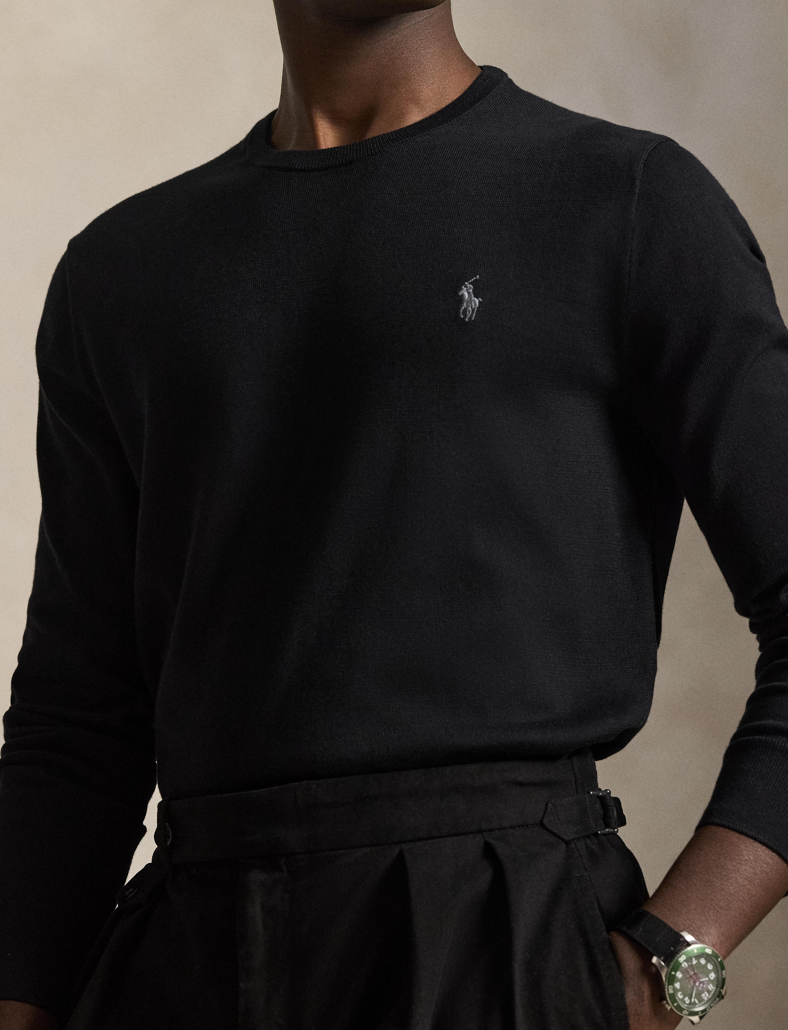 - Signature embroidered pony at the left chest.