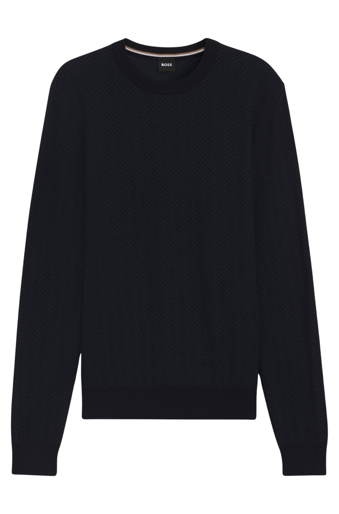 A timeless classic, this BOSS Menswear sweater is detailed with a herringbone structure for easy elegance. Crafted in virgin wool blended with cotton.