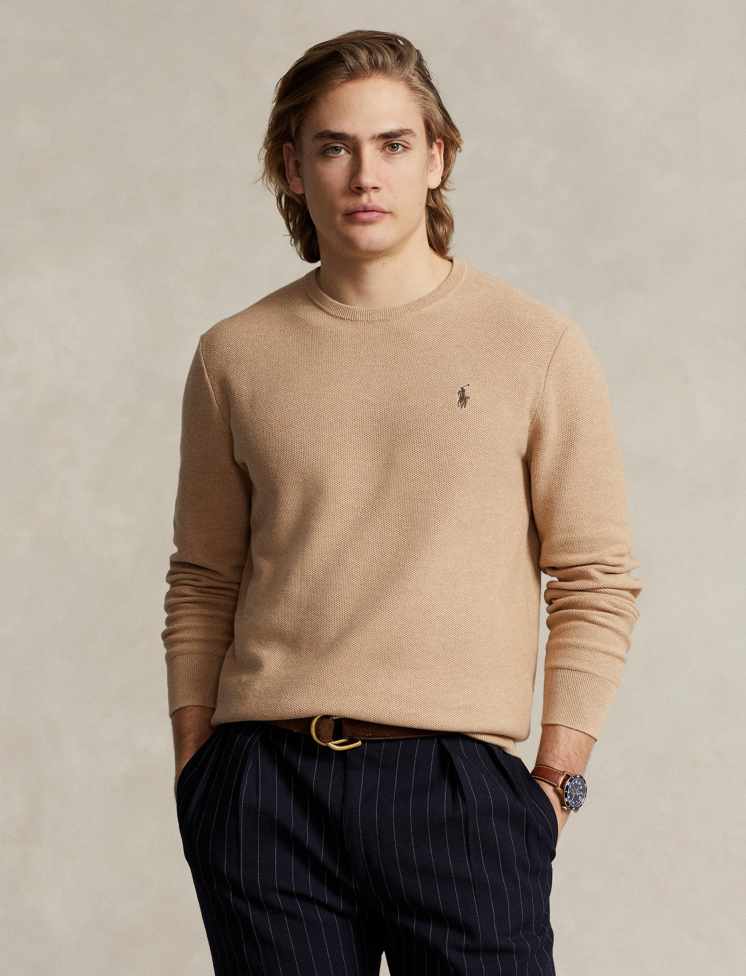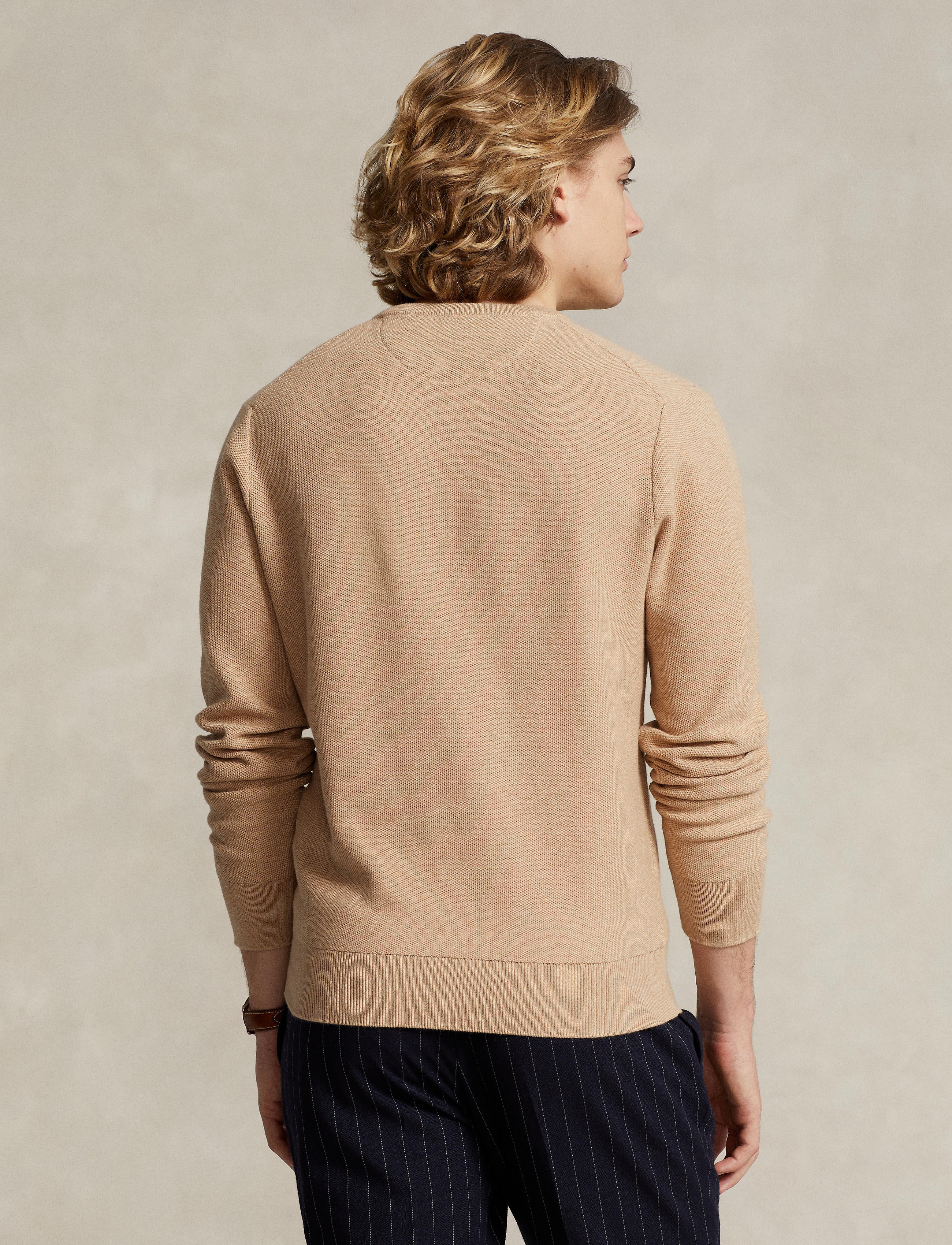 We've reinterpreted our iconic mesh fabric with soft cotton yarn to create this crewneck jumper. Ralph Lauren partners with Better Cotton™ to improve cotton farming globally. Better Cotton trains farmers to use water efficiently, care for the health of soil and natural habitats, reduce use of the most harmful chemicals and implement the principles of decent work.