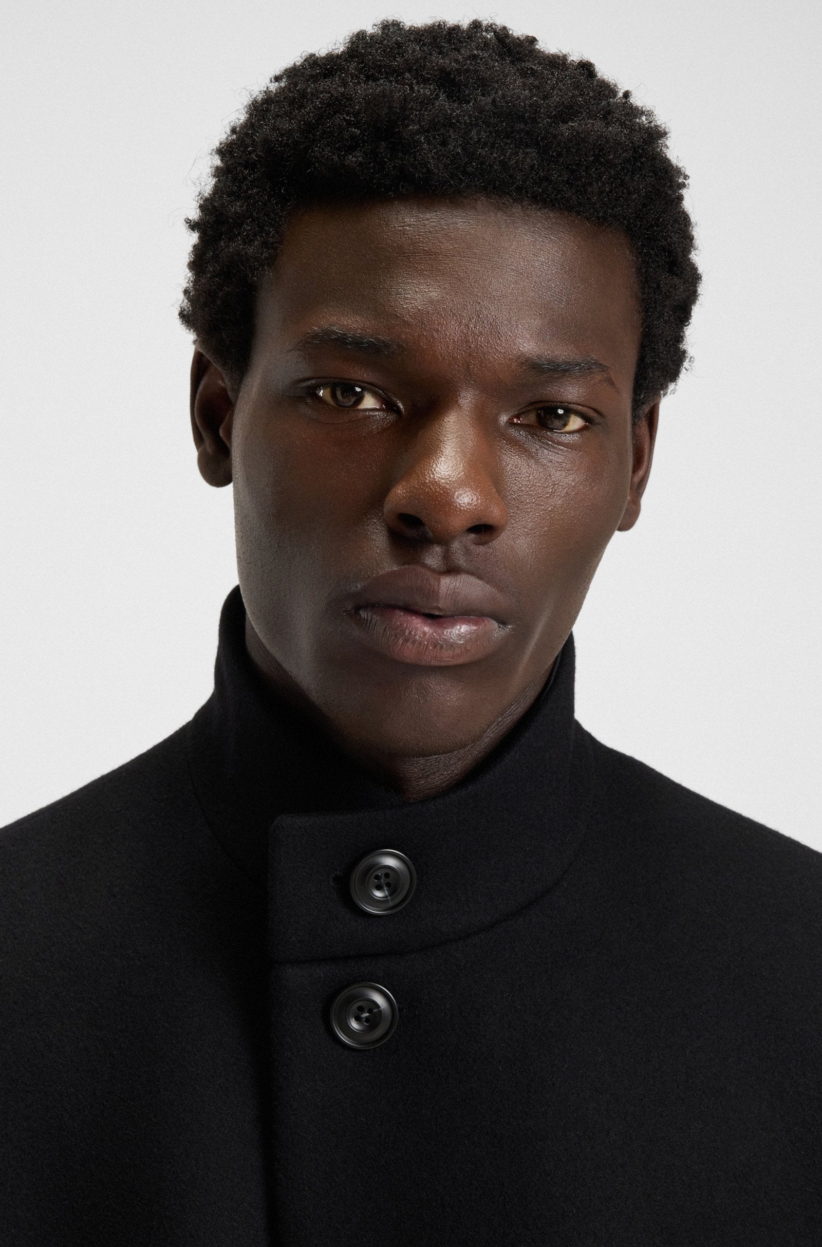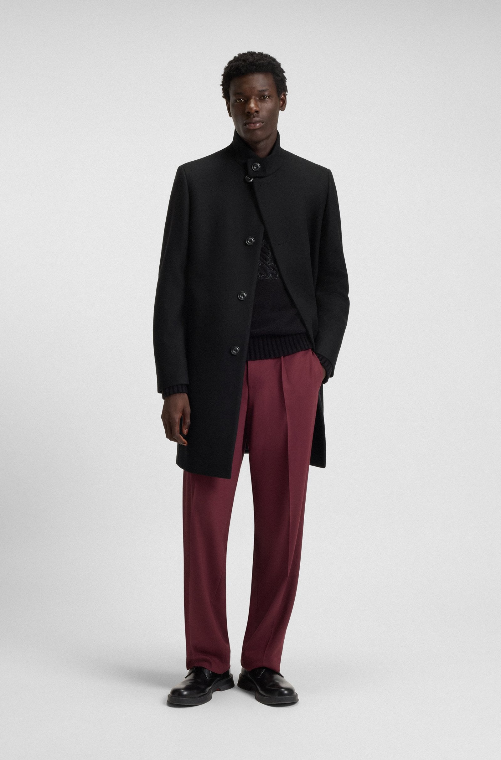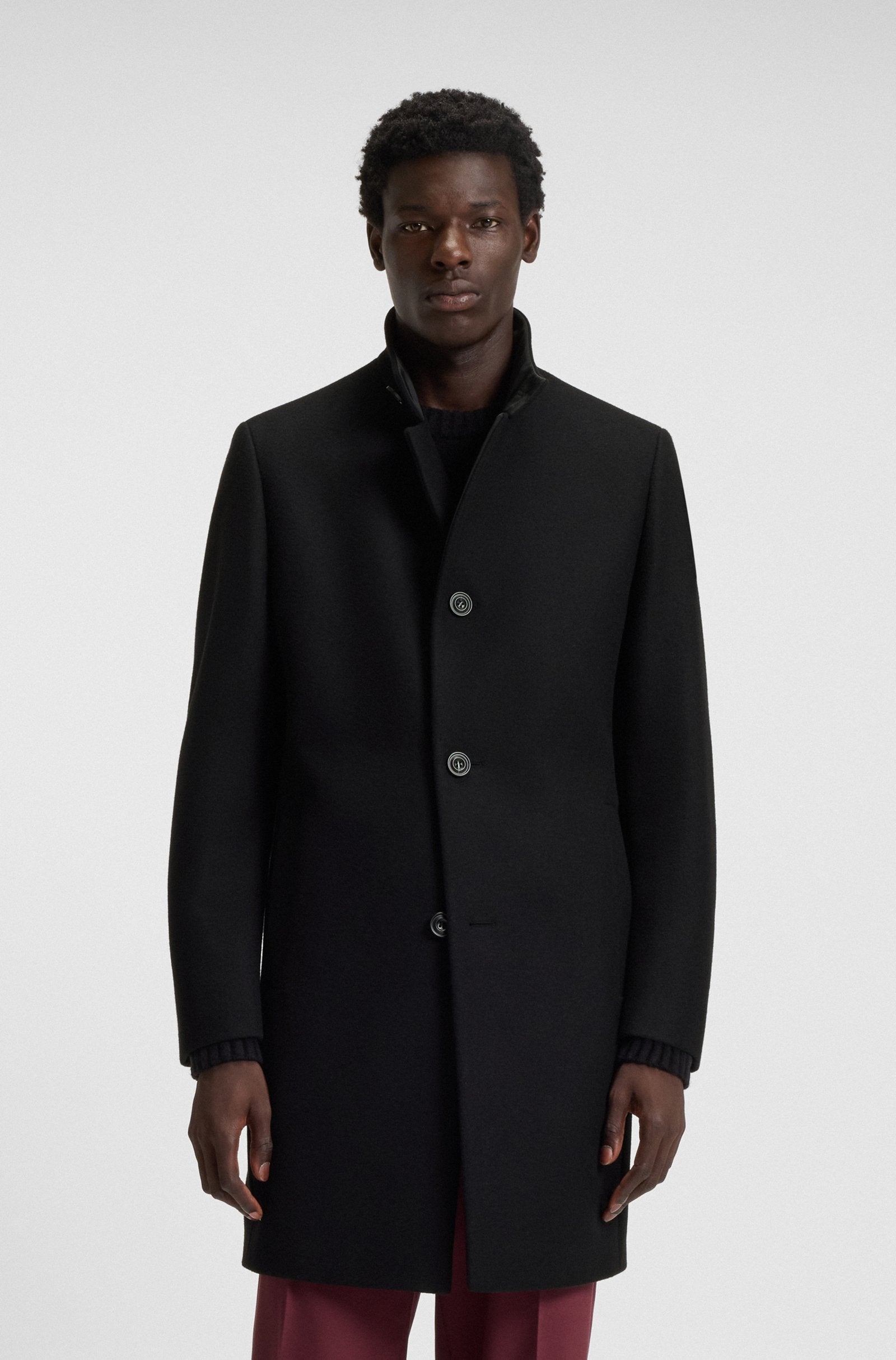 In an easy regular fit, this HUGO Menswear coat is ideal for layering over tailoring. Crafted in a distinctive wool-rich blend.