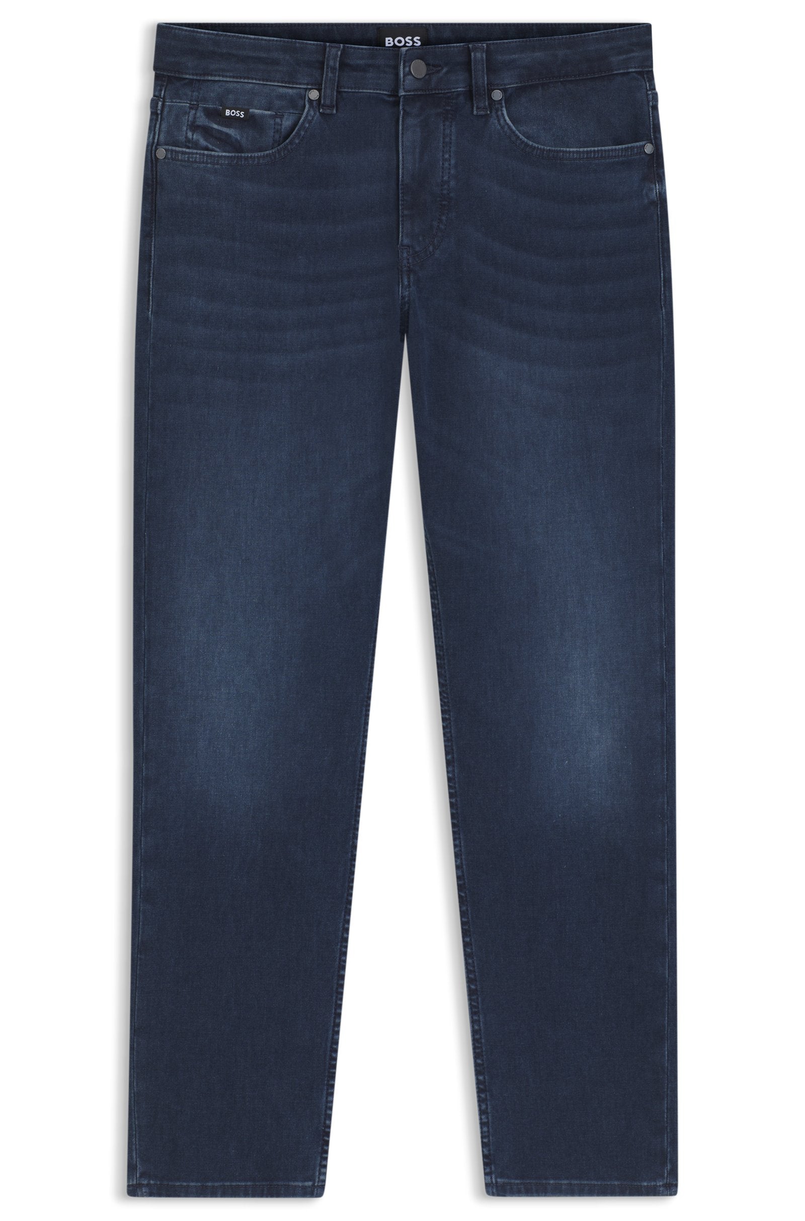 Elevate your casuals with the cozy stretch-cotton knit of these blue BOSS Menswear jeans. Cut to a slim fit. Double B monogram trim.