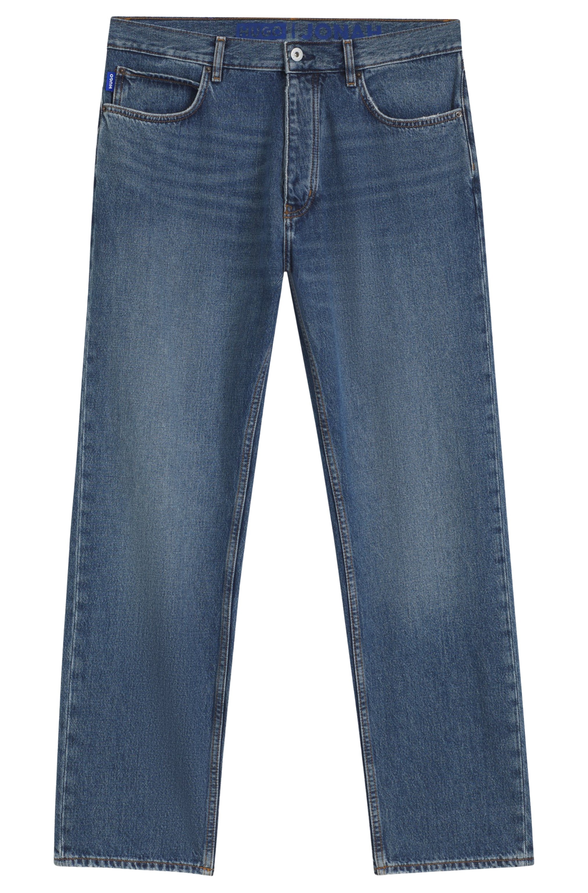 Authentic jeans cut to a straight fit with a regular rise in stonewashed denim with a blue color by HUGO Menswear.
