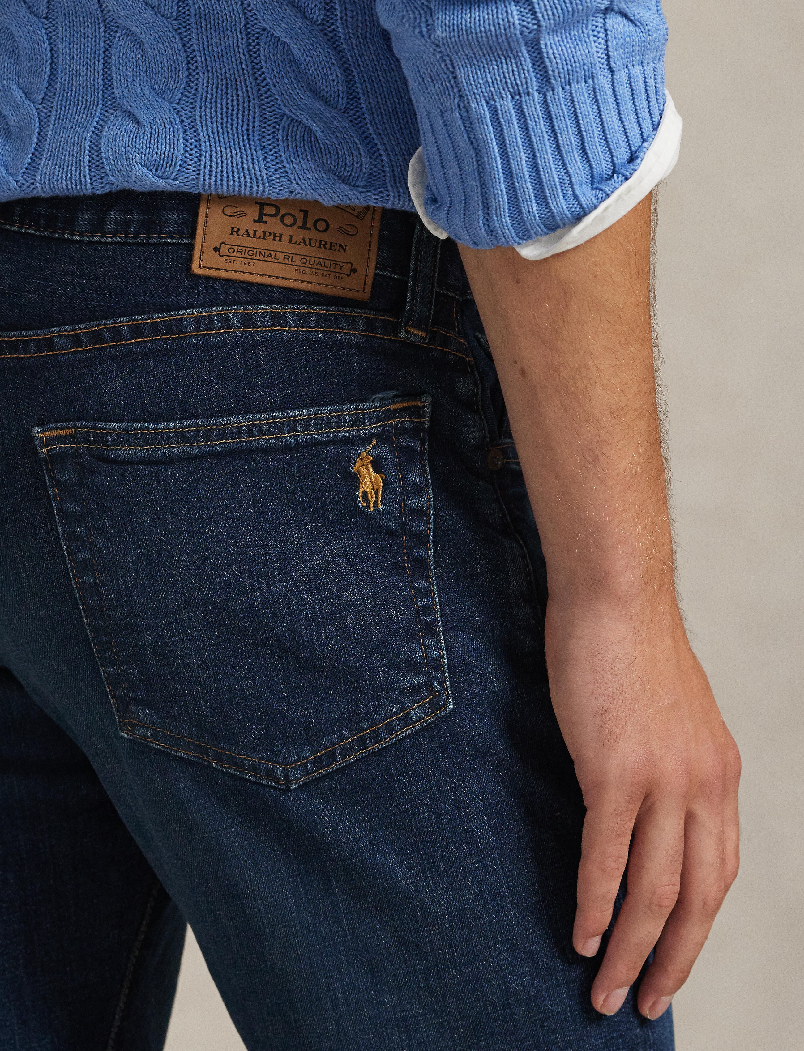 The slim-leg Sullivan features a regular rise and a trim fit through the seat, the thigh, and the knee. This pair is crafted with indigo-dyed denim that’s woven with a hint of stretch for enhanced comfort. At the back, it is intricately embroidered with the iconic Polo Pony.