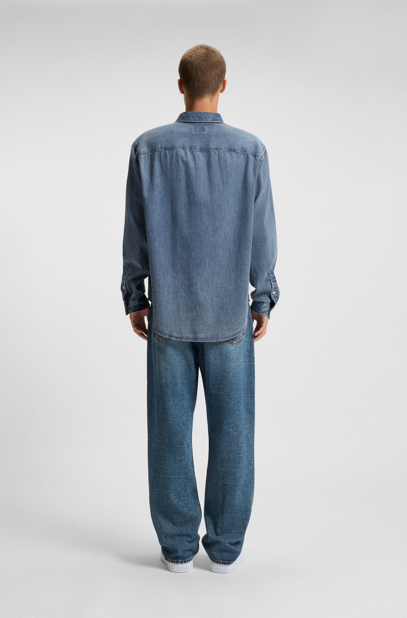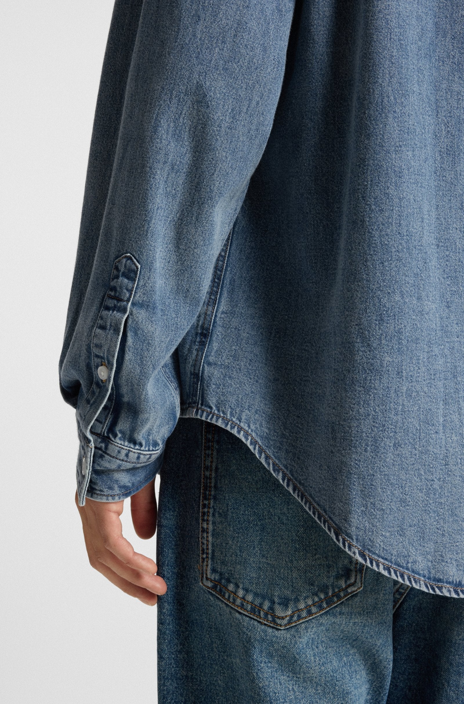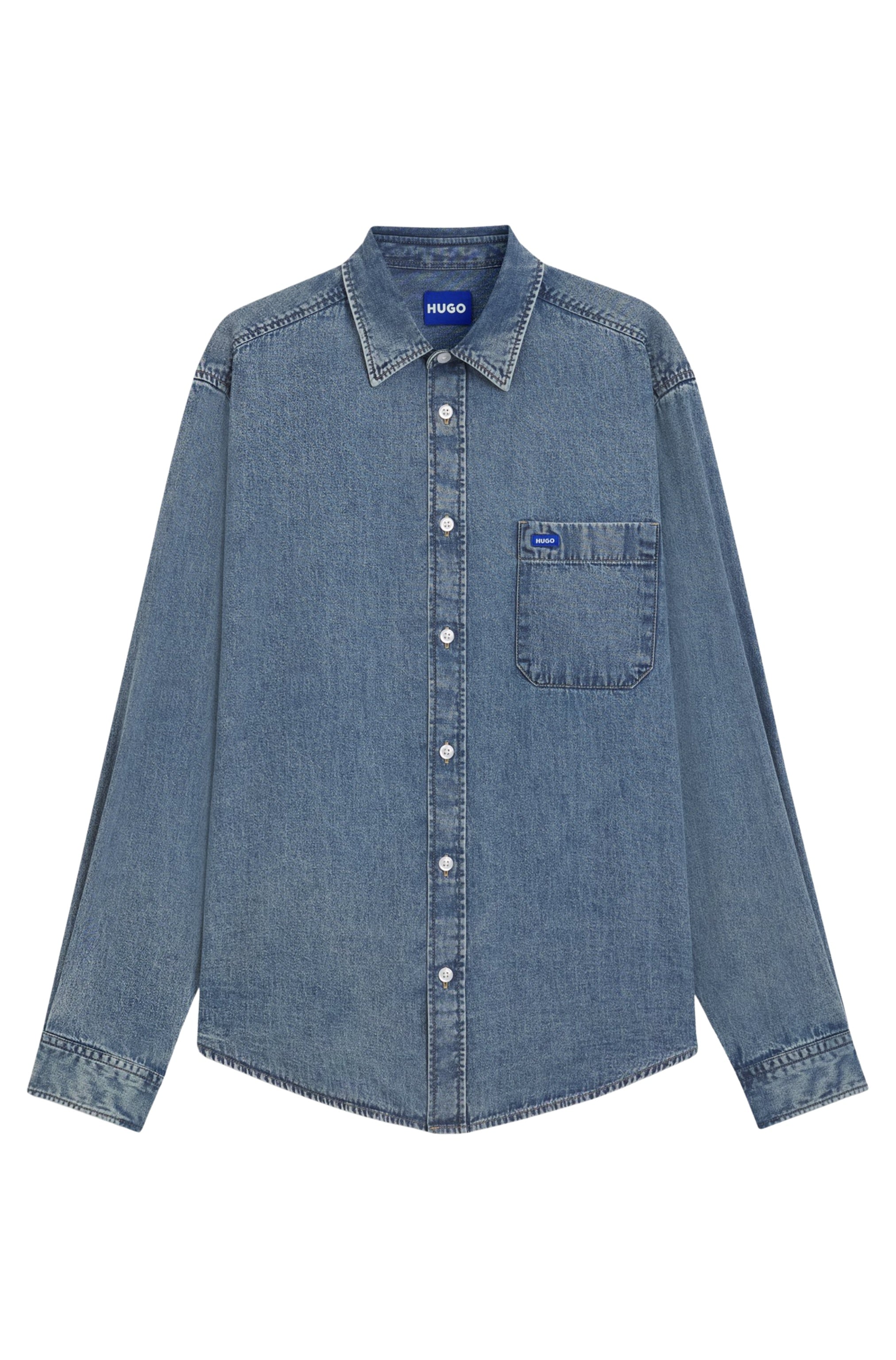Create effortless casual looks with the loose fit and blue denim of this HUGO Menswear shirt. Trimmed with a subtle logo label.