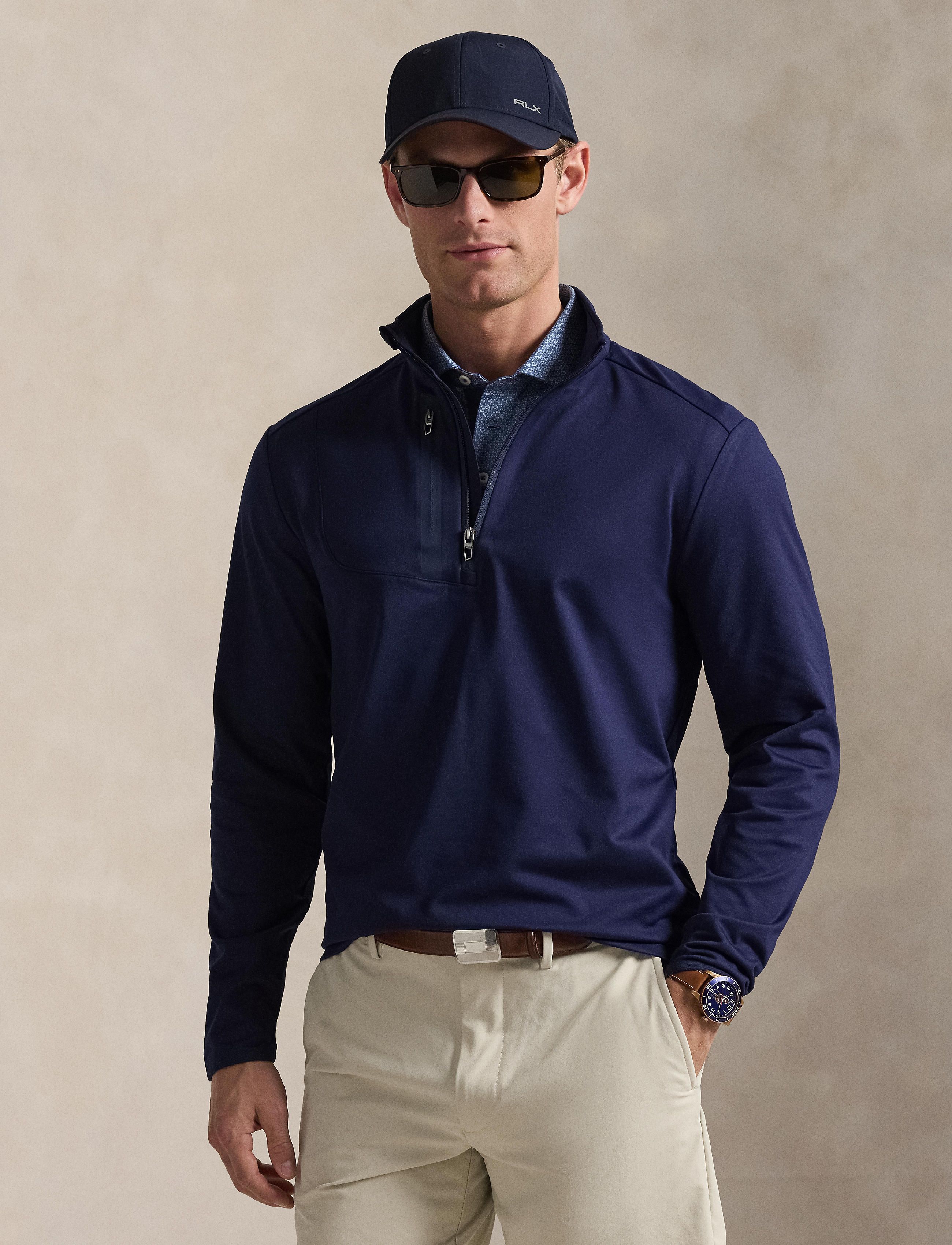 • "RLX" label at the center back of the neck.