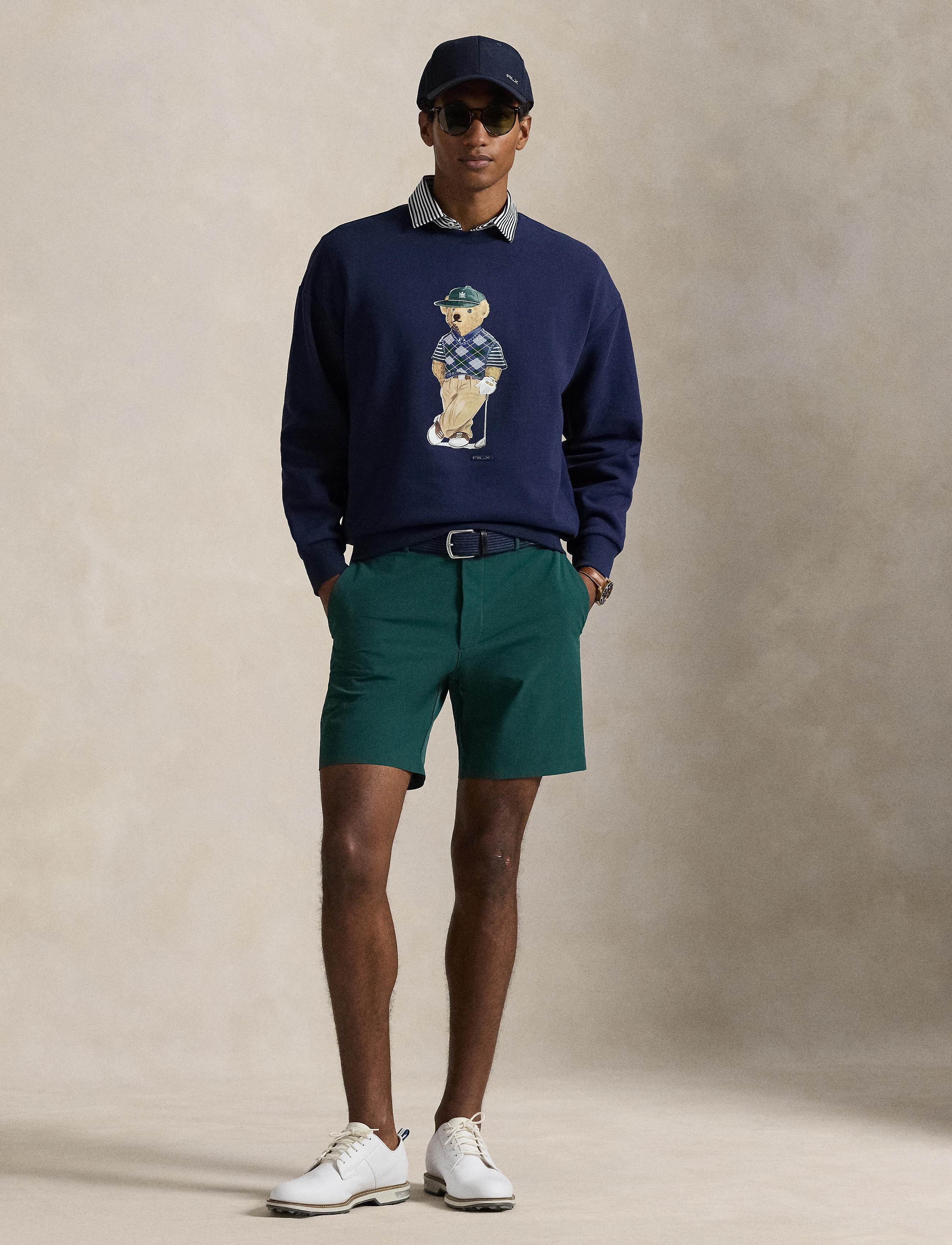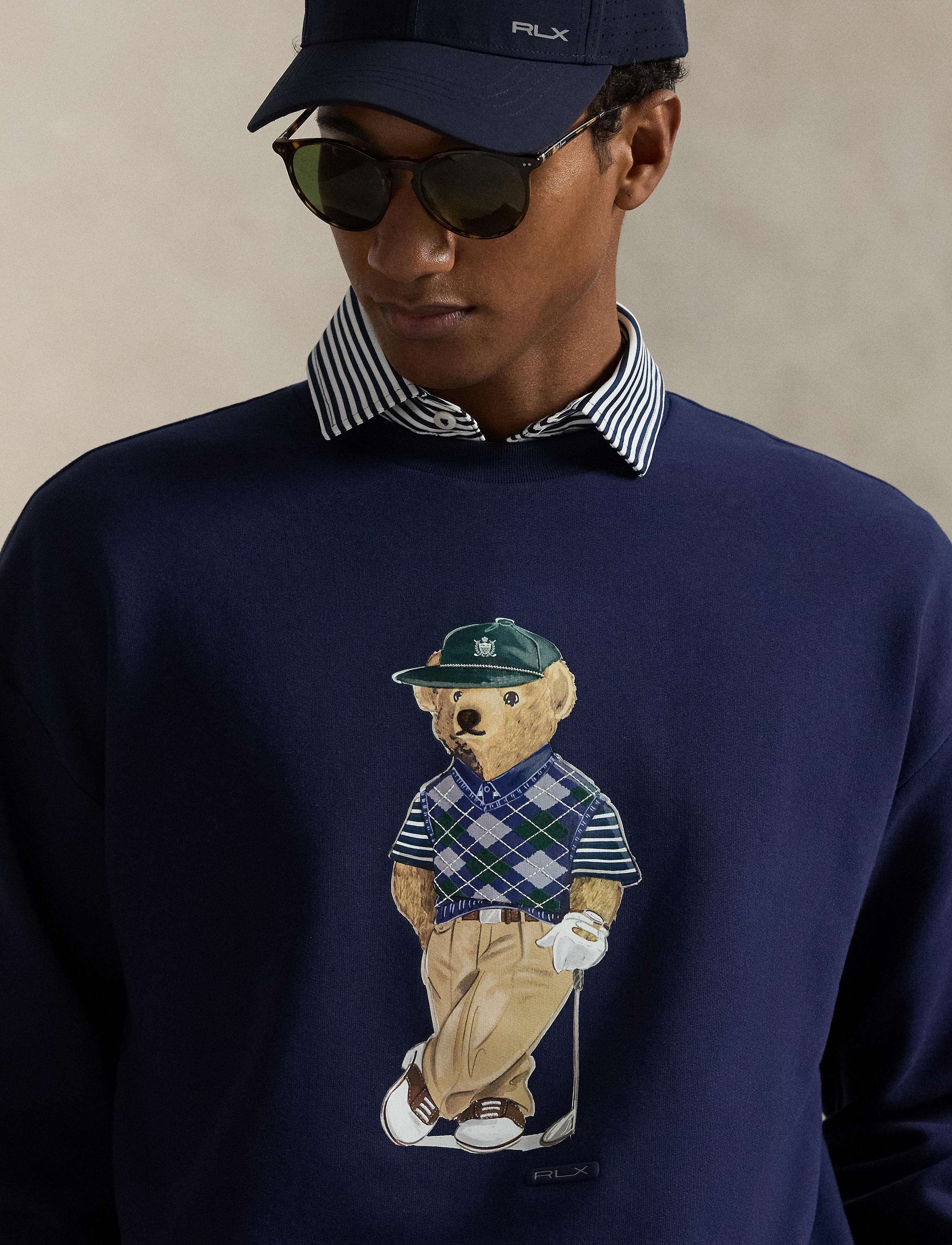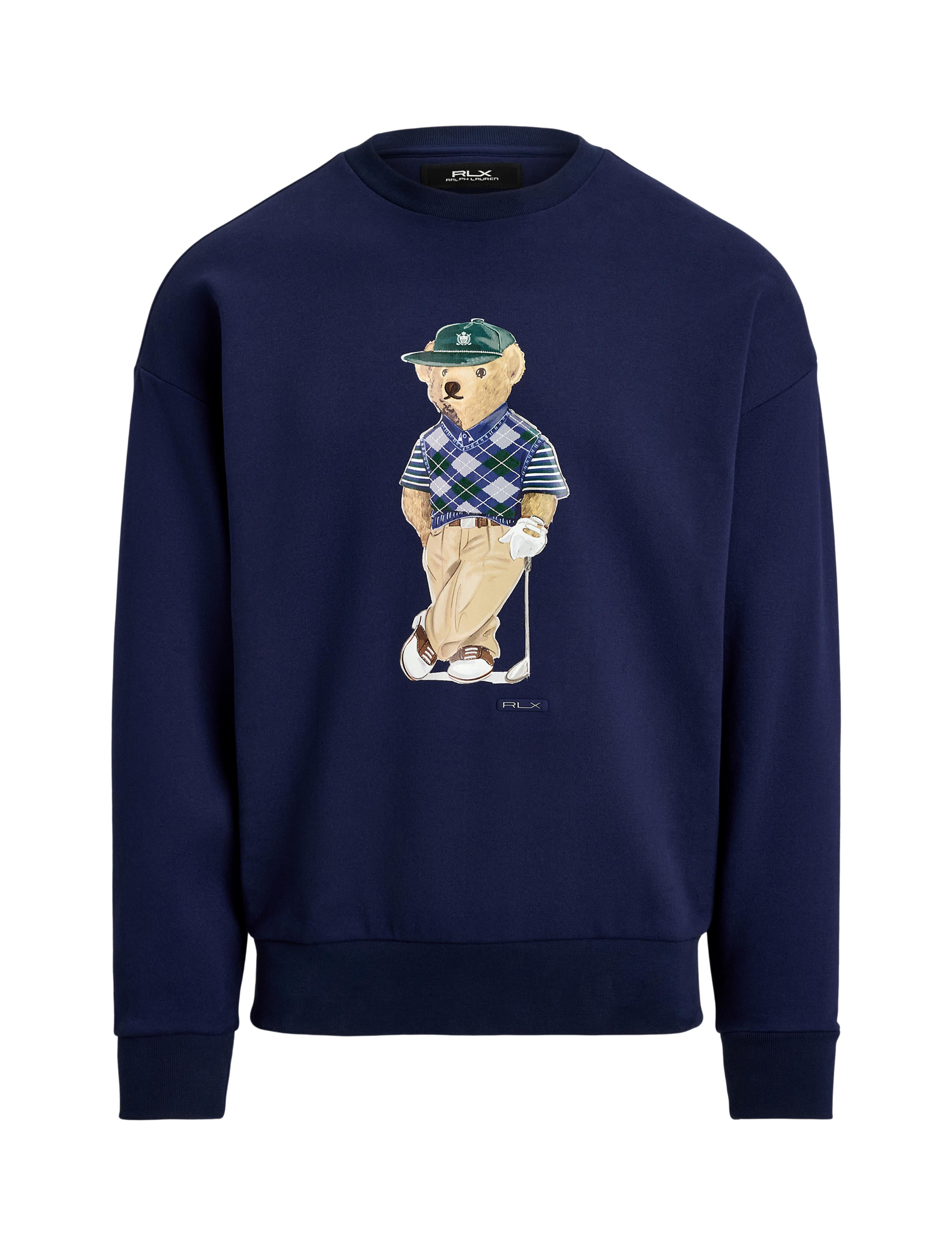- Polo Bear printed at the center front with embroidered details. Silicone “RLX” tab below the bear.