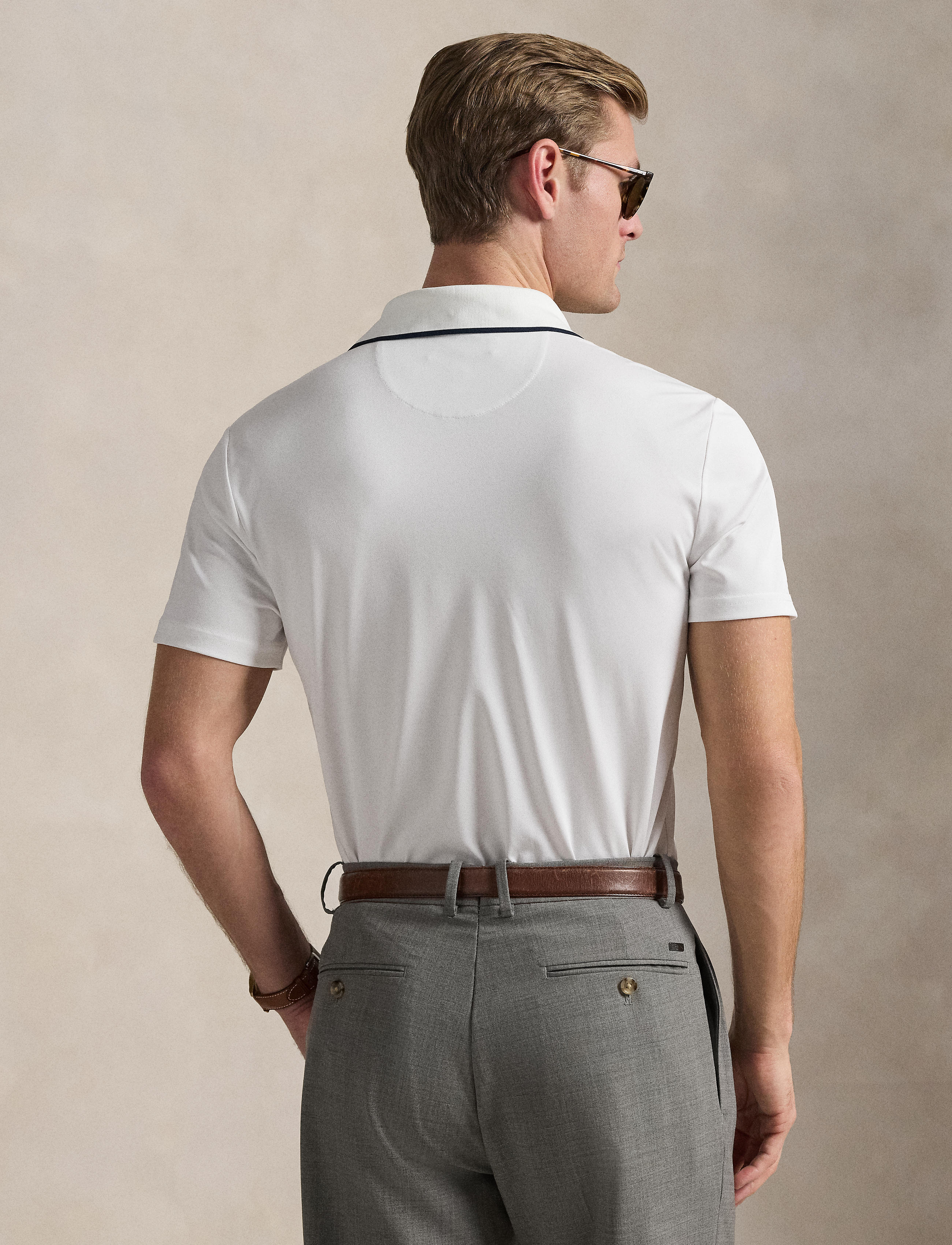 Crafted from stretch piqué, this Polo shirt wicks away moisture for all-day-long comfort. It is embroidered with signature details, including our beloved mascot, the Polo Bear, and the RLX logo.