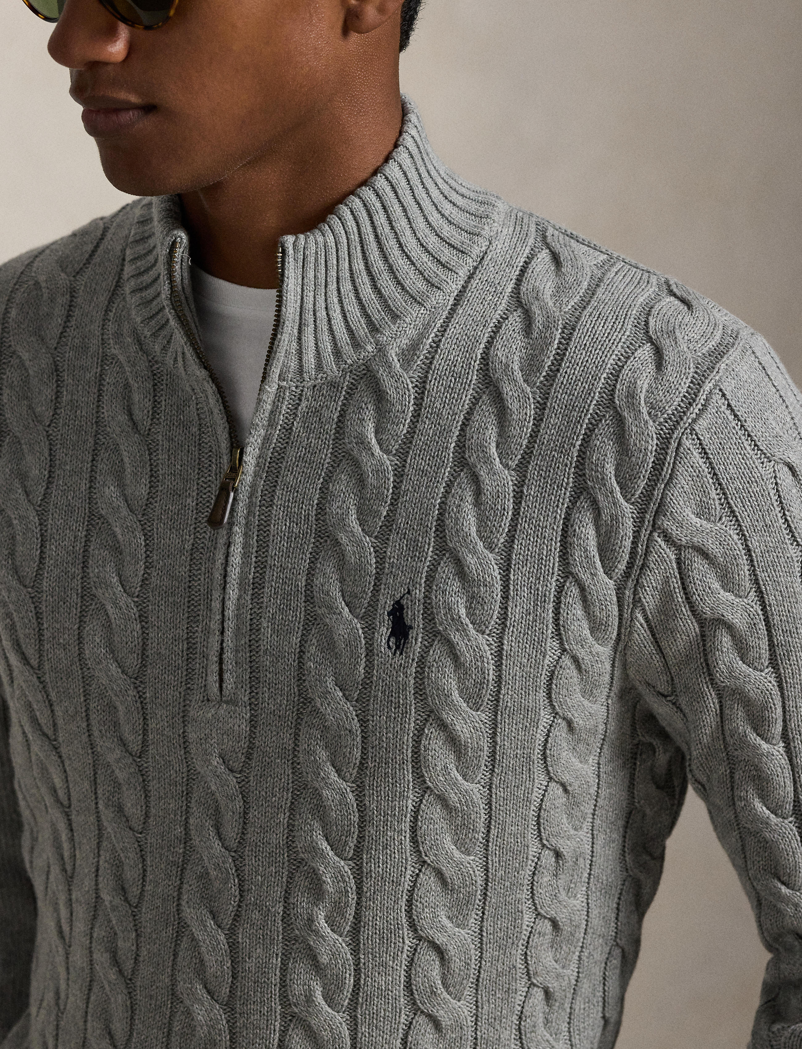 This chunky-knit cotton layer features our iconic cable design and signature embroidered Pony.