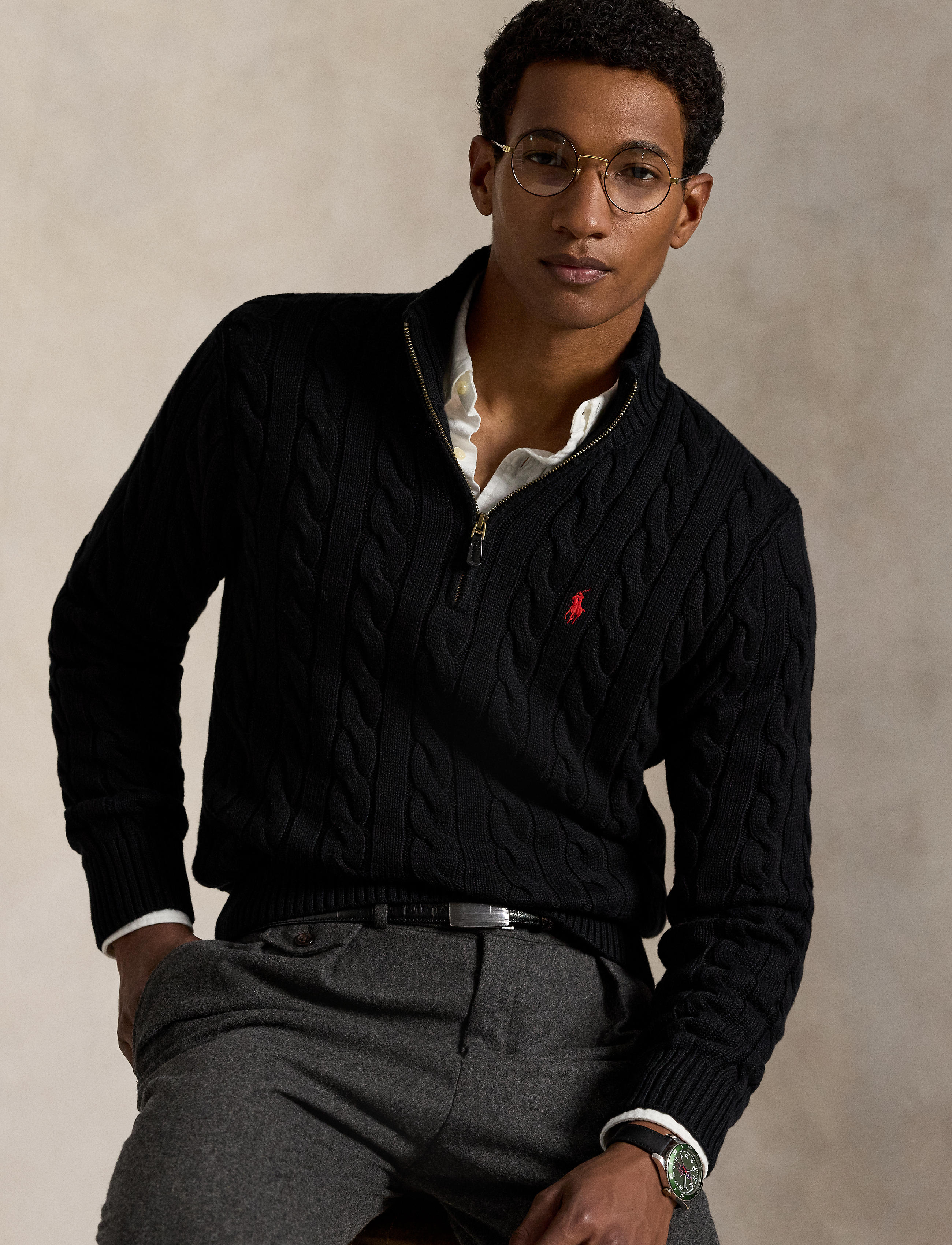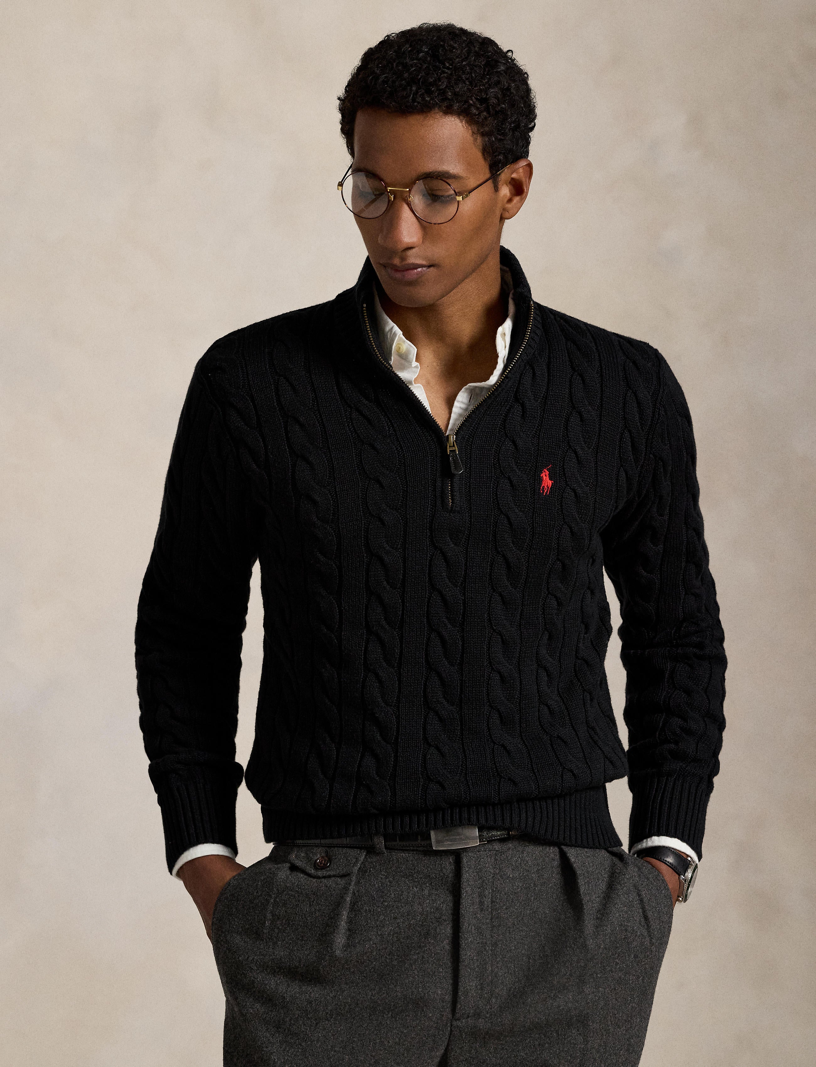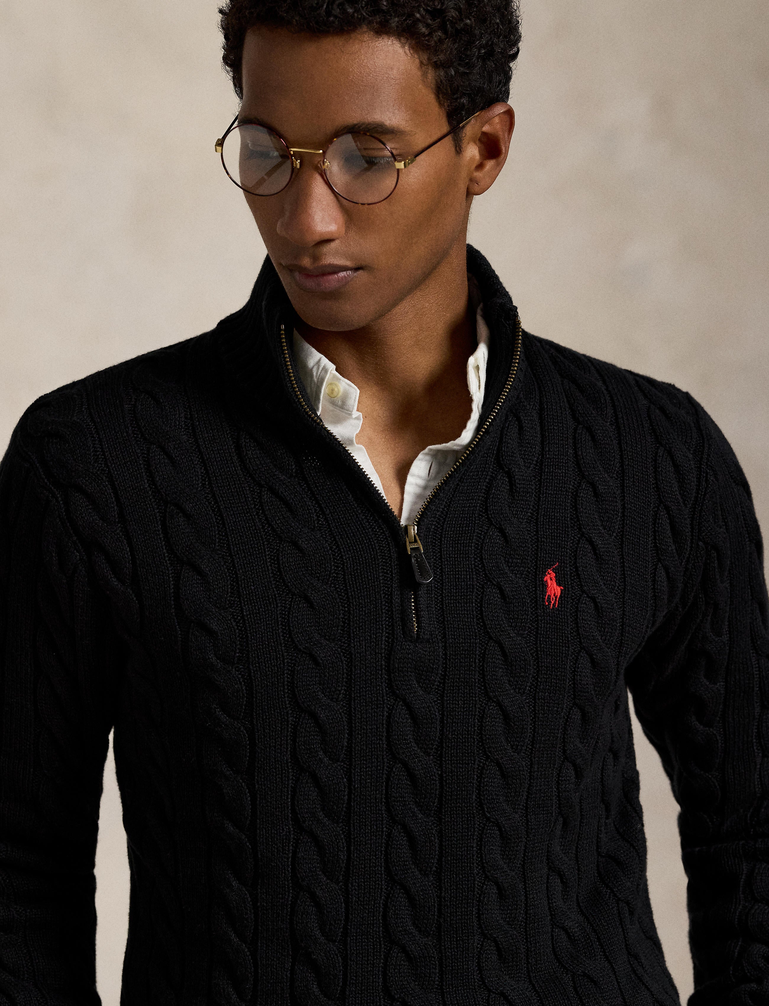 This chunky-knit cotton layer features our iconic cable design and signature embroidered Pony.