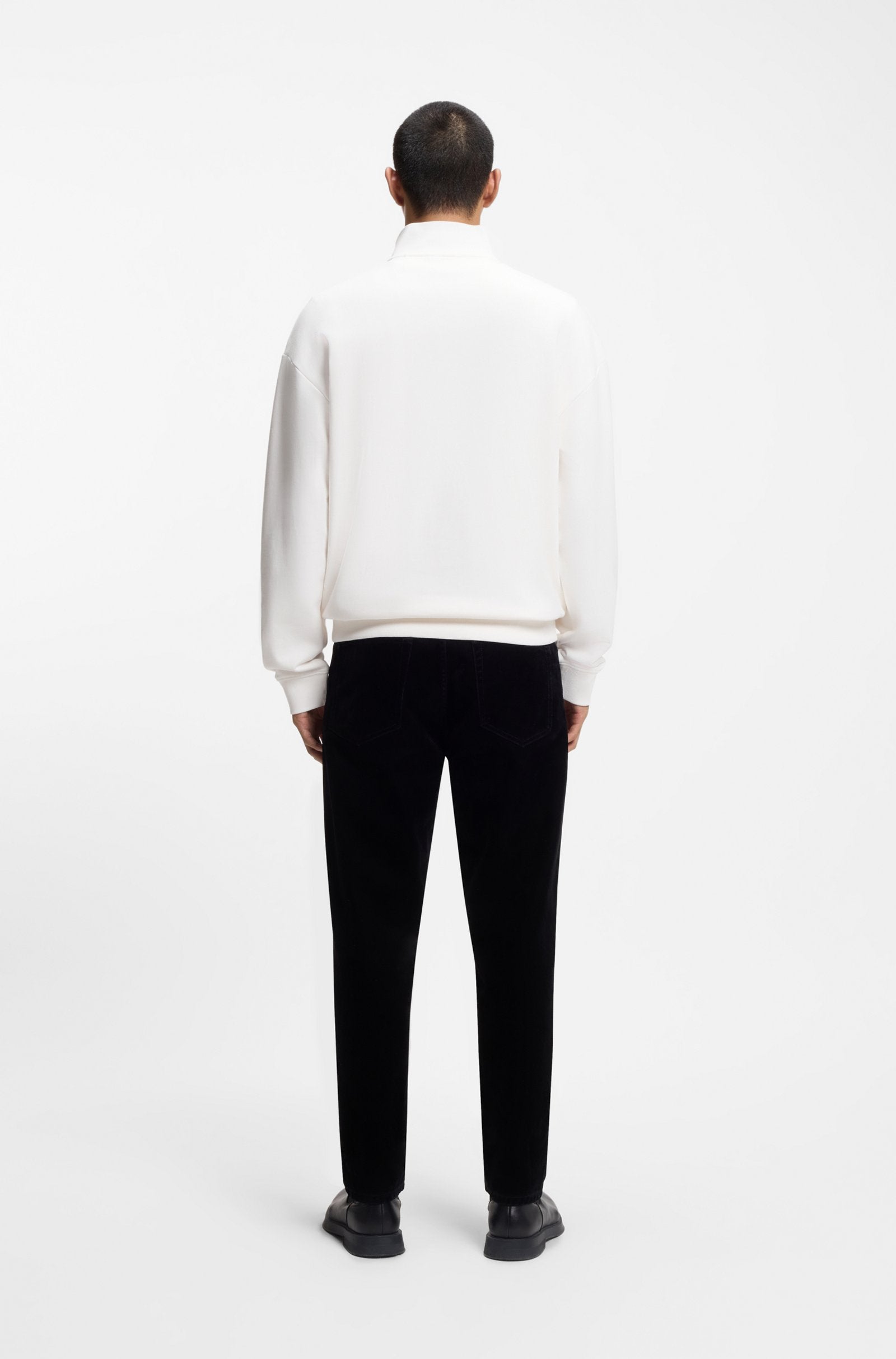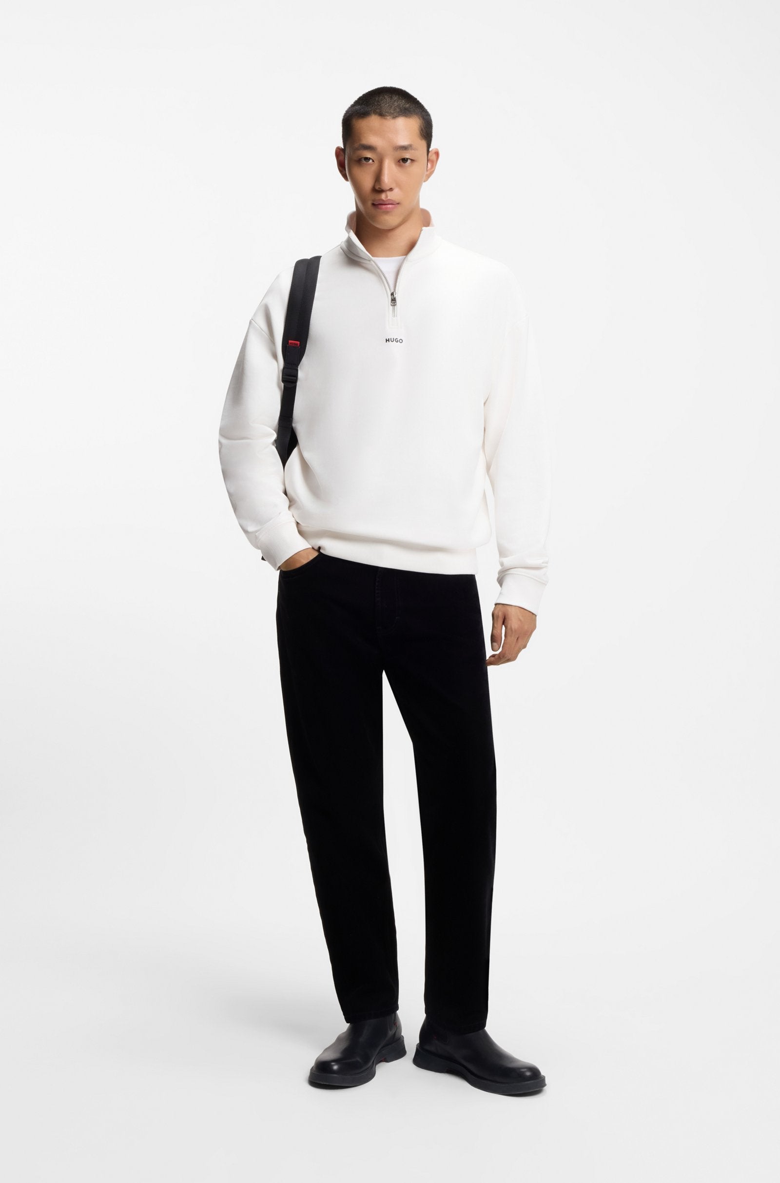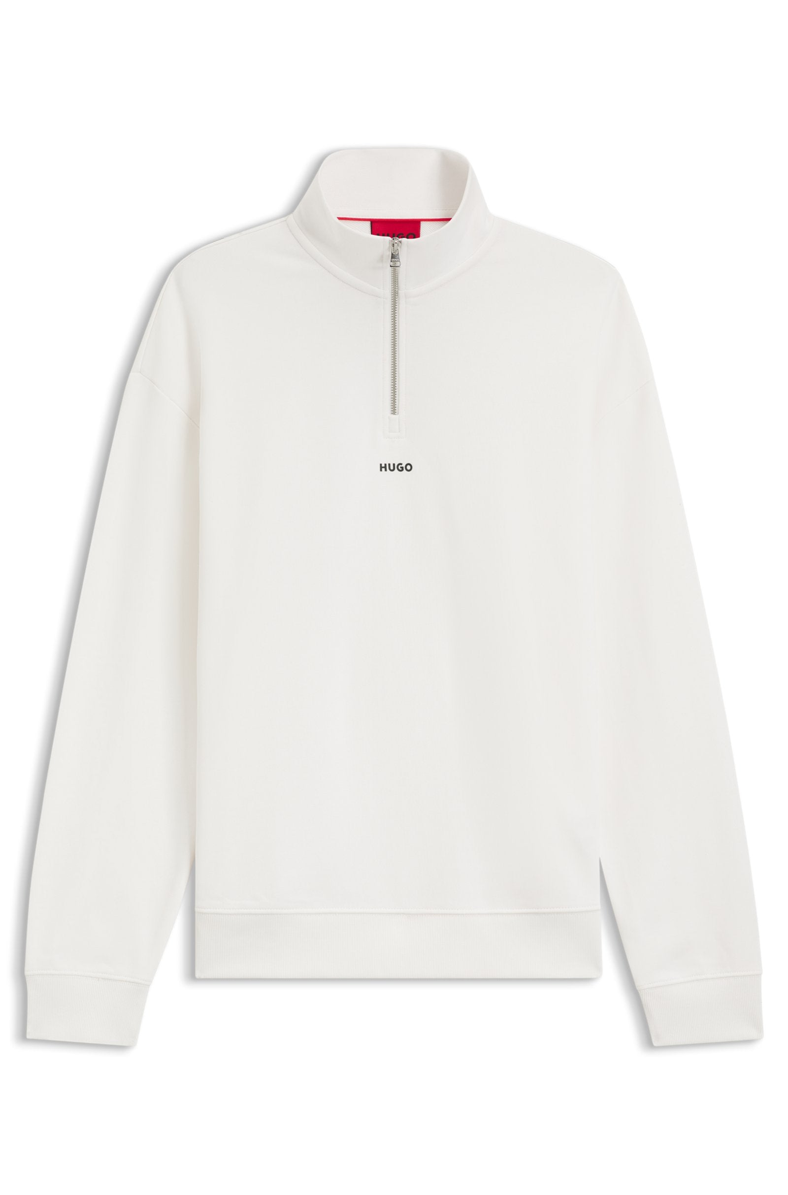 Layer up in comfort with the relaxed fit and cotton terry of this essential HUGO Menswear sweatshirt. Zip-neck collar. HD logo print.